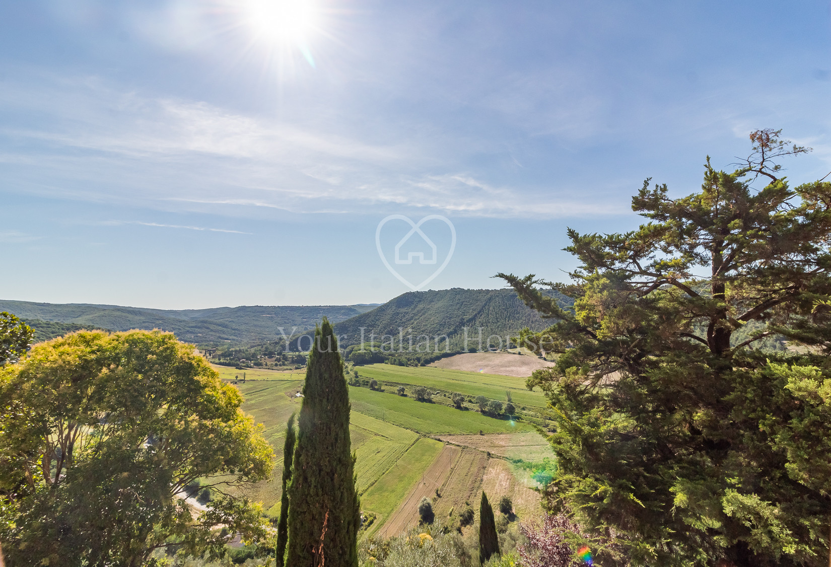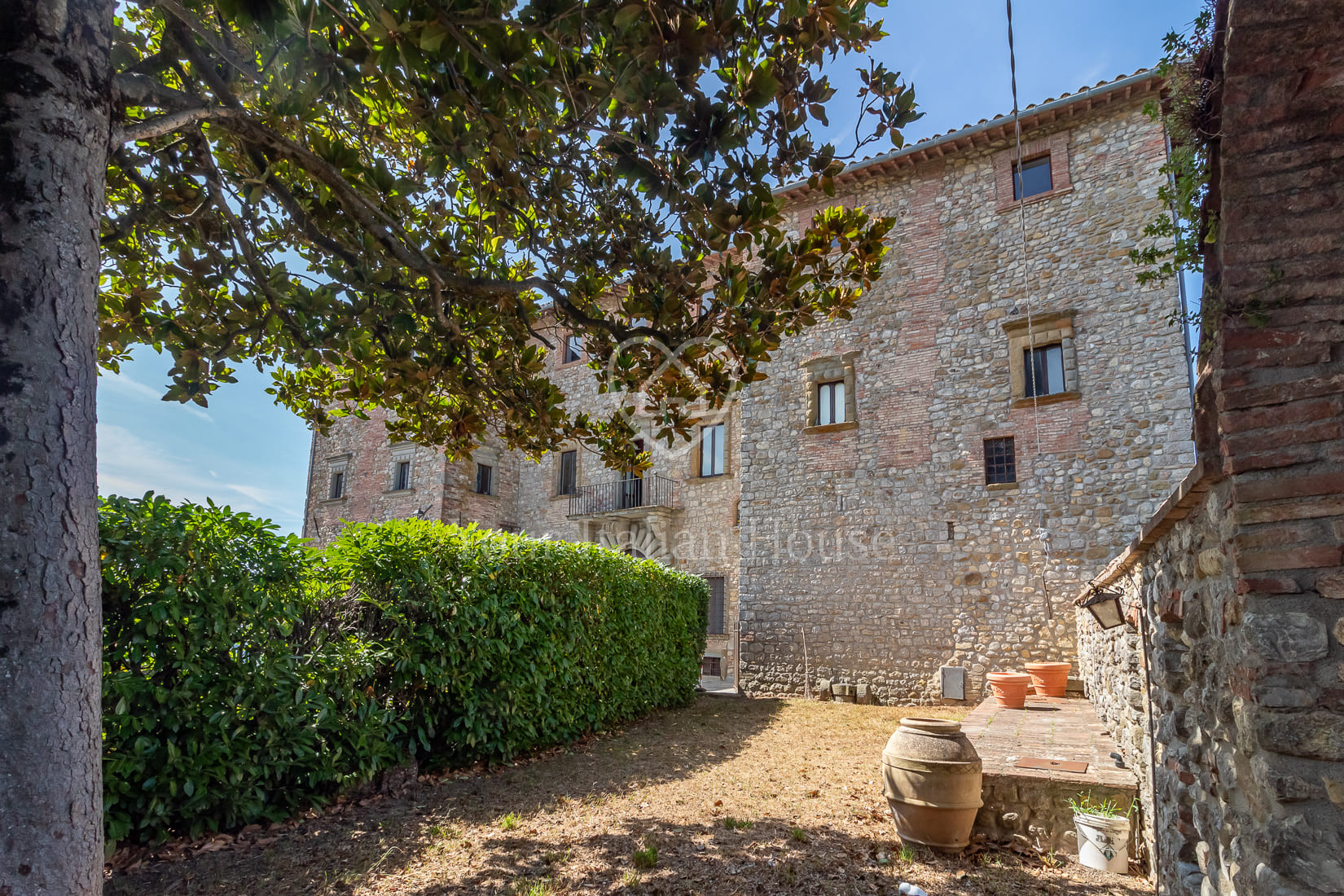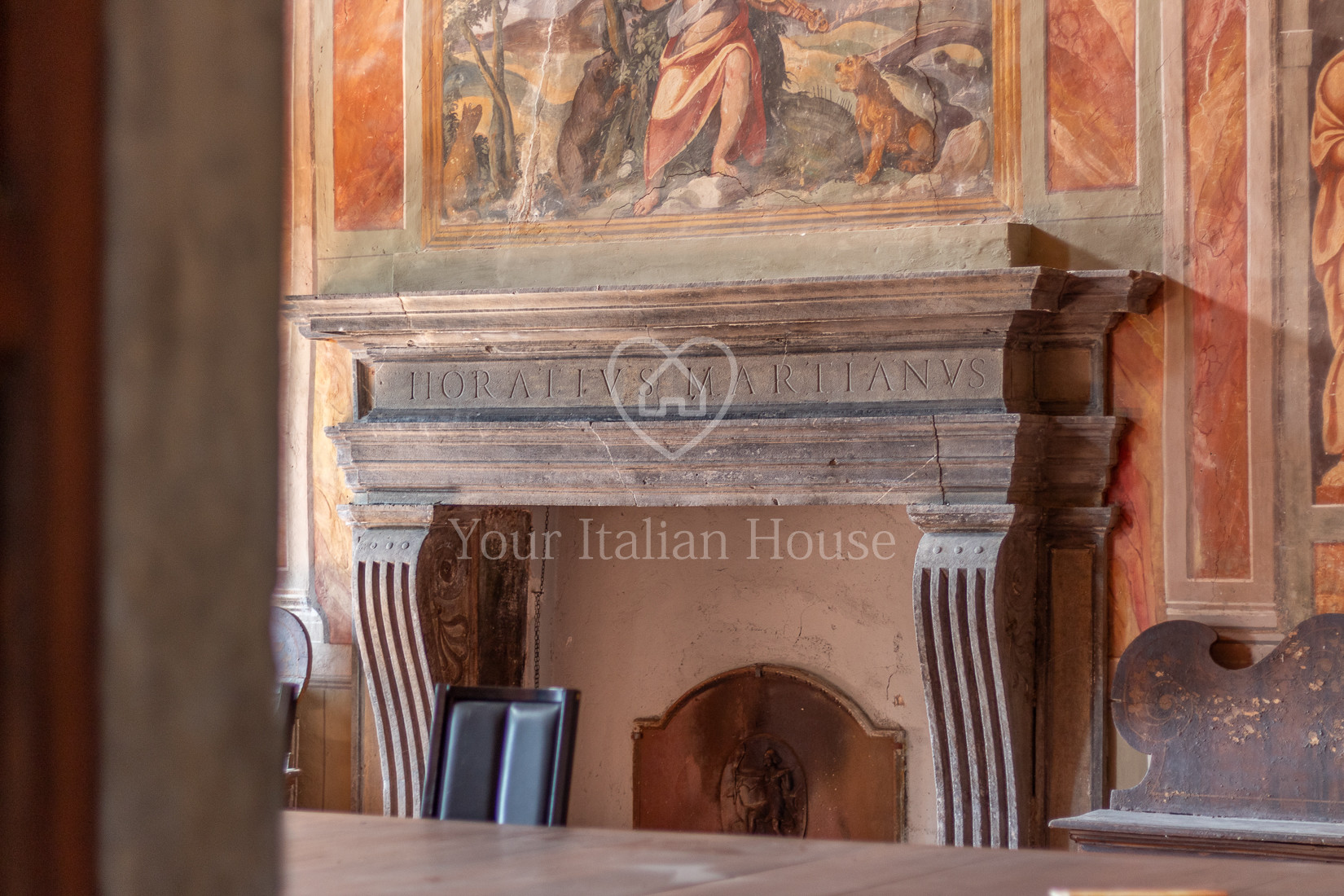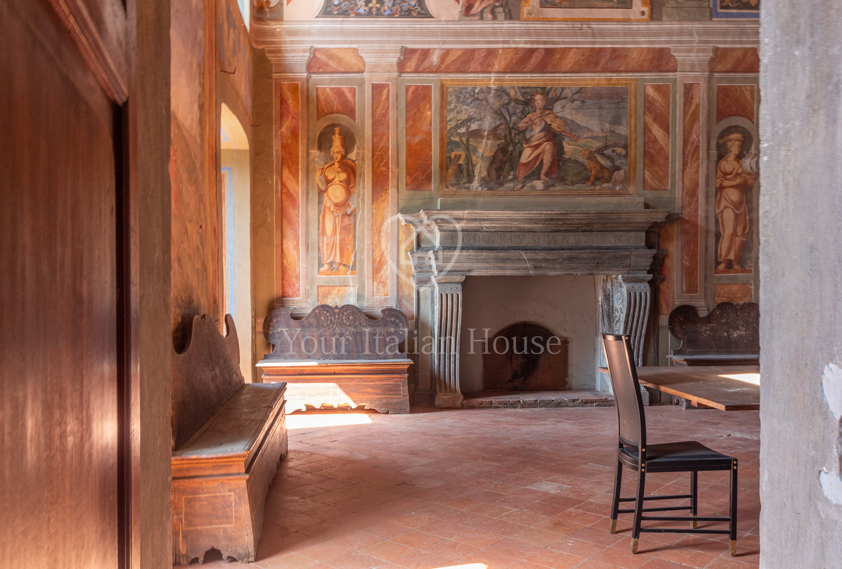 The work, initially Roman, was modified in the Middle Ages and gradually took the form of a noble residence; the Filippeschi family, owners of the castle, lived there until 1602. The castle retains its layout from the Renaissance period: it is built around a courtyard with a well, with square columns with arches that support the galleries on the upper floor, with the imposing stone staircase on one side. Around the end of the 16th century, the history of the castle is intertwined with the history of the Counts of Marsciano, to whom we owe the facade overlooking the square and the related rooms, the monumental entrance embellished by the balcony supported by sculpted corbels, of which the central one bears the Marsciano coat of arms and the redecoration of the Sala Caminata, with the monumental fireplace in pietra serena bearing the name of the then owner, Horatius Martianus, engraved on it. After Orazio, the castle passed to the eldest son and remained in the hands of the Marsciano family until 1866. Castello sulla Valle is a true treasure chest, waiting to be discovered. The main entrance is on the ground floor, directly from the town square; from here you access the driveway courtyard with internal porch. On one side we find a first wing of the castle, with rooms that follow one another: a living room, a study, a kitchen, two bedrooms, a bathroom, a laundry area, two closets, a warehouse and a garage; on the other side of the courtyard we find another wing with two living rooms, a lounge, a living room entrance, a dining room, a kitchen, a bedroom, a bathroom and a toilet. The first floor is accessed via the large stone staircase. The floor is made up of eight bedrooms, four bathrooms, two toilets, two studies, a living room, a wardrobe room and the Sala Caminata entirely decorated on the walls with mythological themed pictorial cycles. Of notable value is the family tree of the Marsciano family which is located right in front of the large stone fireplace; on the upper band there are the coats of arms of the Counts of Marsciano alternating with scenes of biblical subjects. The hall retains decorated coffered ceilings and has the Paris de Philippensibus engraving on the door jambs. The frescoed ceilings of the rooms on the floor are splendid. Also on the first floor we find the chapel dedicated to the Blessed Vanna, belonging to the Filippeschi family, who was born in the Castle in 1264. The first floor is completed by a terrace of approximately 5 sqm which is located above the monumental door. The second floor is used entirely as an attic which extends over the entire surface of the floor, which is connected to the first floor by the main internal staircase and a characteristic stone spiral staircase. On the third mezzanine floor we have two storage rooms and a panoramic terrace of approximately 15 sqm created inside a pitch of the roof. In the basement there are rooms used as storage and warehouse, technical rooms, a tank for collecting rainwater and other rooms. Castello sulla Valle is a fascinating architectural and artistic jewel, ready to be exploited to its full potential.