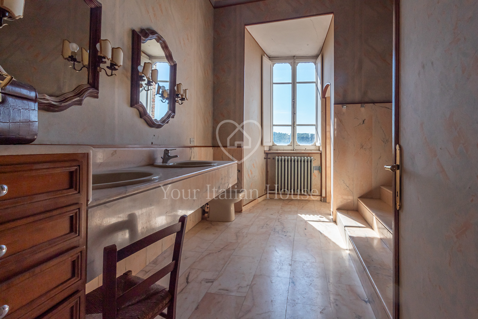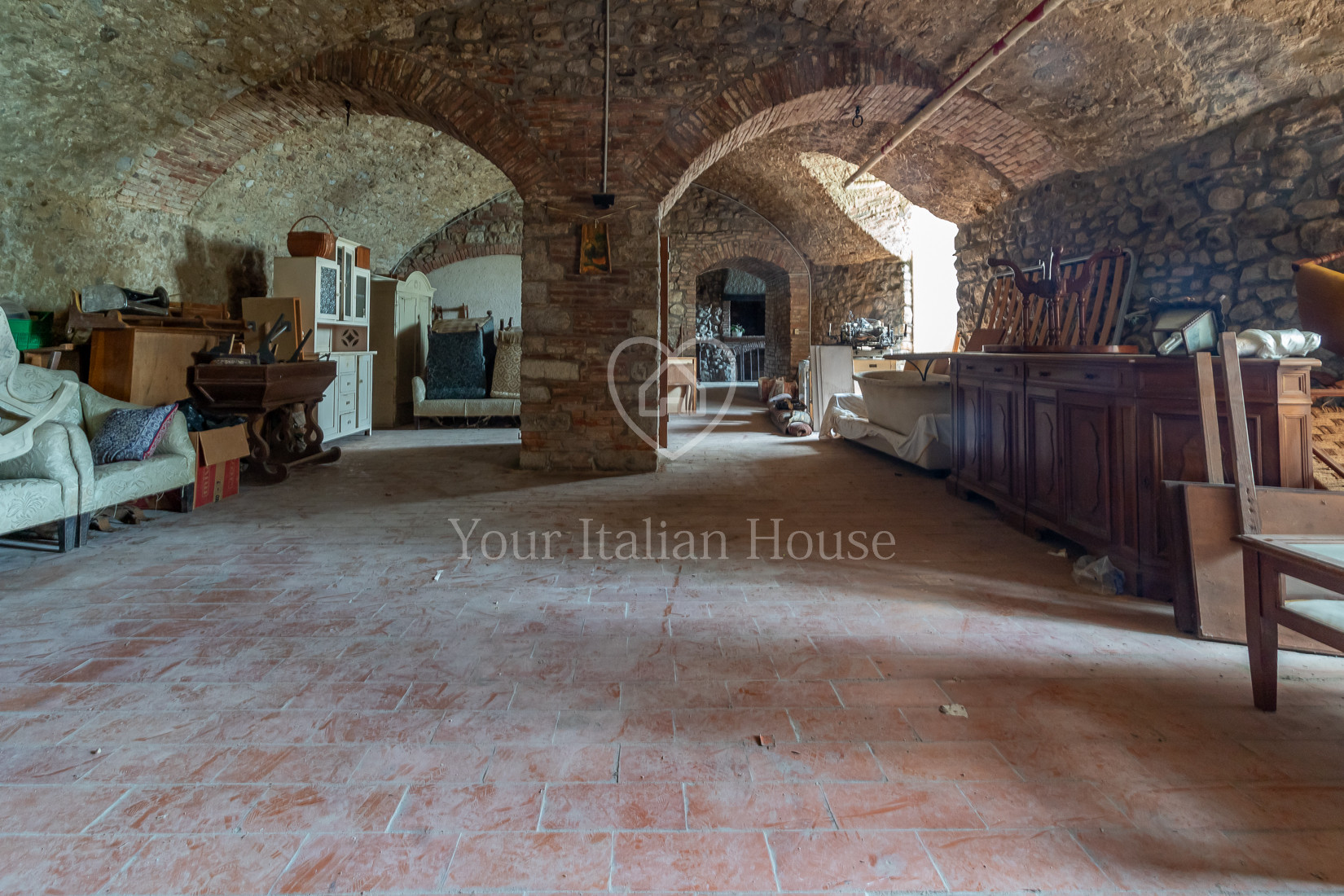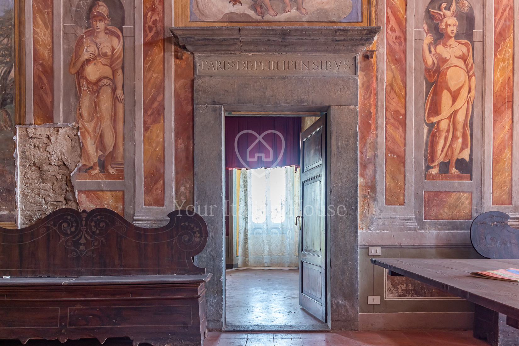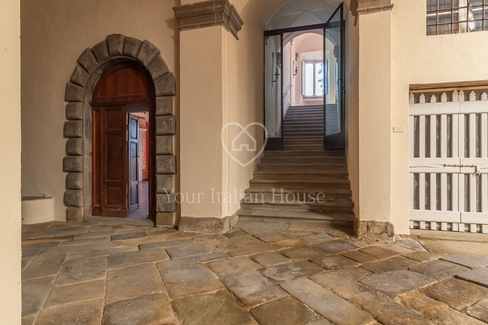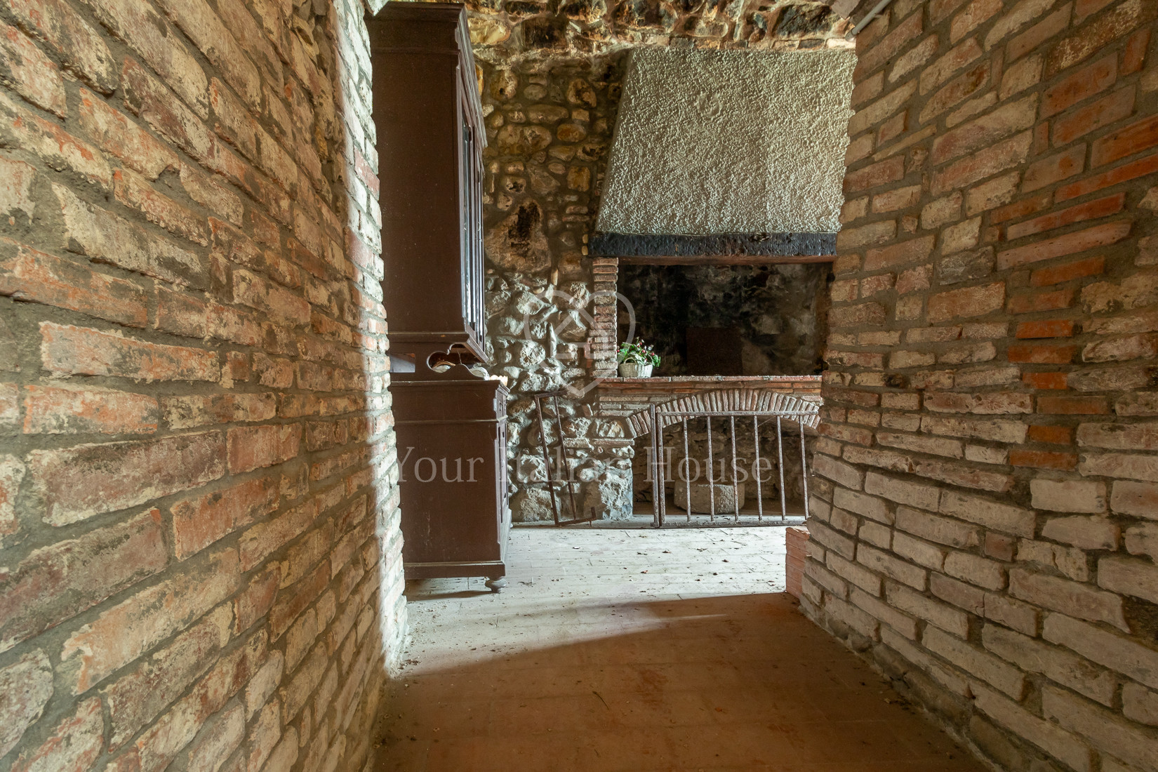 The work, initially Roman, was modified in the Middle Ages and gradually took the form of a noble residence; the Filippeschi family, owners of the castle, lived there until 1602. The castle retains its layout from the Renaissance period: it is built around a courtyard with a well, with square columns with arches that support the galleries on the upper floor, with the imposing stone staircase on one side. Around the end of the 16th century, the history of the castle is intertwined with the history of the Counts of Marsciano, to whom we owe the facade overlooking the square and the related rooms, the monumental entrance embellished by the balcony supported by sculpted corbels, of which the central one bears the Marsciano coat of arms and the redecoration of the Sala Caminata, with the monumental fireplace in pietra serena bearing the name of the then owner, Horatius Martianus, engraved on it. After Orazio, the castle passed to the eldest son and remained in the hands of the Marsciano family until 1866. Castello sulla Valle is a true treasure chest, waiting to be discovered. The main entrance is on the ground floor, directly from the town square; from here you access the driveway courtyard with internal porch. On one side we find a first wing of the castle, with rooms that follow one another: a living room, a study, a kitchen, two bedrooms, a bathroom, a laundry area, two closets, a warehouse and a garage; on the other side of the courtyard we find another wing with two living rooms, a lounge, a living room entrance, a dining room, a kitchen, a bedroom, a bathroom and a toilet. The first floor is accessed via the large stone staircase. The floor is made up of eight bedrooms, four bathrooms, two toilets, two studies, a living room, a wardrobe room and the Sala Caminata entirely decorated on the walls with mythological themed pictorial cycles. Of notable value is the family tree of the Marsciano family which is located right in front of the large stone fireplace; on the upper band there are the coats of arms of the Counts of Marsciano alternating with scenes of biblical subjects. The hall retains decorated coffered ceilings and has the Paris de Philippensibus engraving on the door jambs. The frescoed ceilings of the rooms on the floor are splendid. Also on the first floor we find the chapel dedicated to the Blessed Vanna, belonging to the Filippeschi family, who was born in the Castle in 1264. The first floor is completed by a terrace of approximately 5 sqm which is located above the monumental door. The second floor is used entirely as an attic which extends over the entire surface of the floor, which is connected to the first floor by the main internal staircase and a characteristic stone spiral staircase. On the third mezzanine floor we have two storage rooms and a panoramic terrace of approximately 15 sqm created inside a pitch of the roof. In the basement there are rooms used as storage and warehouse, technical rooms, a tank for collecting rainwater and other rooms. Castello sulla Valle is a fascinating architectural and artistic jewel, ready to be exploited to its full potential.