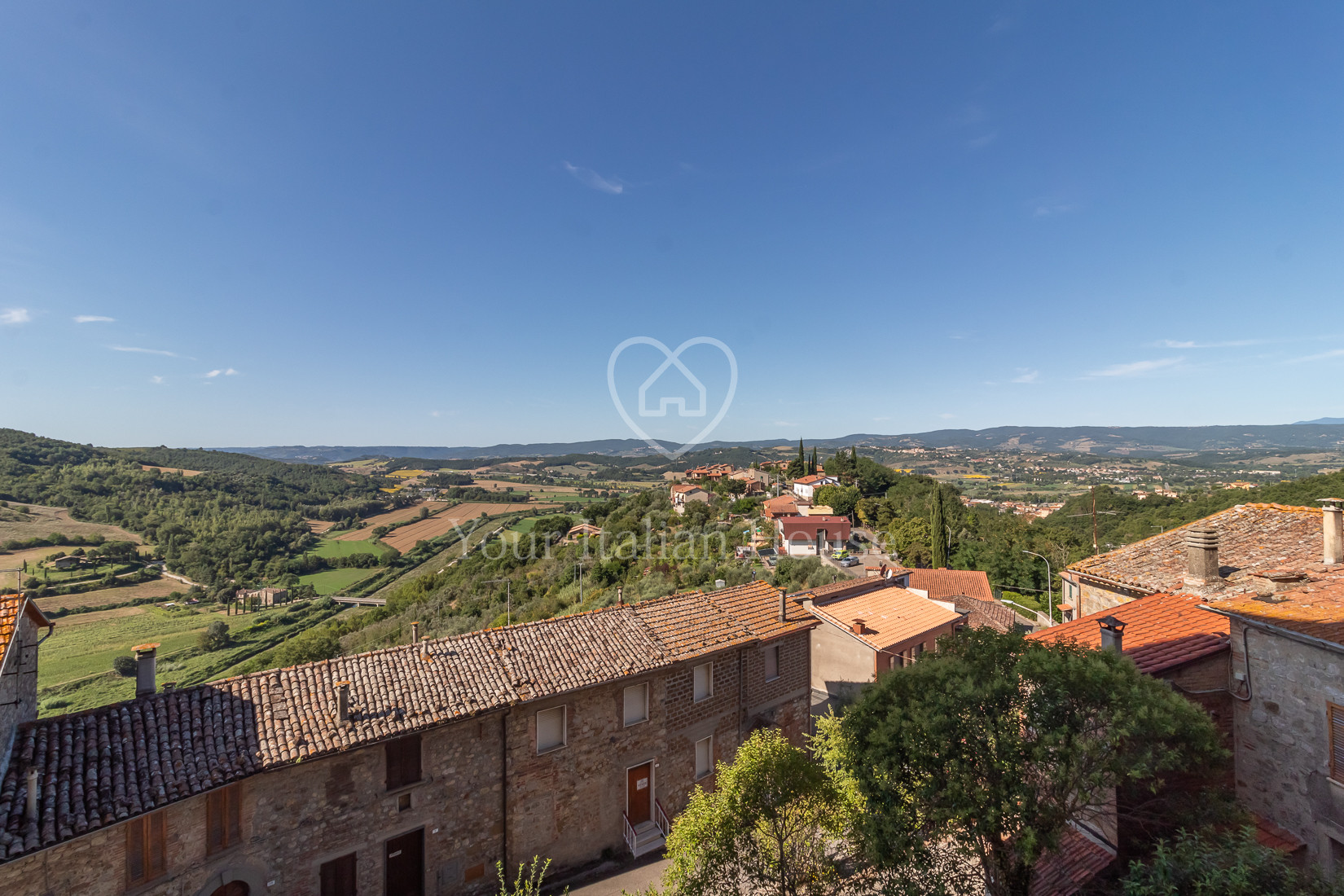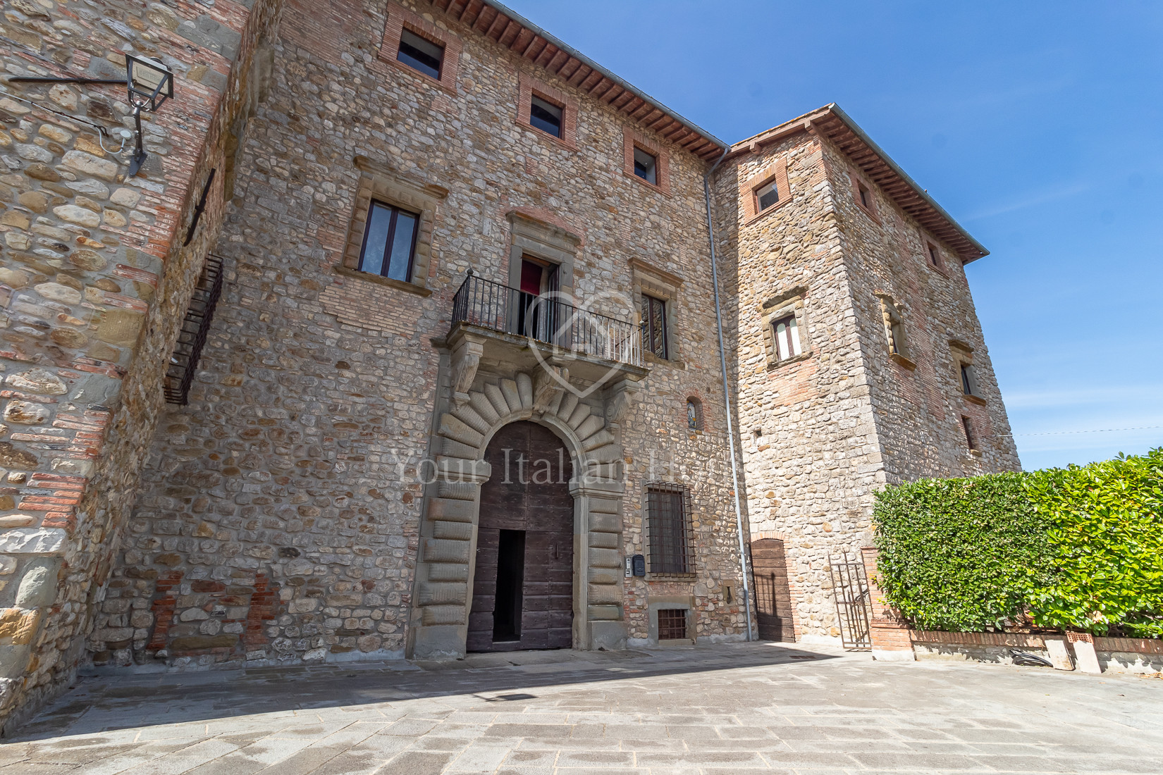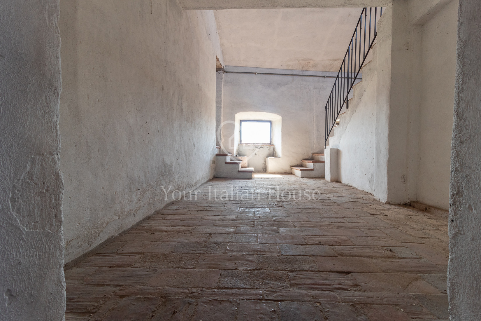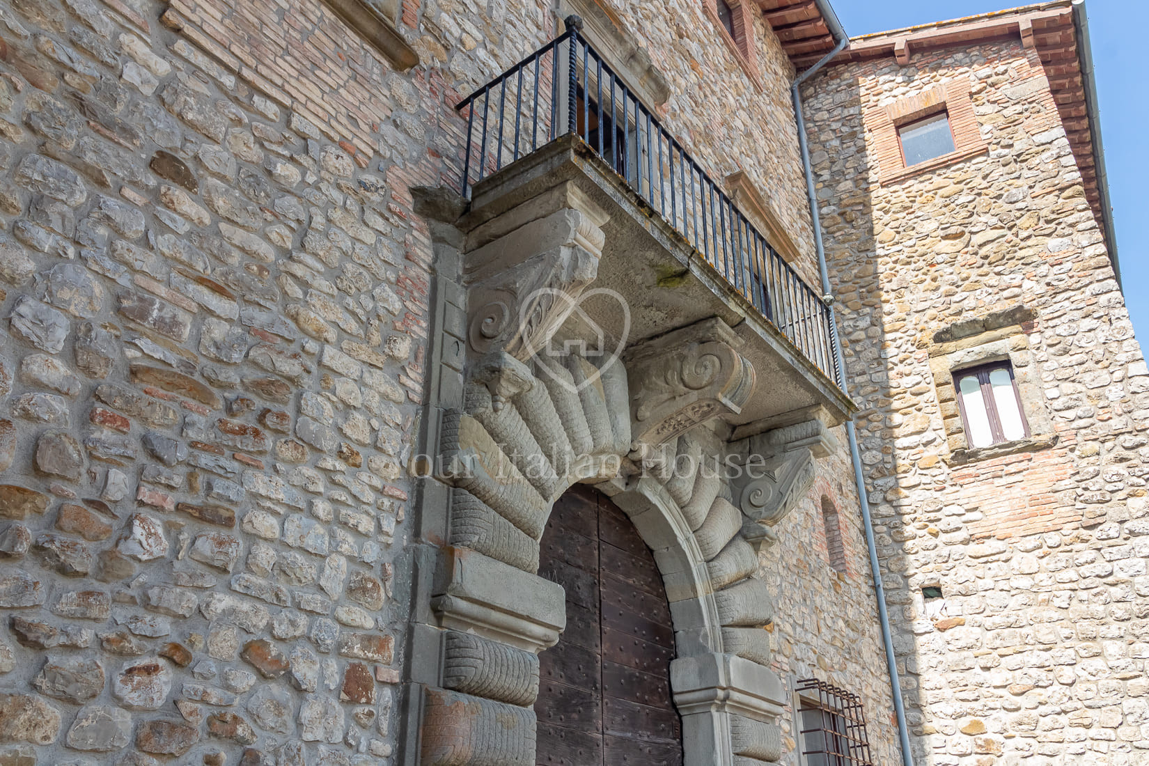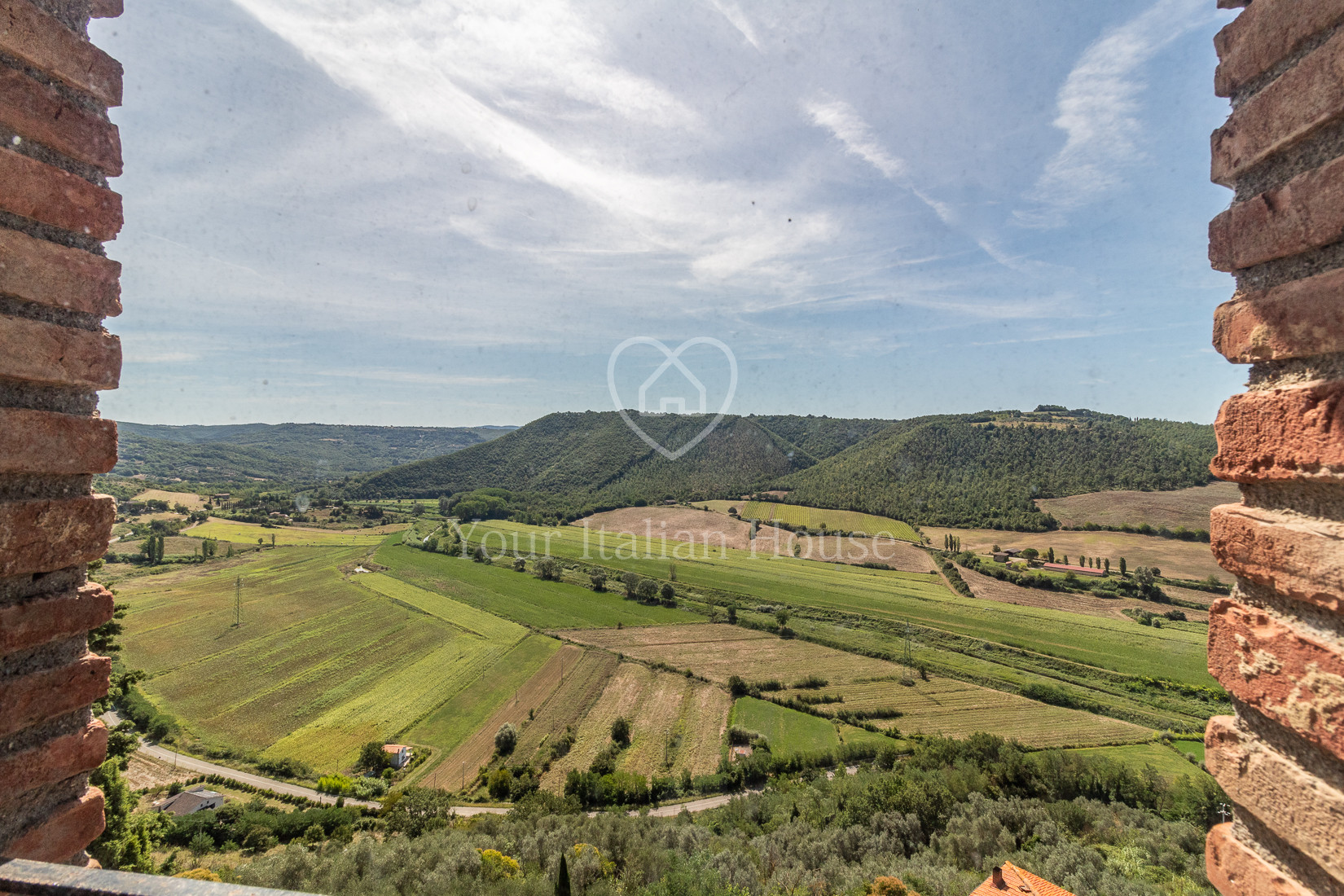 The work, initially Roman, was modified in the Middle Ages and gradually took the form of a noble residence; the Filippeschi family, owners of the castle, lived there until 1602. The castle retains its layout from the Renaissance period: it is built around a courtyard with a well, with square columns with arches that support the galleries on the upper floor, with the imposing stone staircase on one side. Around the end of the 16th century, the history of the castle is intertwined with the history of the Counts of Marsciano, to whom we owe the facade overlooking the square and the related rooms, the monumental entrance embellished by the balcony supported by sculpted corbels, of which the central one bears the Marsciano coat of arms and the redecoration of the Sala Caminata, with the monumental fireplace in pietra serena bearing the name of the then owner, Horatius Martianus, engraved on it. After Orazio, the castle passed to the eldest son and remained in the hands of the Marsciano family until 1866. Castello sulla Valle is a true treasure chest, waiting to be discovered. The main entrance is on the ground floor, directly from the town square; from here you access the driveway courtyard with internal porch. On one side we find a first wing of the castle, with rooms that follow one another: a living room, a study, a kitchen, two bedrooms, a bathroom, a laundry area, two closets, a warehouse and a garage; on the other side of the courtyard we find another wing with two living rooms, a lounge, a living room entrance, a dining room, a kitchen, a bedroom, a bathroom and a toilet. The first floor is accessed via the large stone staircase. The floor is made up of eight bedrooms, four bathrooms, two toilets, two studies, a living room, a wardrobe room and the Sala Caminata entirely decorated on the walls with mythological themed pictorial cycles. Of notable value is the family tree of the Marsciano family which is located right in front of the large stone fireplace; on the upper band there are the coats of arms of the Counts of Marsciano alternating with scenes of biblical subjects. The hall retains decorated coffered ceilings and has the Paris de Philippensibus engraving on the door jambs. The frescoed ceilings of the rooms on the floor are splendid. Also on the first floor we find the chapel dedicated to the Blessed Vanna, belonging to the Filippeschi family, who was born in the Castle in 1264. The first floor is completed by a terrace of approximately 5 sqm which is located above the monumental door. The second floor is used entirely as an attic which extends over the entire surface of the floor, which is connected to the first floor by the main internal staircase and a characteristic stone spiral staircase. On the third mezzanine floor we have two storage rooms and a panoramic terrace of approximately 15 sqm created inside a pitch of the roof. In the basement there are rooms used as storage and warehouse, technical rooms, a tank for collecting rainwater and other rooms. Castello sulla Valle is a fascinating architectural and artistic jewel, ready to be exploited to its full potential.