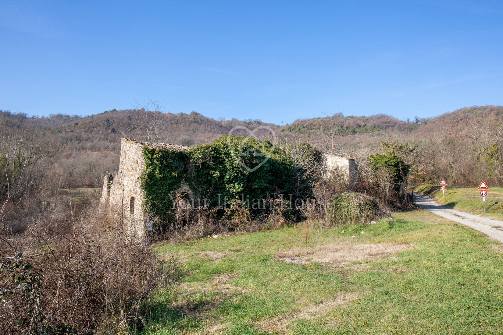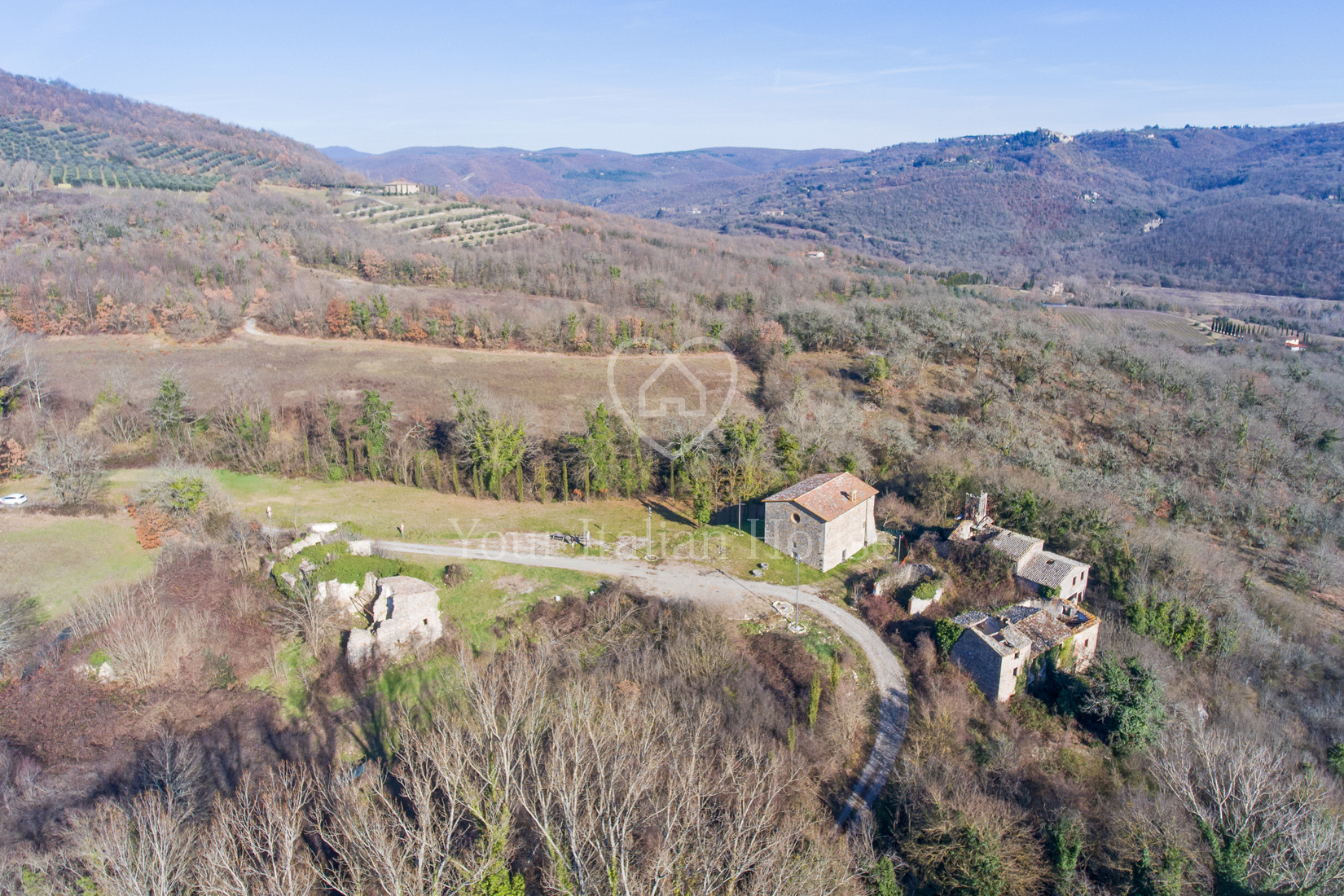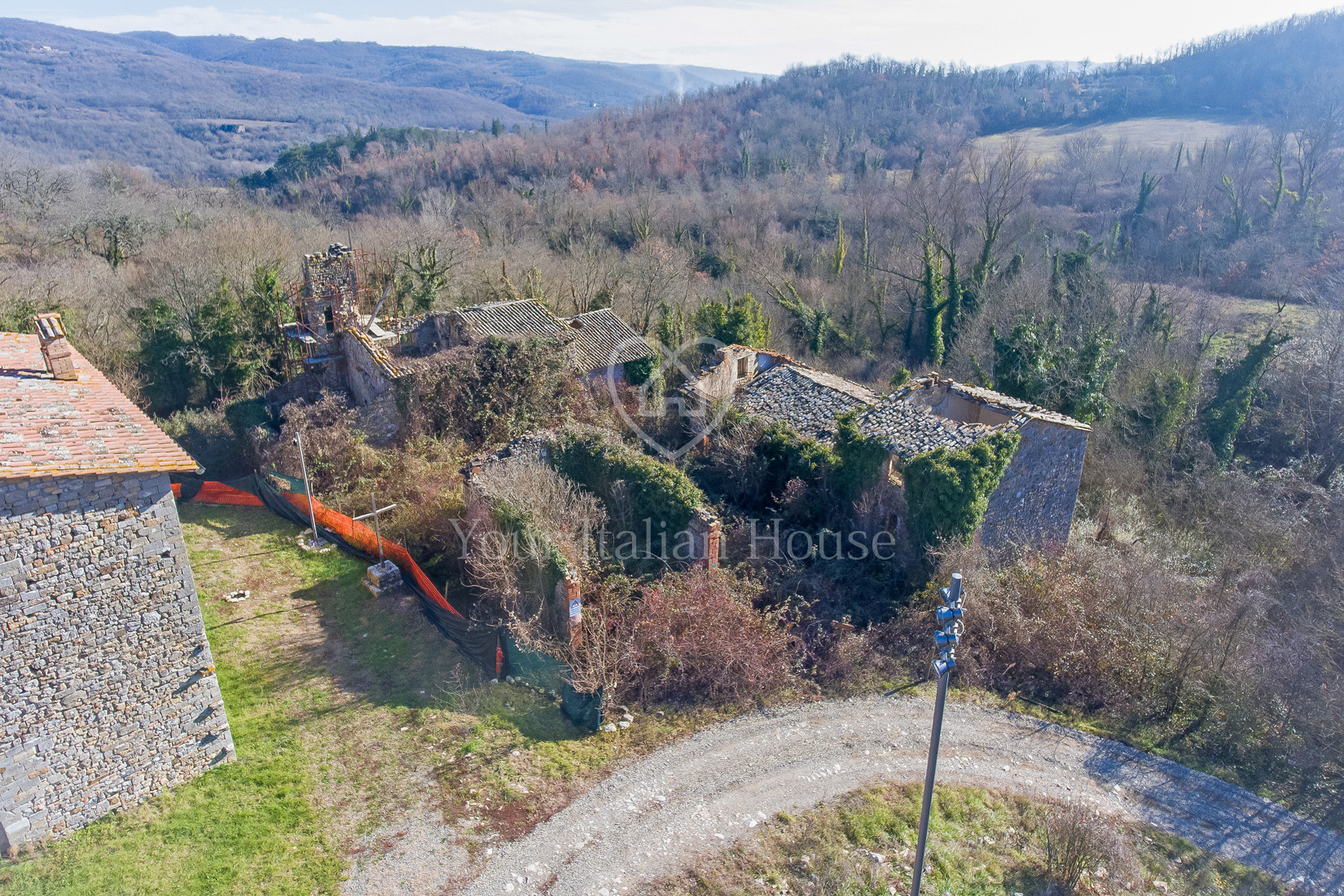 The surrounding land, which is partly terraced, covers about 26 hectares, divided into 4.3 of wood, 8.6 of arable land, 1.6 of olive grove, 4.7 of arable land planted with trees, and 5.6 of grazing land plus natural parkland, uncultivated areas and courtyards. With careful restoration it would be possible to establish various types of flora and fauna thanks to streams and springs that are here.