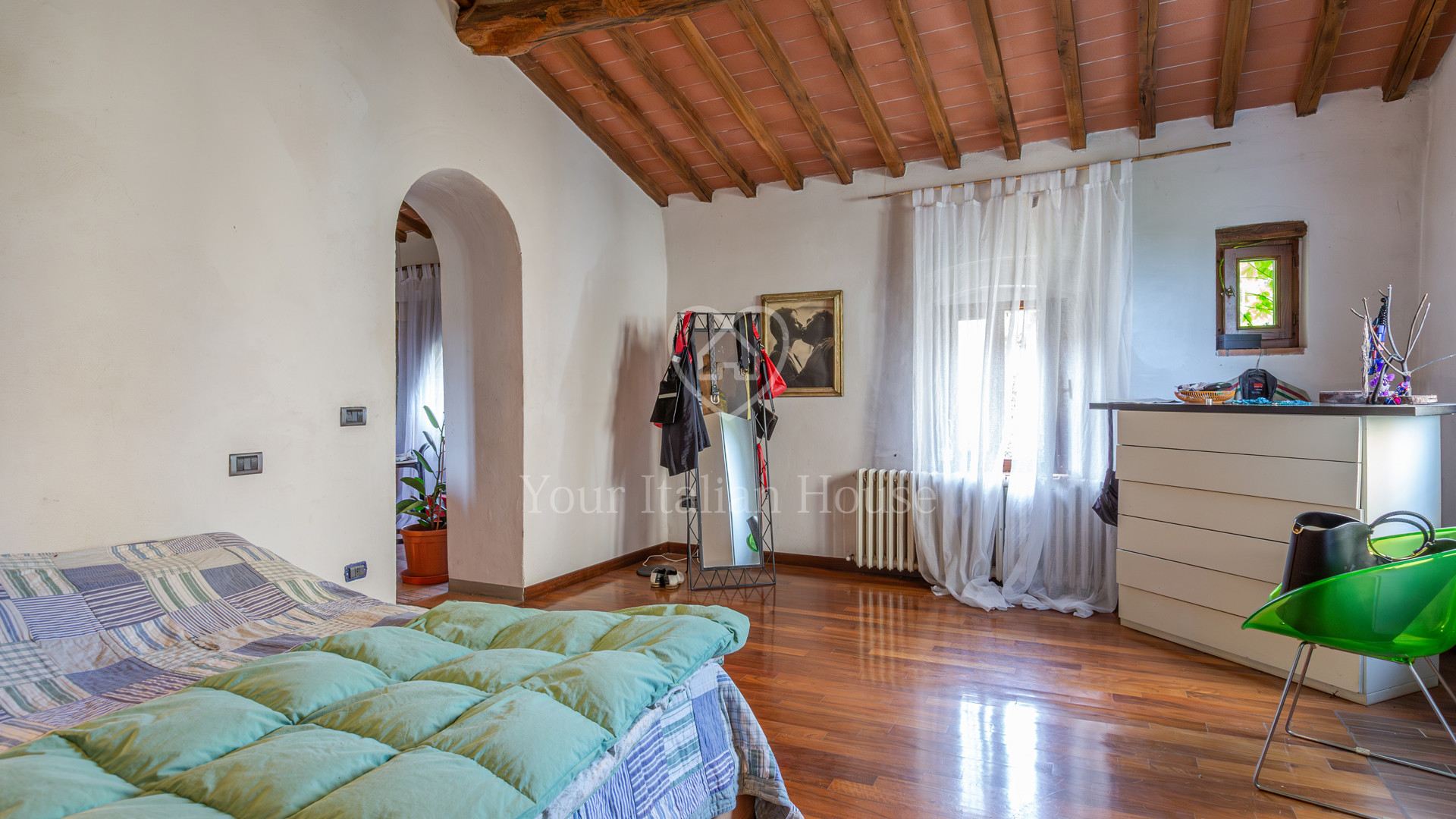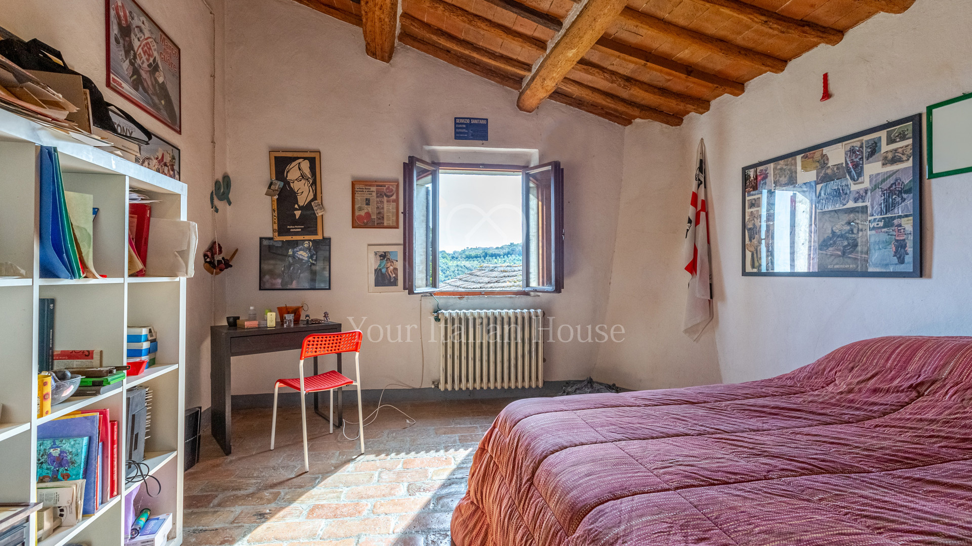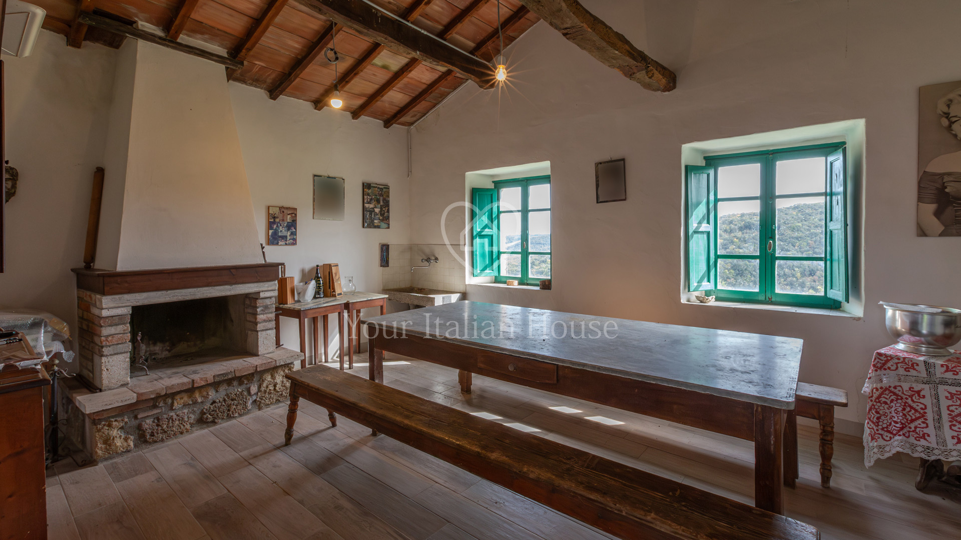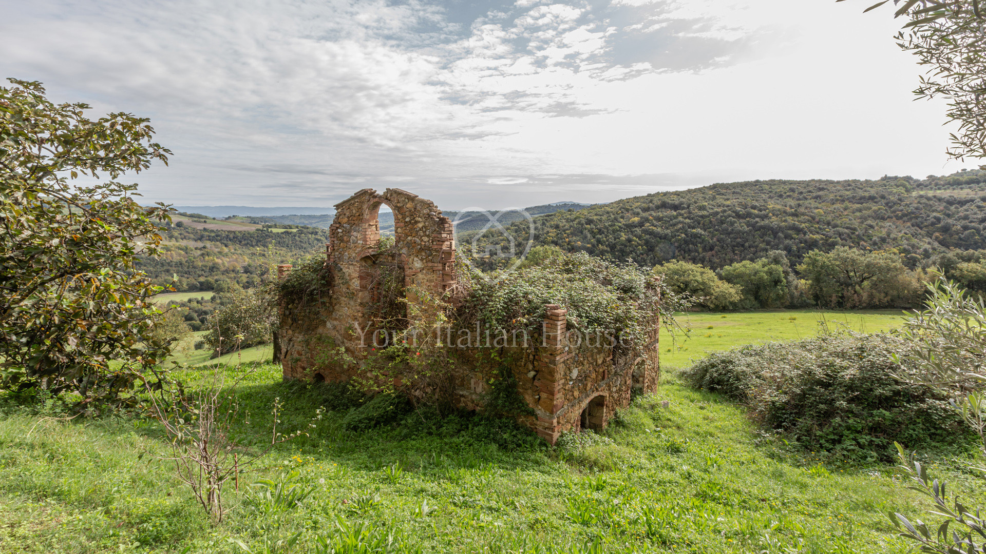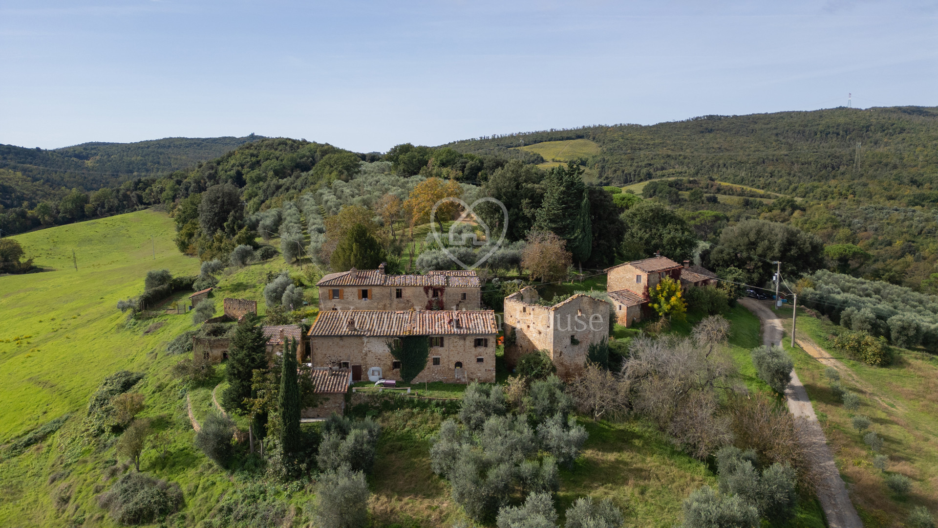 In the splendidly green and lush countryside surrounding San Gimignano stands this 310 sqm traditional farmhouse including annexes and ruins. The farmhouse comprises two levels that are connected by an internal staircase. On the ground floor there are a large living room, two bedrooms, a bathroom, a hallway, and a room for technical facilities. On the first floor there are a kitchen, a large study, a dining room, two bedrooms, and a bathroom. The property also features two storage rooms for a total of 80 sqm and former rural annexes now ruins for a total of 198 sqm. The property includes approximately 62 hectares of agricultural land divided into woodland, farmland, and olive groves.