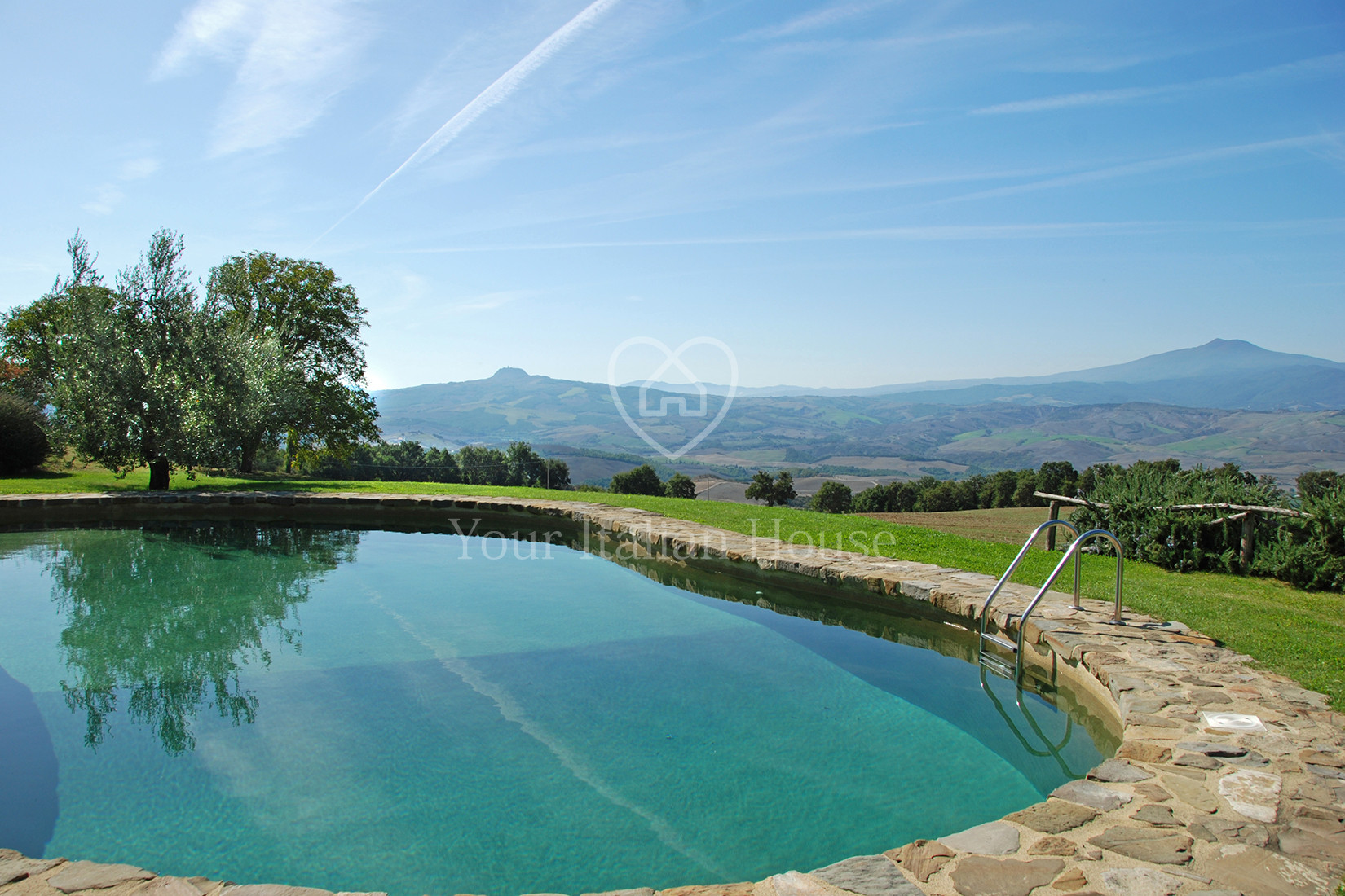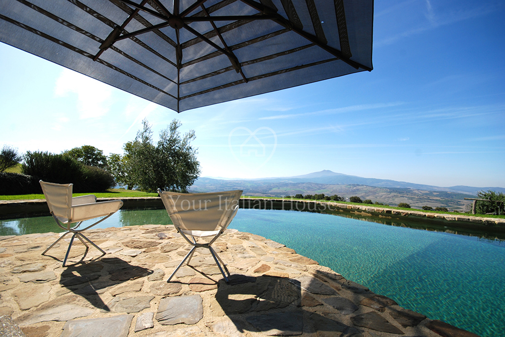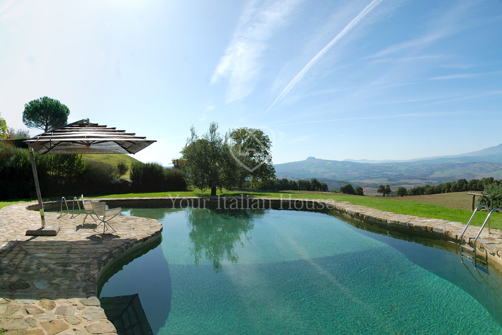 The property “La Fonte” is composed of two farmhouses: The first one dates back to 1600 and used to be a small convent, while the other is more recent, dating back to 1900. They are both immersed in a large green area, entirely dedicated to the guests’ privacy, with a splendid private panoramic swimming pool. The property includes about 9ha of agricultural land, a spring and a basin for water collection.