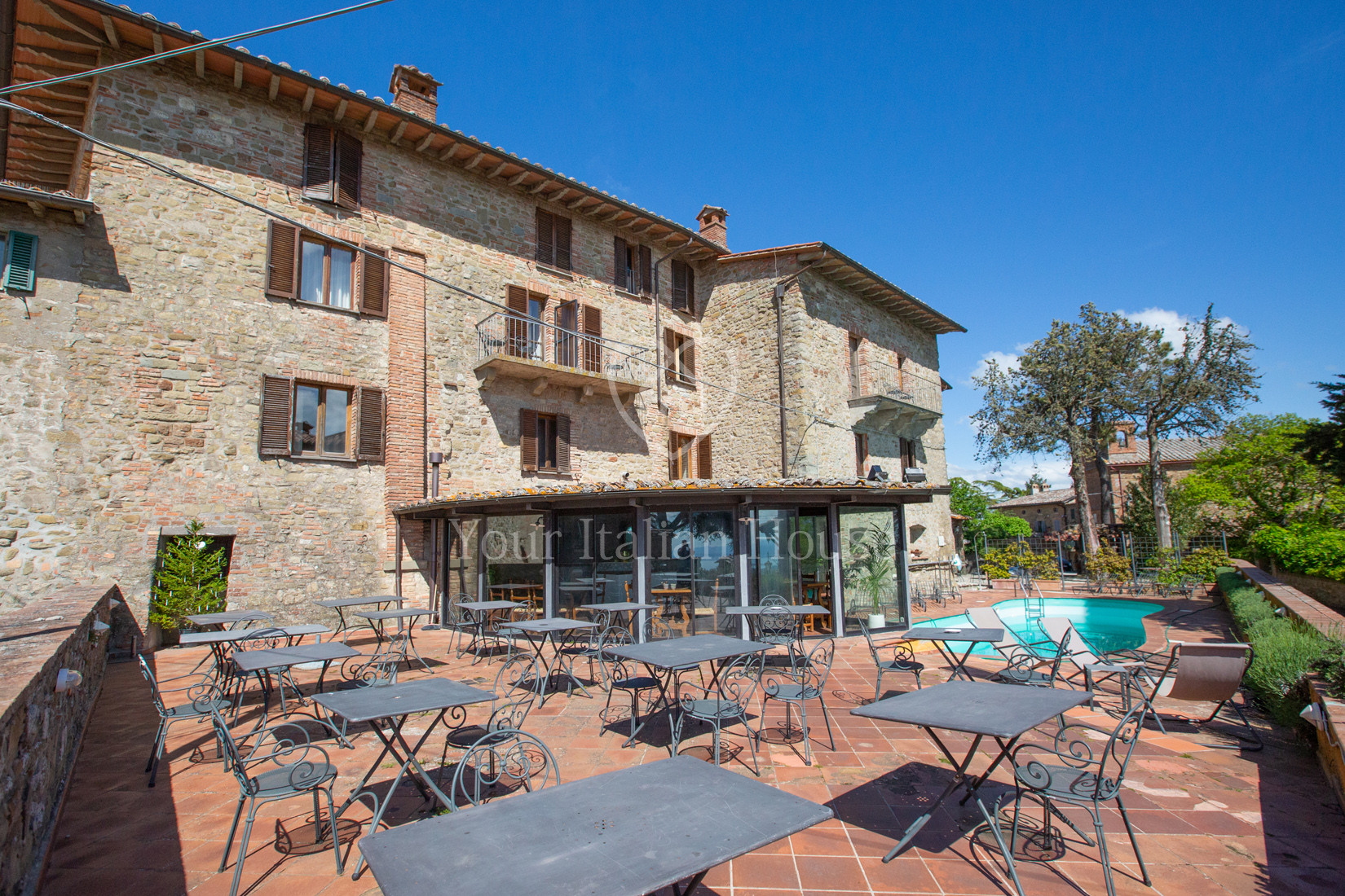 Immersed in the heart of a medieval village, this ancient historic fortress stands proud as a guardian of bygone eras, offering a breathtaking view of Lake Trasimeno which lies placidly at its feet. Characterized by large and bright spaces, the property extends over four floors and covers a total area of approximately 1,500 sqm. Designed as a high-level accommodation facility, this historic residence from the 1700’s is made up of 28 rooms with en-suite bathrooms and has generous rooms designed to host meetings and ceremonies, two banqueting rooms, a professional kitchen and splendid panoramic terraces with a 7×14 outdoor swimming pool and pool bar, perfect for moments of luxury and relaxation in a scenic context rich in history, nature and charm.
