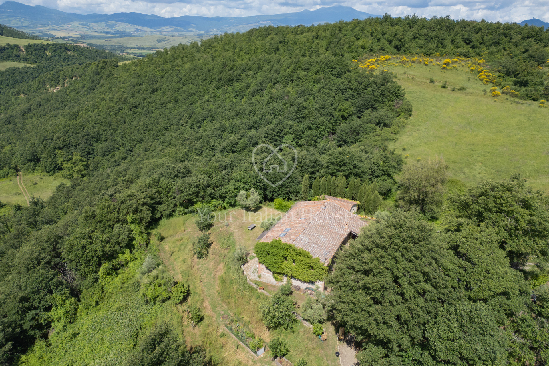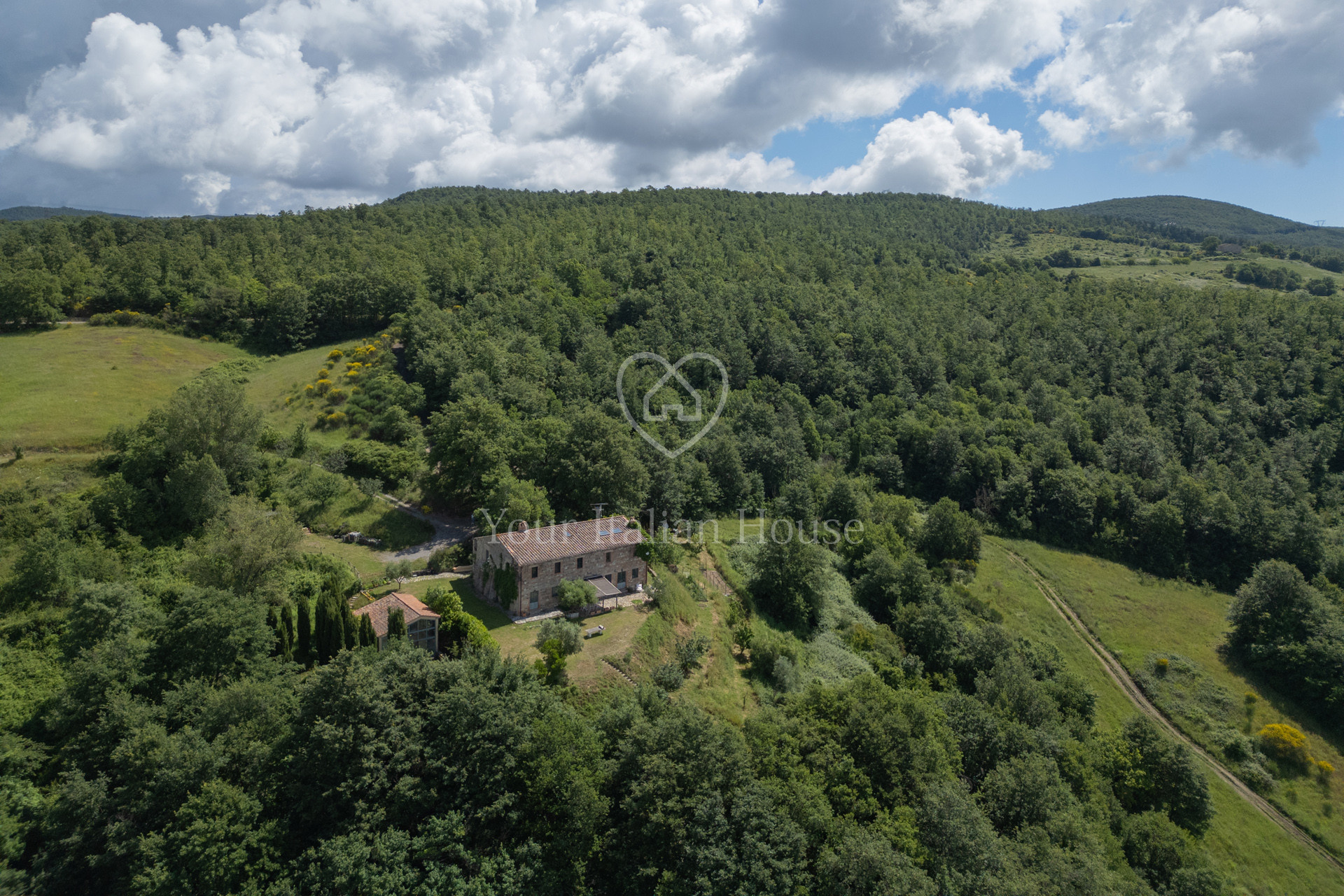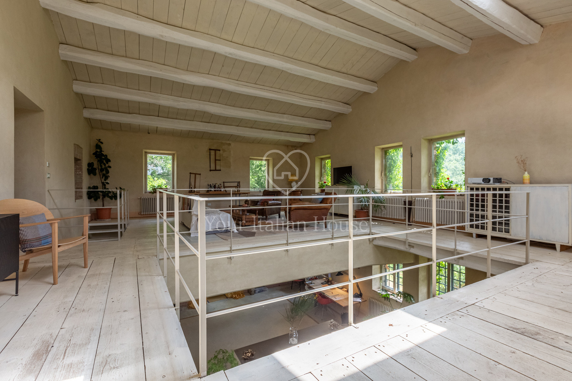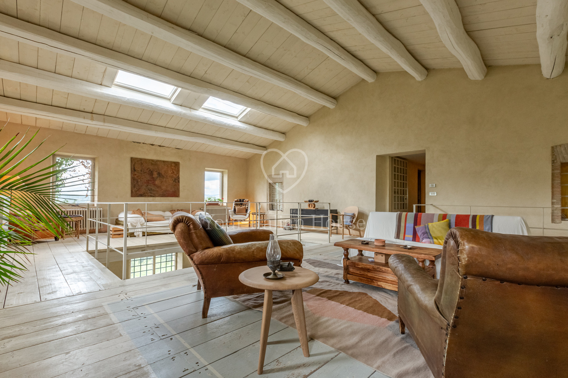 Podere Costarelle is a prestigious property consisting of an important stone farmhouse of approximately 470 square meters, set on private land of approximately 6 hectares. The property is surrounded by greenery in an intimate and private setting but is easily accessible from all the main roads. A delightful loggia leads to the interior of the farm where there is a spacious and modern kitchen with a Tuscan fireplace, a large double-volume living room distributed over two floors, very bright and equipped with spectacular windows with a view of the external panorama, 2 bedrooms and 2 bathrooms. From the lounge, the internal connecting staircase leads to the ground floor where we find the second part of the lounge indicated above, 3 bedrooms, 3 bathrooms as well as a large space currently used as a laboratory/study. The property includes an annex characterized by large windows that open onto the garden, including a heated indoor swimming pool, a lounge area and a bathroom. In the basement of the latter building there is an additional room used as a warehouse with bathroom. The property is surrounded by private land which is characterized by the farmhouse garden, arable land and woods for a total of 6.6 hectares. Option to purchase a further 6 hectares of land with olive grove and a renovated agricultural warehouse in the form of a “loft” with a double internal volume and with large windows that offer a beautiful view of the majestic panorama that opens onto the valley and Mount Amiata (+ 300,000 EUR).