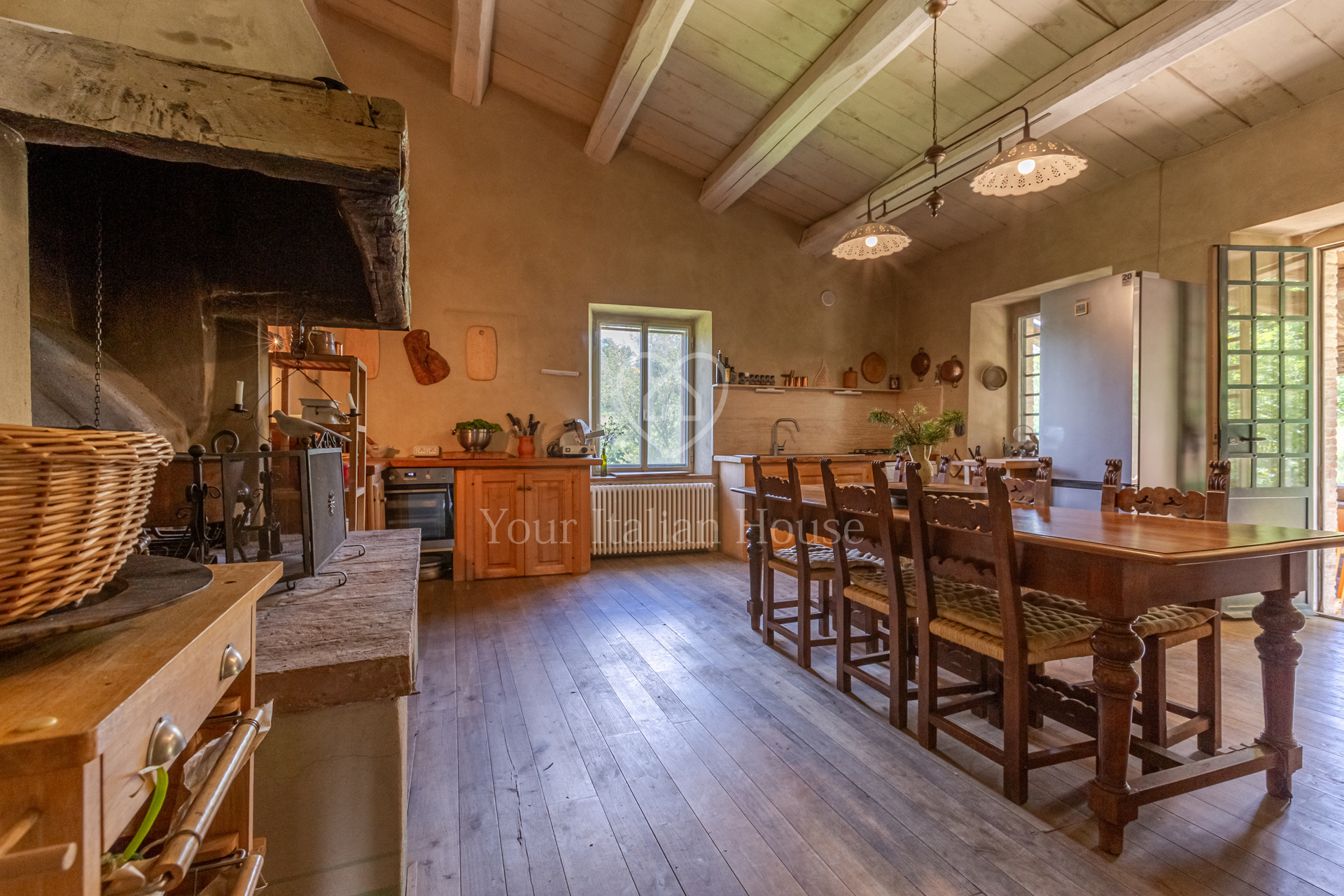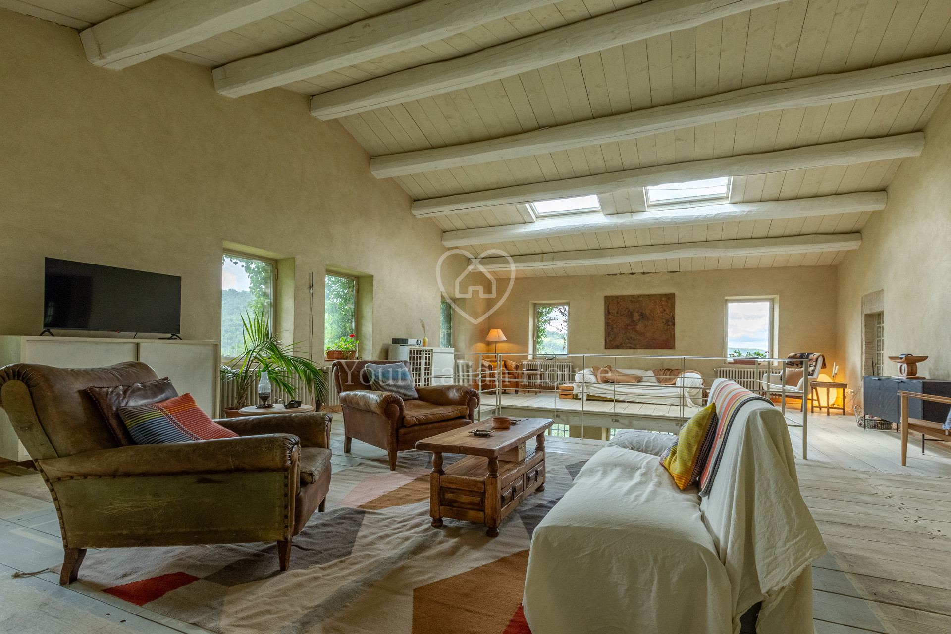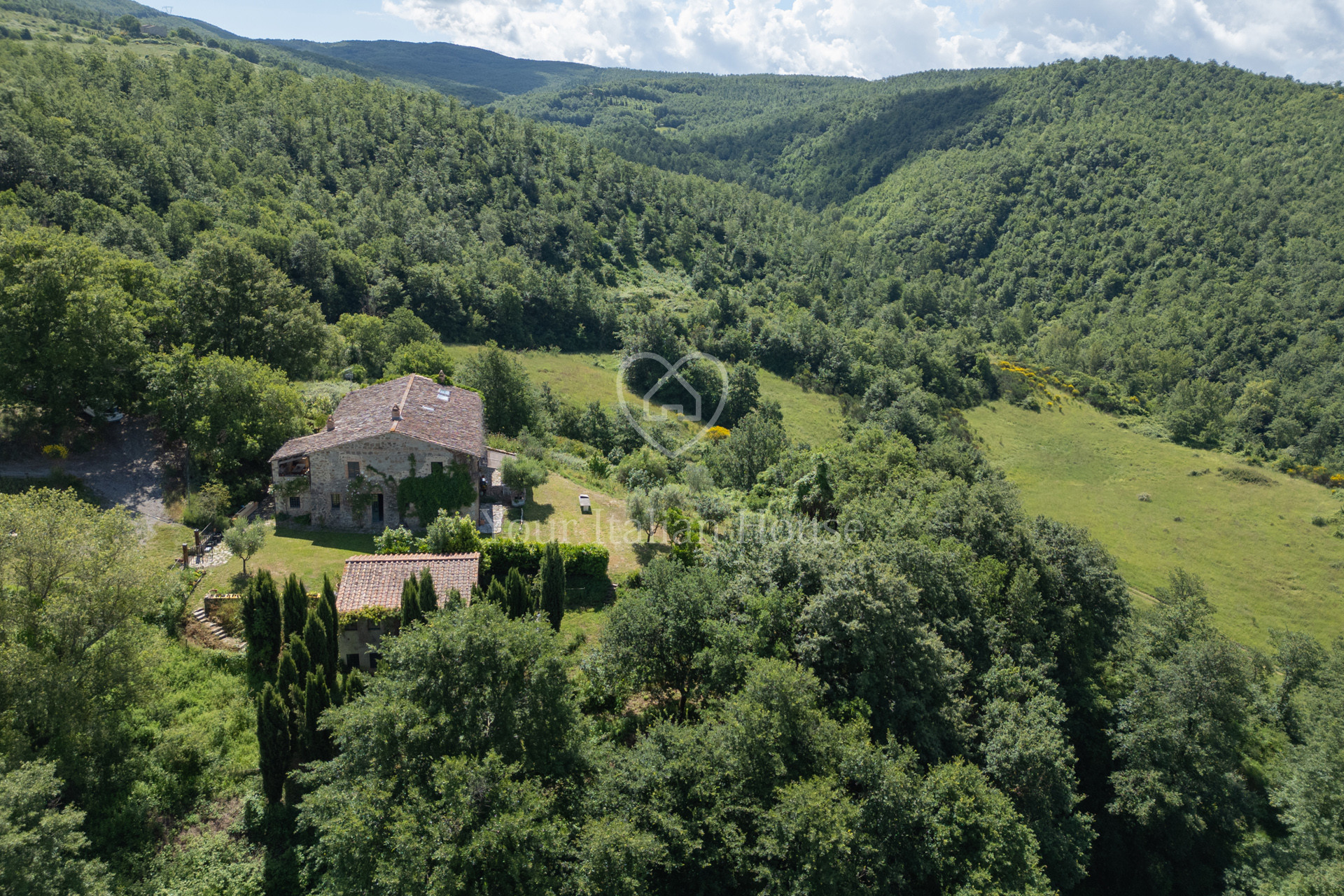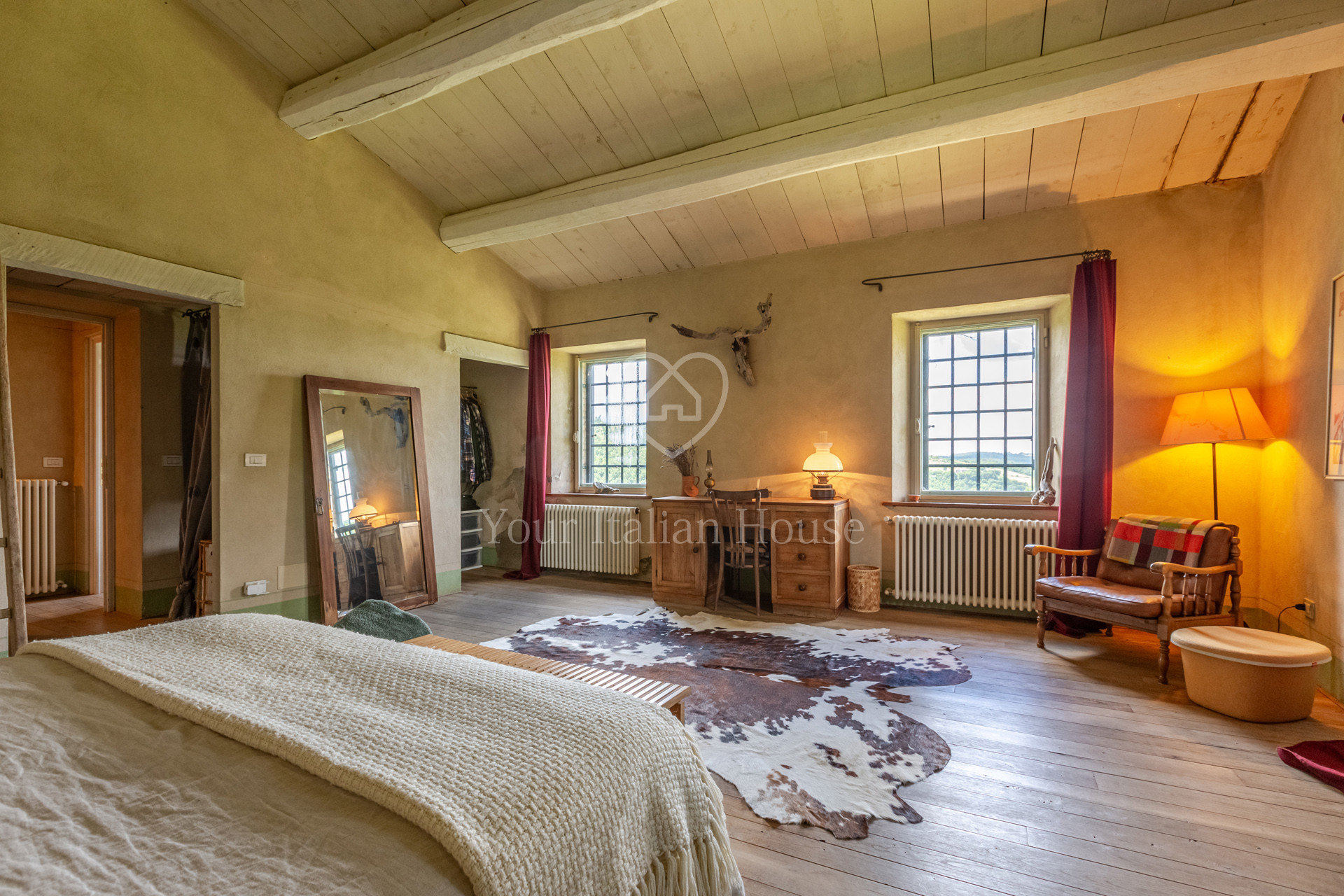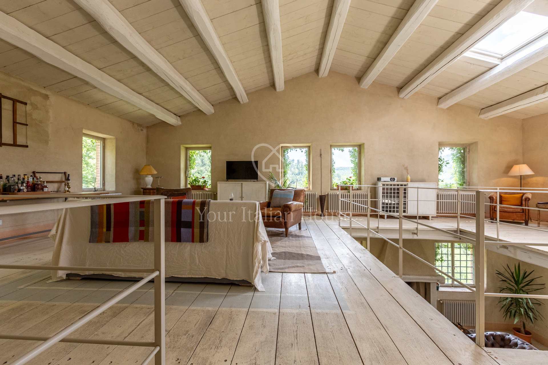 Podere Costarelle is a prestigious property consisting of an important stone farmhouse of approximately 470 square meters, set on private land of approximately 6 hectares. The property is surrounded by greenery in an intimate and private setting but is easily accessible from all the main roads. A delightful loggia leads to the interior of the farm where there is a spacious and modern kitchen with a Tuscan fireplace, a large double-volume living room distributed over two floors, very bright and equipped with spectacular windows with a view of the external panorama, 2 bedrooms and 2 bathrooms. From the lounge, the internal connecting staircase leads to the ground floor where we find the second part of the lounge indicated above, 3 bedrooms, 3 bathrooms as well as a large space currently used as a laboratory/study. The property includes an annex characterized by large windows that open onto the garden, including a heated indoor swimming pool, a lounge area and a bathroom. In the basement of the latter building there is an additional room used as a warehouse with bathroom. The property is surrounded by private land which is characterized by the farmhouse garden, arable land and woods for a total of 6.6 hectares. Option to purchase a further 6 hectares of land with olive grove and a renovated agricultural warehouse in the form of a “loft” with a double internal volume and with large windows that offer a beautiful view of the majestic panorama that opens onto the valley and Mount Amiata (+ 300,000 EUR).