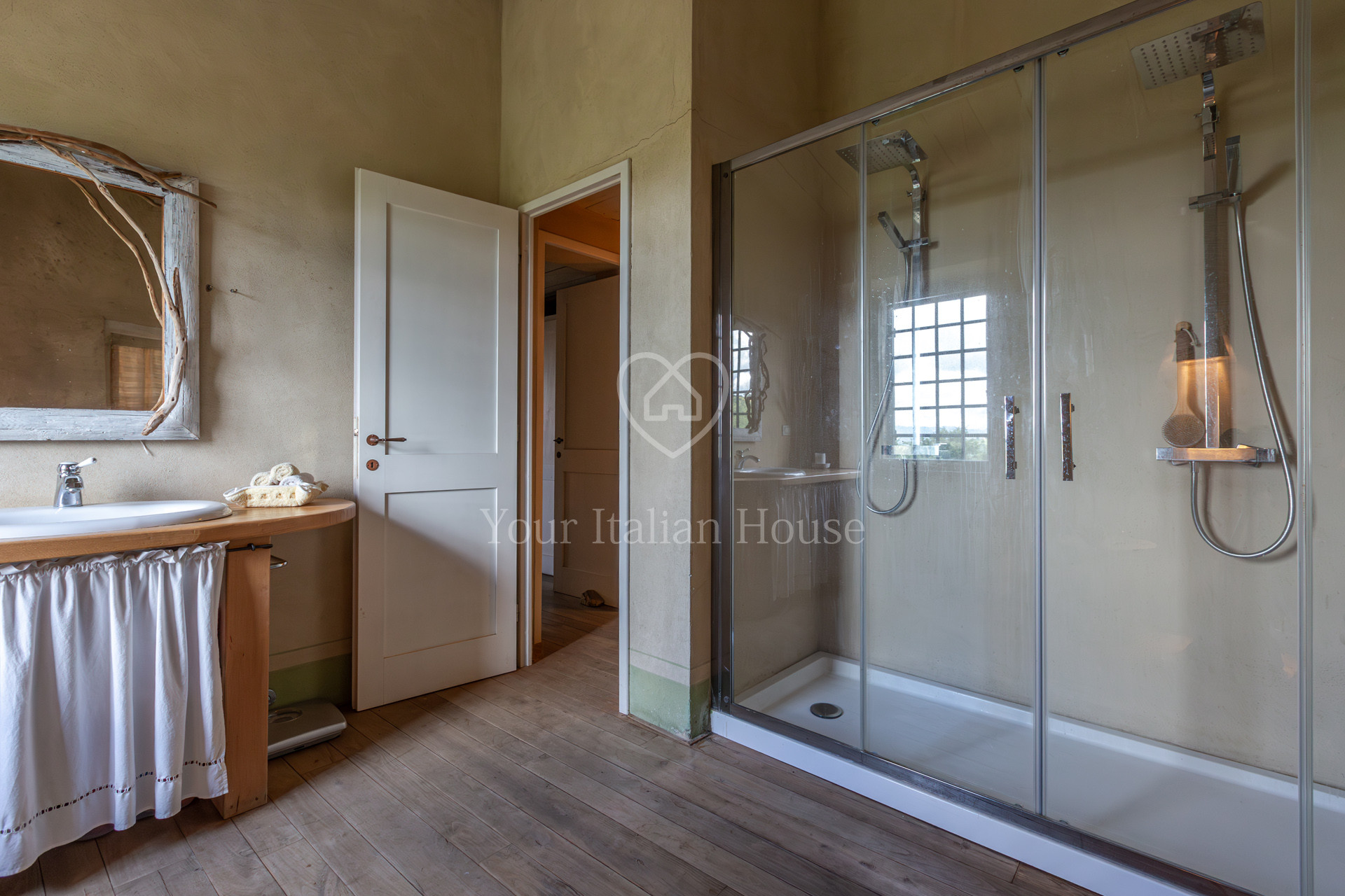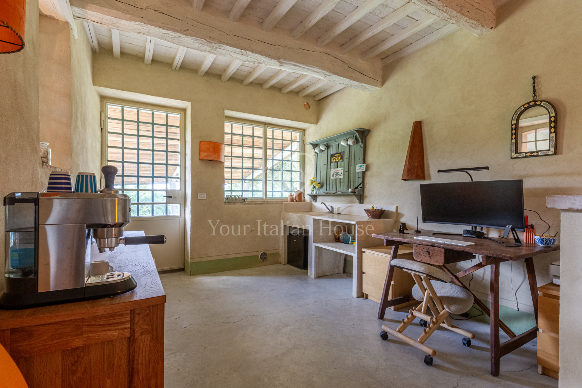 The property was beautifully renovated in 2001. Podere Costarelle retains the rustic and traditional appearance of a typical Tuscan farmhouse, and following the careful restoration, it has preserved its original architectural features such as the stone walls, exposed beams with terracotta tiles, and the tile roof. The structure has been complemented with modern elements, such as resin floorings, which bring a pleasant mix of old and new from an aesthetic perspective.