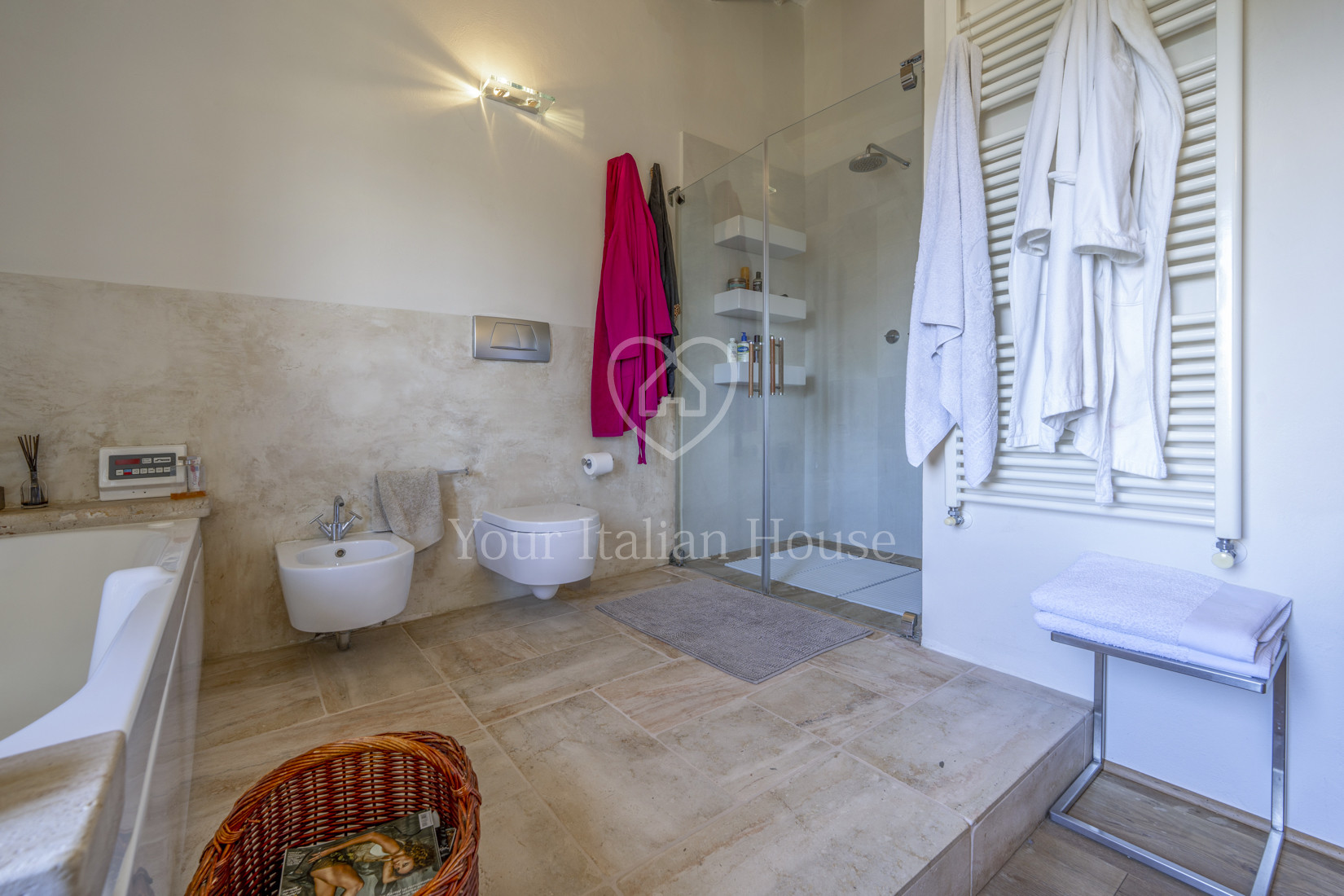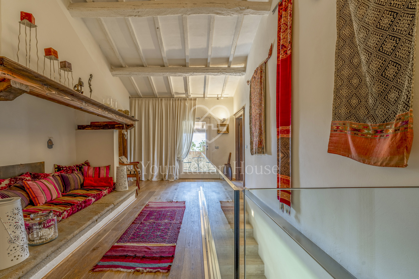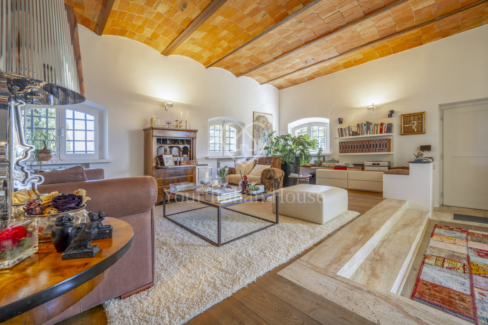 The last complete renovation of the property took place in the early 2000s, using innovative and cutting-edge techniques. The structure is in impeccable condition, the result of a constant and meticulous maintenance by the owners, always attentive to the smallest details. On the outside, the property is characterized by charming stone facades, while inside the main house you can admire ceilings with exposed wooden beams and floors that combine the beauty of handmade terracotta and travertine with the warmth of parquet. Thanks to a favorable exposure to sunlight, the interior is bright and welcoming.