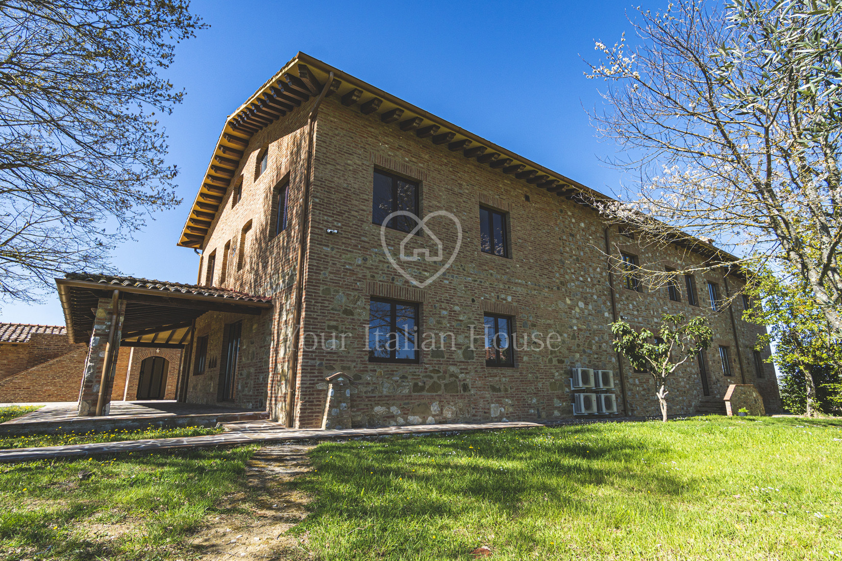 The property is in perfect condition and is practically new, having undergone a complete restoration in 2019. Externally, the farmhouses have kept the traditional characteristics of the old Umbrian farms, unaltered. They consist of load-bearing masonry in kiln bricks, insulated roofs with mantle in Roman tiles, and aluminium windows with double glazing. Internally, the main house has elegant parquet floors that manage to mix the rustic and modern style of this particular country house. The finishes of the bathrooms are of a high standard, as well as the handcrafted kitchen, characterised by beautiful Carrara marble tops. The interior lighting was also designed with particular care through the recessing of numerous light points on the false ceilings of the rooms. The two annexes are also excellently finished with quality materials. The entire property is perfectly restored and maintained both in its internal parts and in the external areas, and is therefore ready to be furnished and lived in.