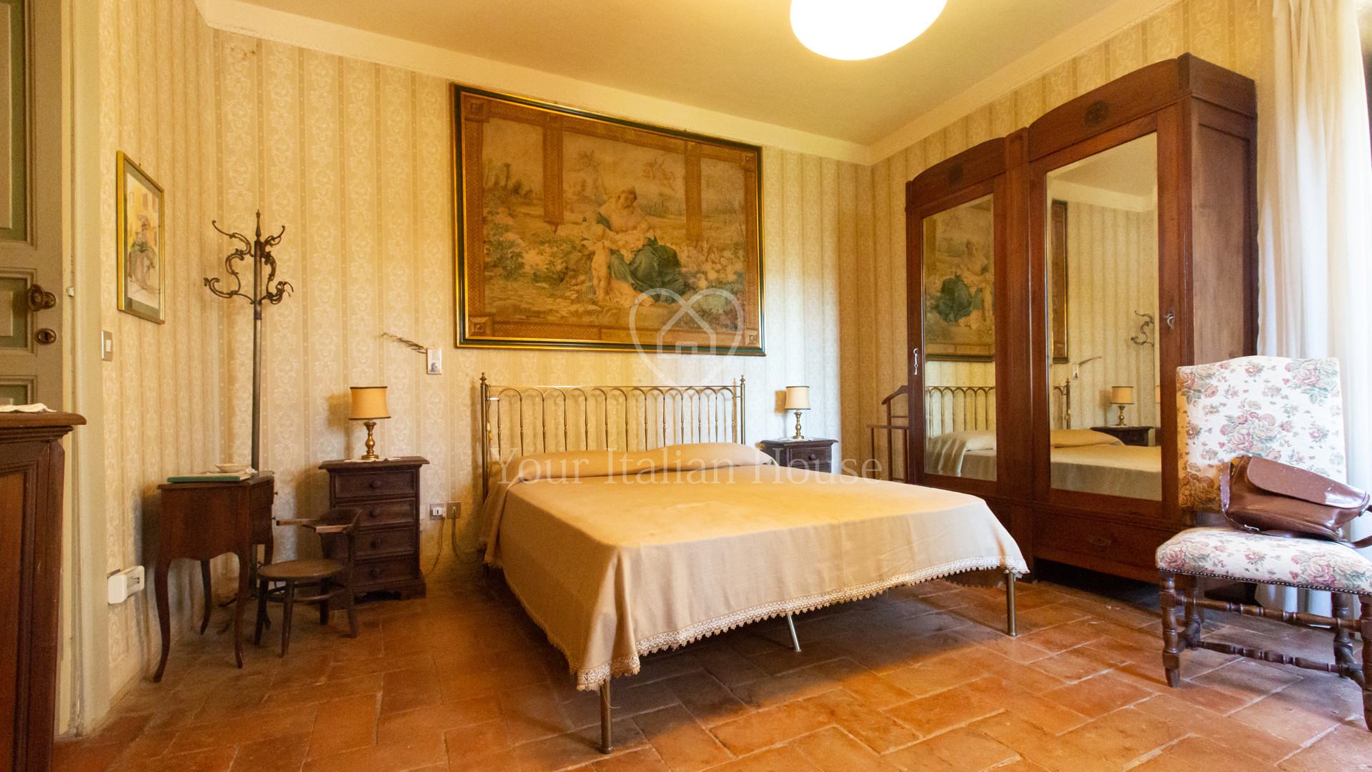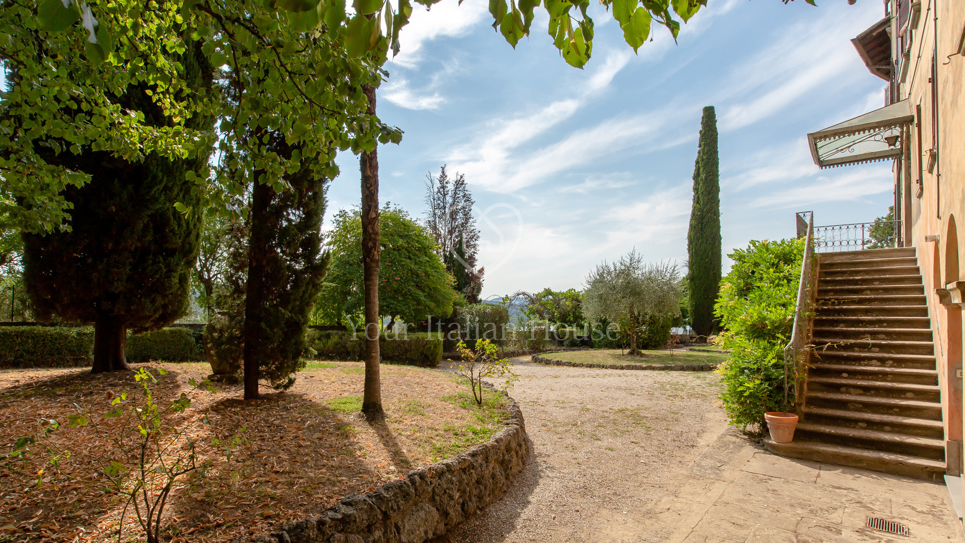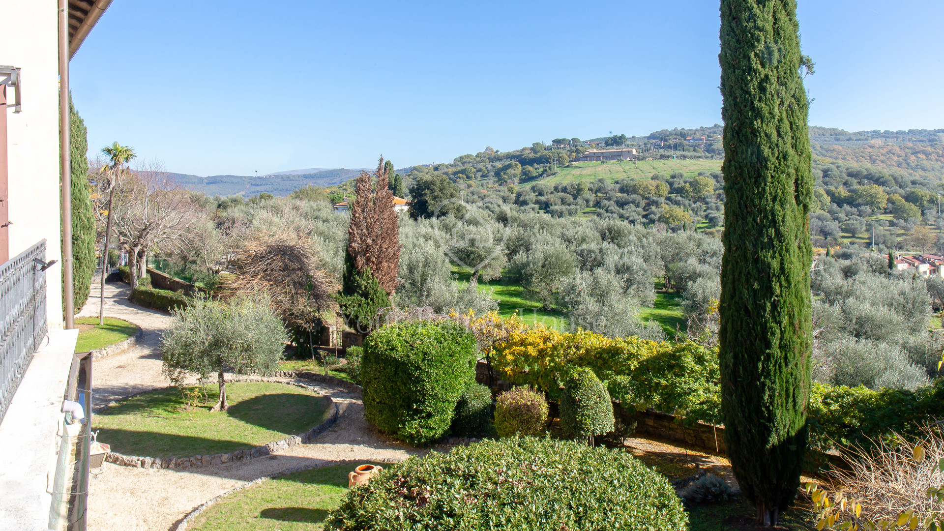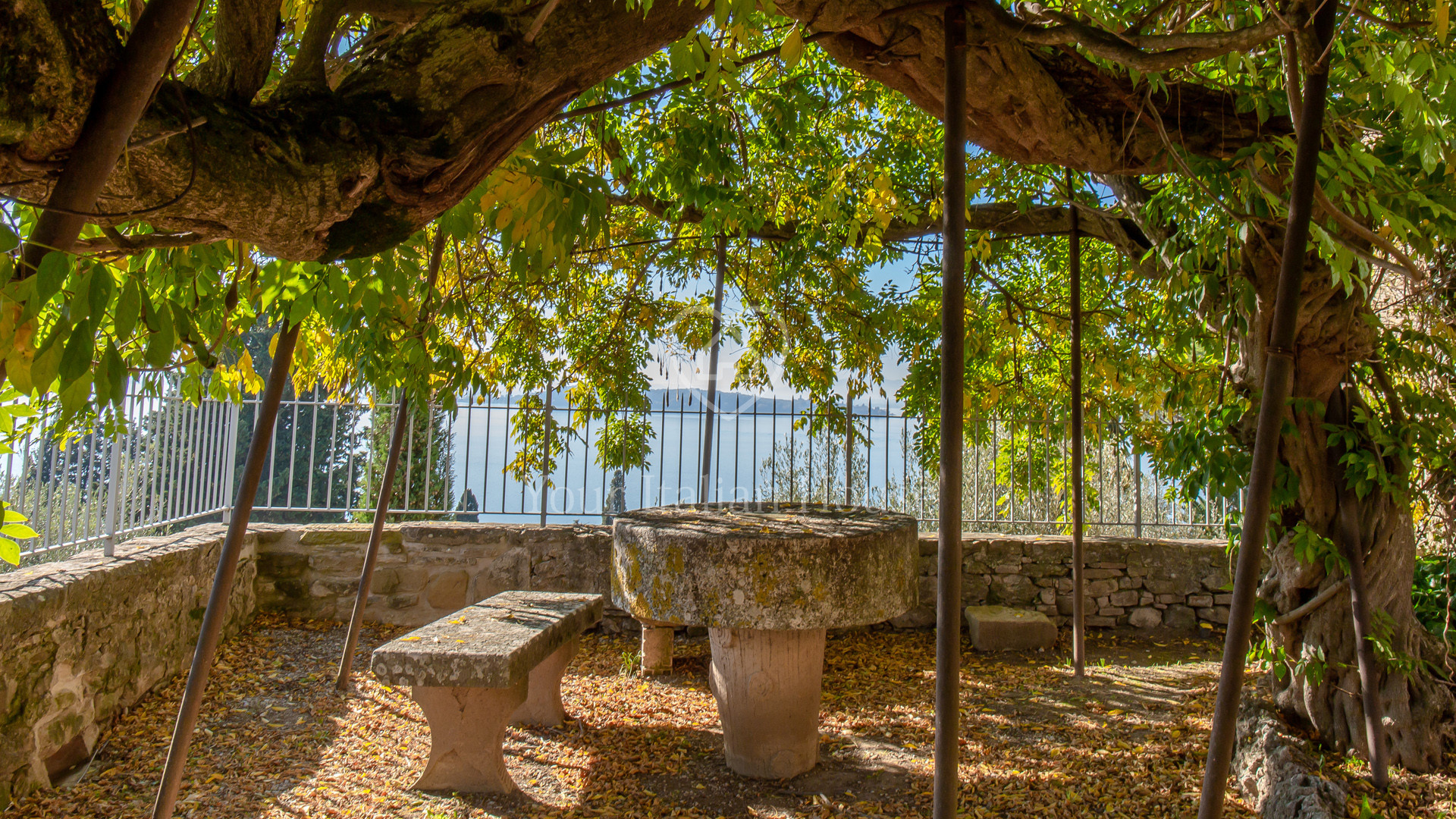 This historic villa is located in the most beautiful point of Lake Trasimeno from which you can enjoy a breathtaking view. The villa was built around the middle of the 19th century and presents various testimonies of the time. It was the home of Guido Pompilj and his wife, the poetess Vittoria Aganoor Pompilj, one of the most important figures of Italian poetry between the 19th and 20th centuries. The villa is on three floors, two of which are habitable and one with cellars. There is also a panoramic tower with a terrace that offers a 360° panorama of the lake and the green hills around. The property is located in the small town of Monte del Lago located on a promontory on the lake shore. The villa is surrounded on three sides by a high wall which allows for a lot of privacy and on one side there is an olive grove where it would be possible to build a swimming pool with lake view. The villa is on three floors including a basement where there are various cellars and a kitchen/rustic to host family reunions or when there are many friends, as well as an ancient bread oven. The first floor connected to the outside both by an external staircase from the front garden and by an internal staircase, houses an apartment with three large frescoed rooms, kitchen, pantry, 5 bedrooms, 3 bathrooms and various hallways. The second floor can be reached via an internal staircase where the second apartment is located, consisting of three rooms, two of which are connected to a large terrace called “La Terrazza della Poetessa” with an amazing view of the lake and a kitchen, three bedrooms, study, three bathrooms as well as a large entrance and various closets and hallways. Going up the stairs to a further floor you find yourself in a room with large windows on all sides and connected to a small terrace from which you can enjoy a unique 360° view of the lake and the green hills that surround it. A place to relax and seek inspiration. Both in front of the villa and in the back there are two Italian gardens with tall trees and elliptical flowerbeds. Also present in the garden is an ancient medieval tower, part of the ancient walls surrounding the property. The villa is, with its position and history, a unique and rare place. It could be used both as a private residence but also for a hospitality business. The villa requires a total renovation regarding systems, bathrooms, kitchens even if the structural condition is good.