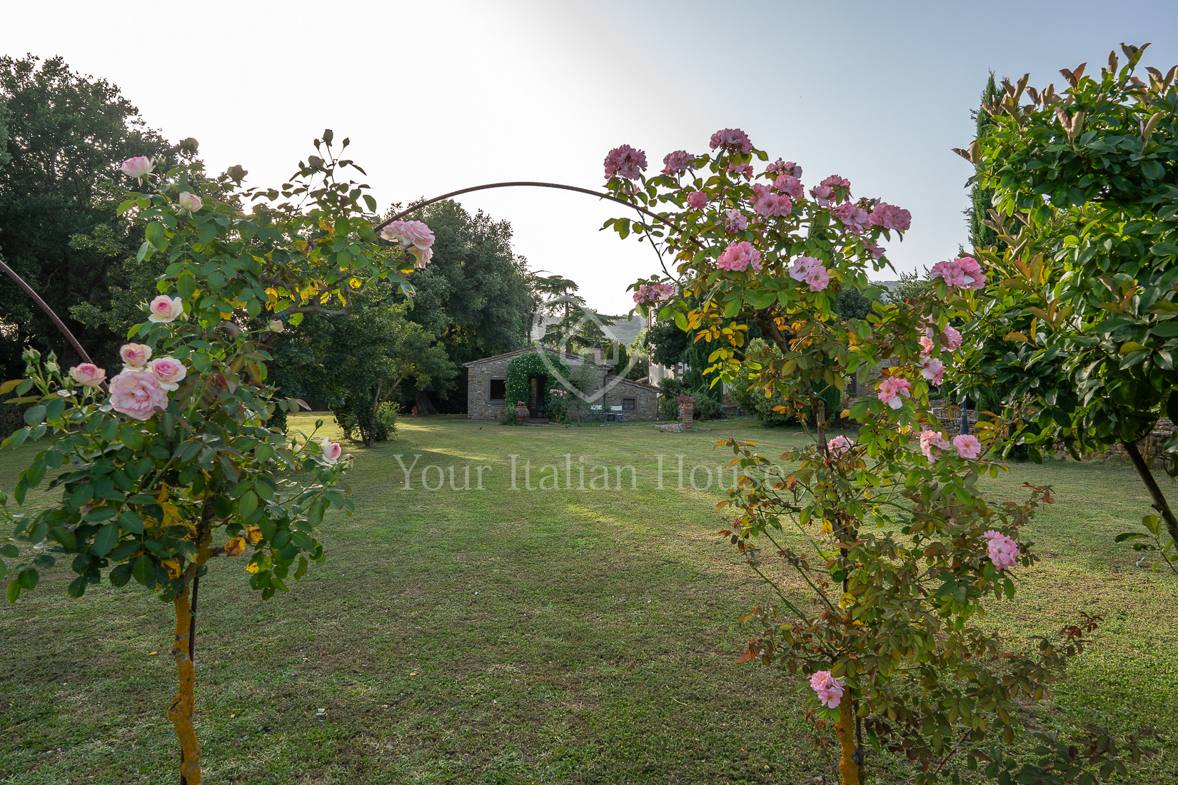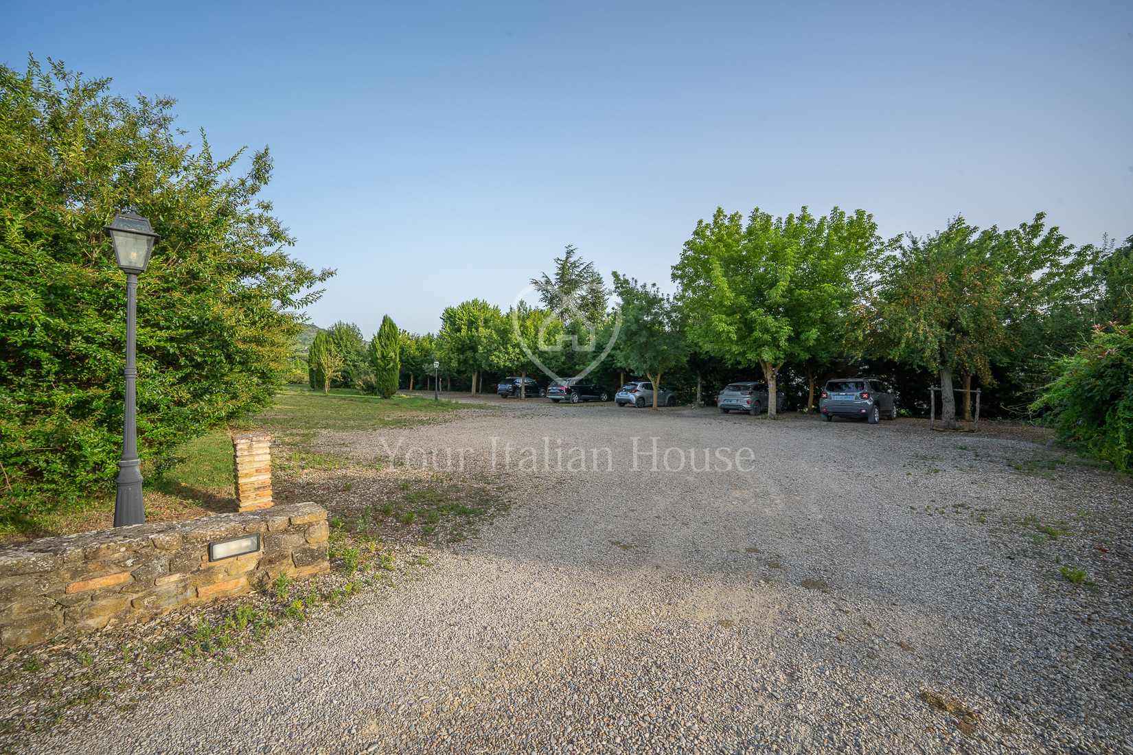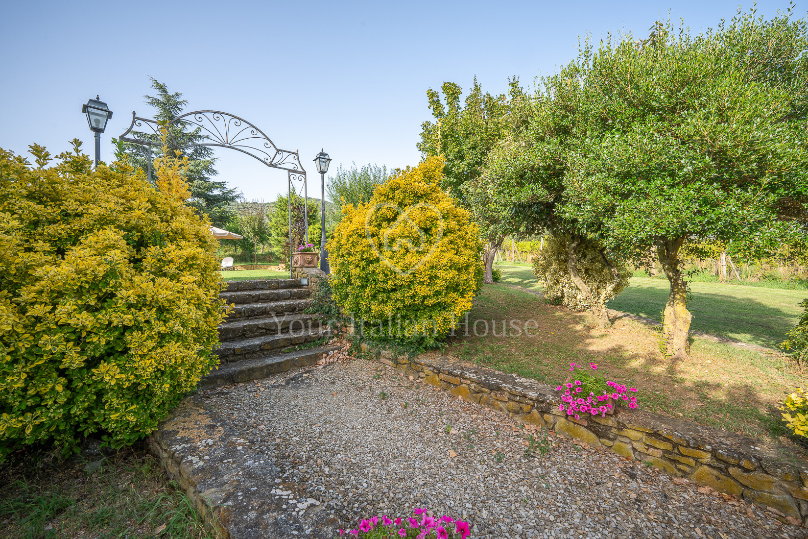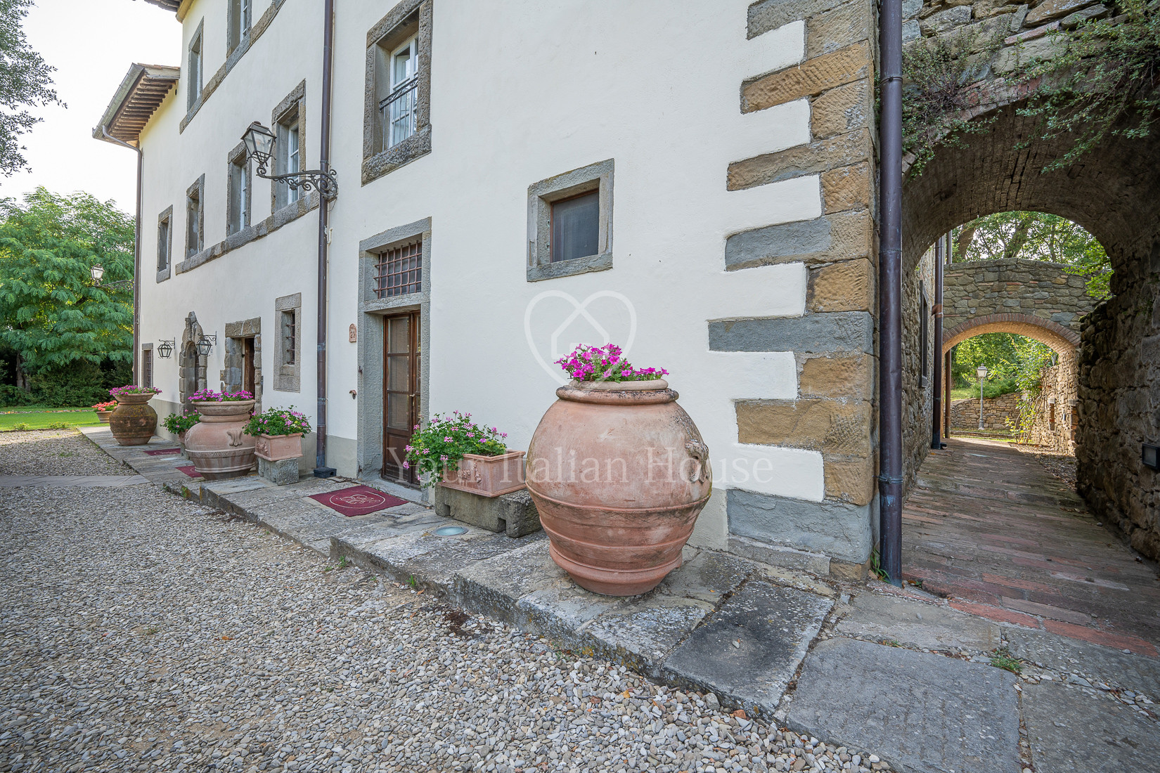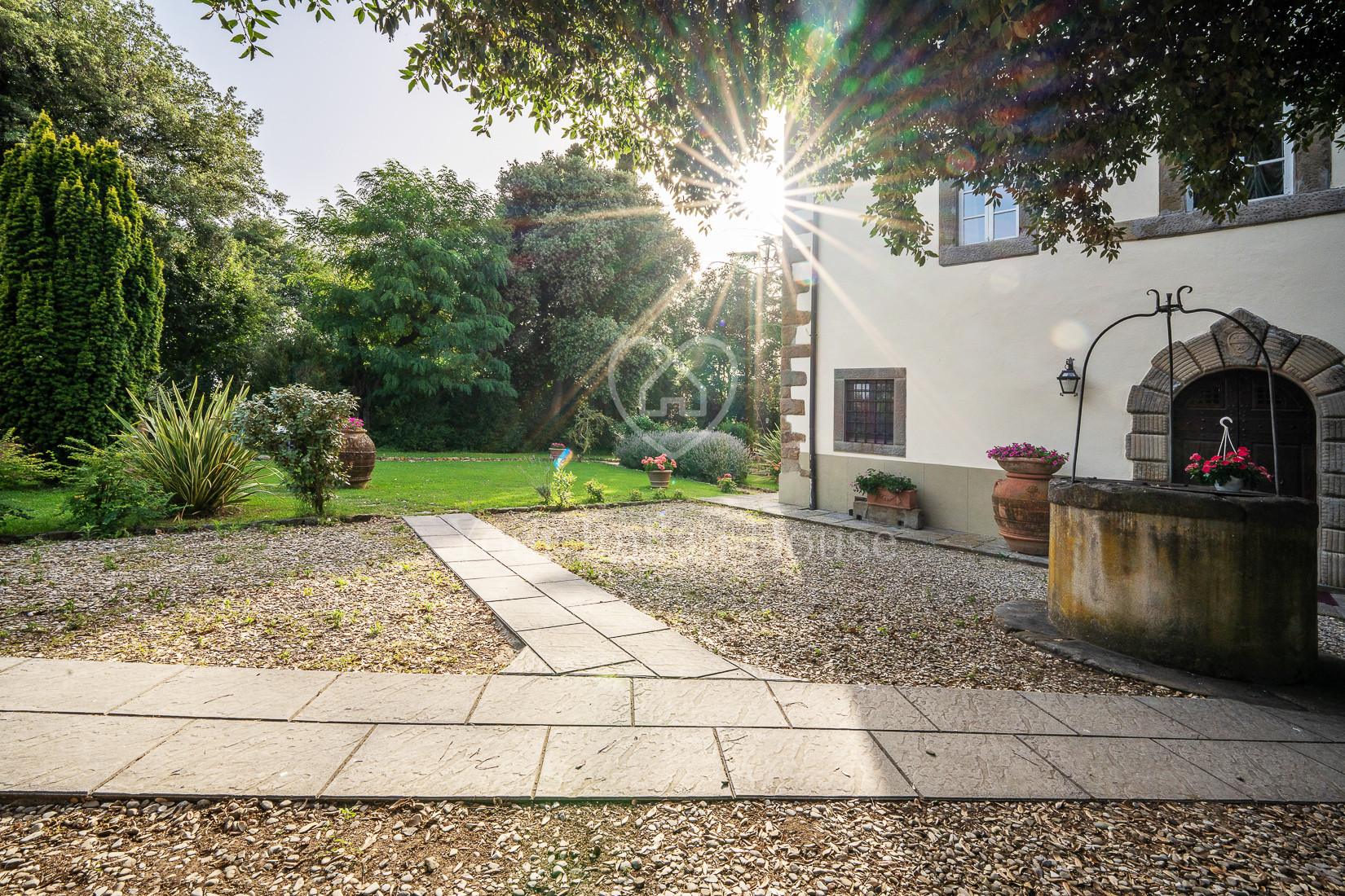 The property includes 5.8 ha of land of which the beautiful park with century-old oak trees, a small vineyard, olive grove and arable land.