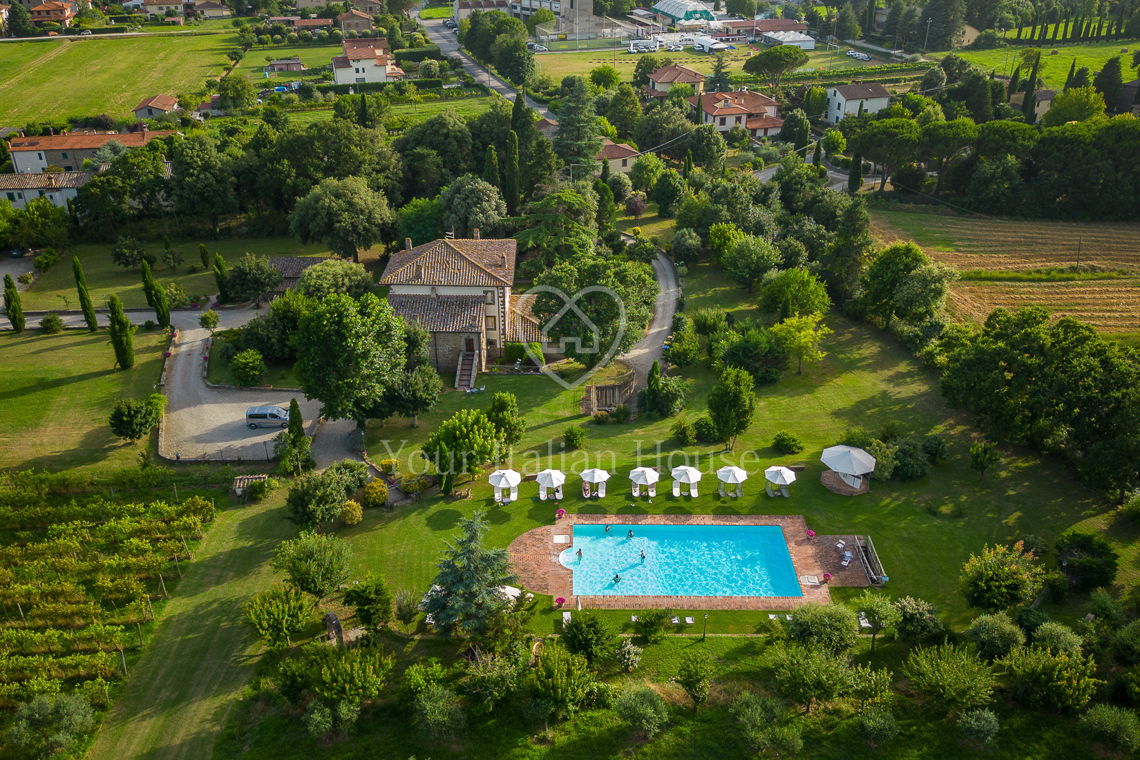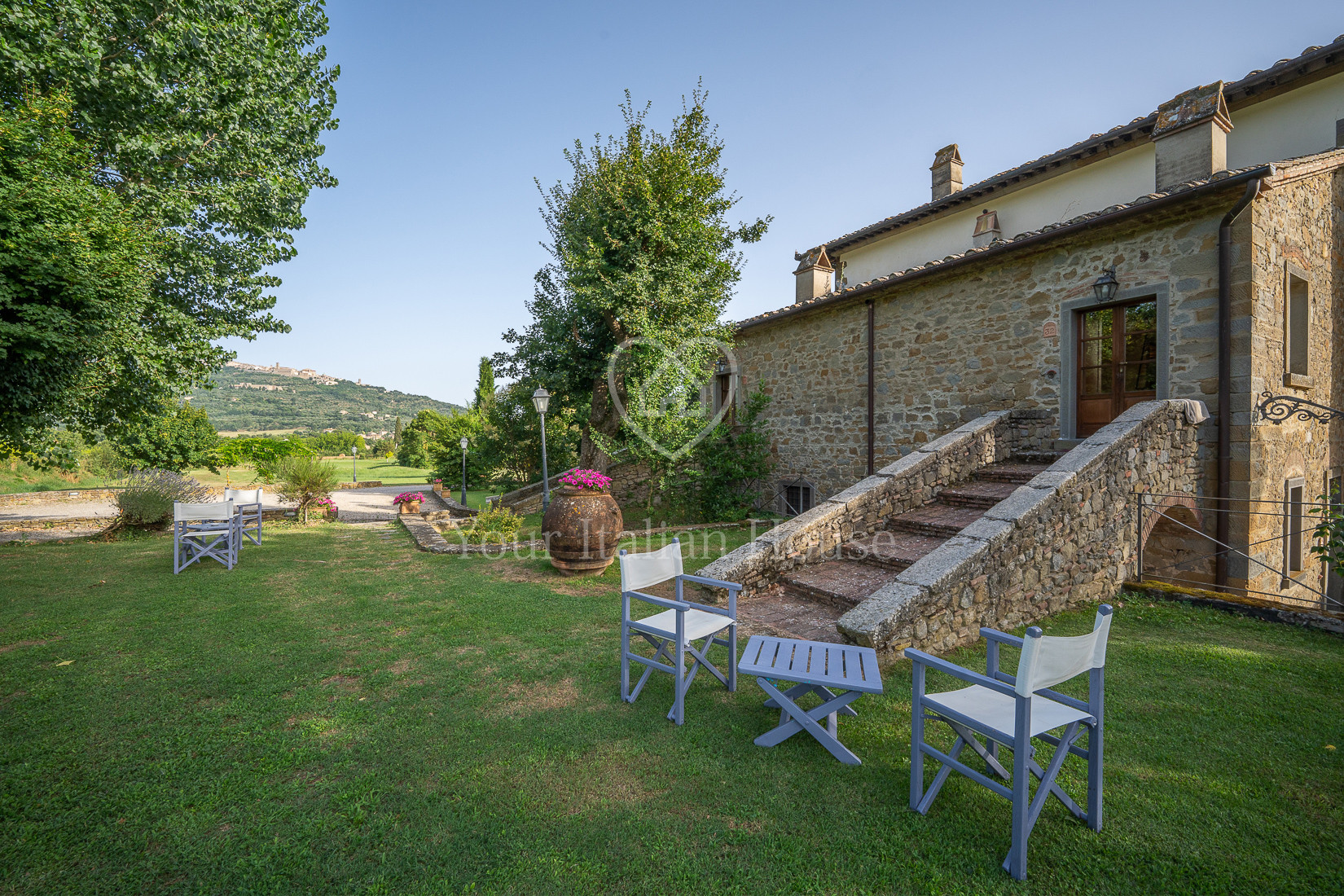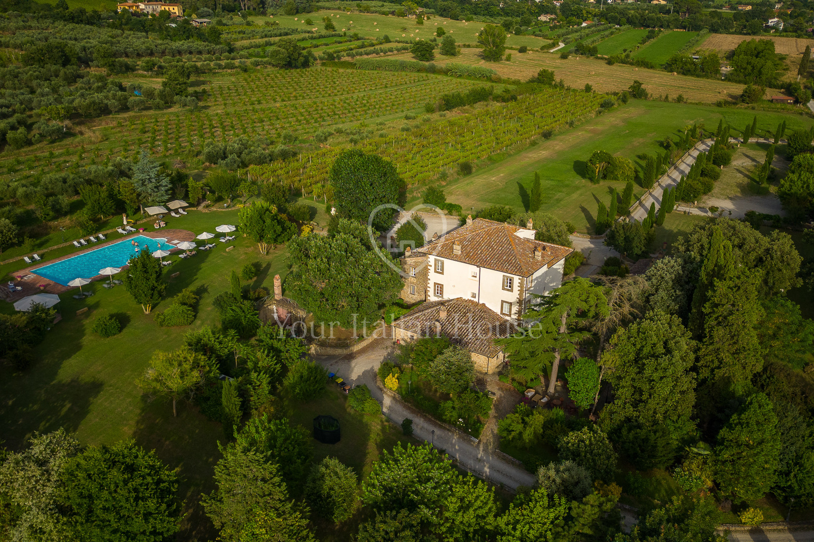 The property is only 3.5 km from the historic centre of Cortona, within a 30-minute range are towns such as Arezzo, Montepulciano and Lake Trasimeno. The nearest airports are Perugia (50 km, 45 min), Florence (100 km, 1 h 15 min), Pisa and Rome (180 km, 2 h).