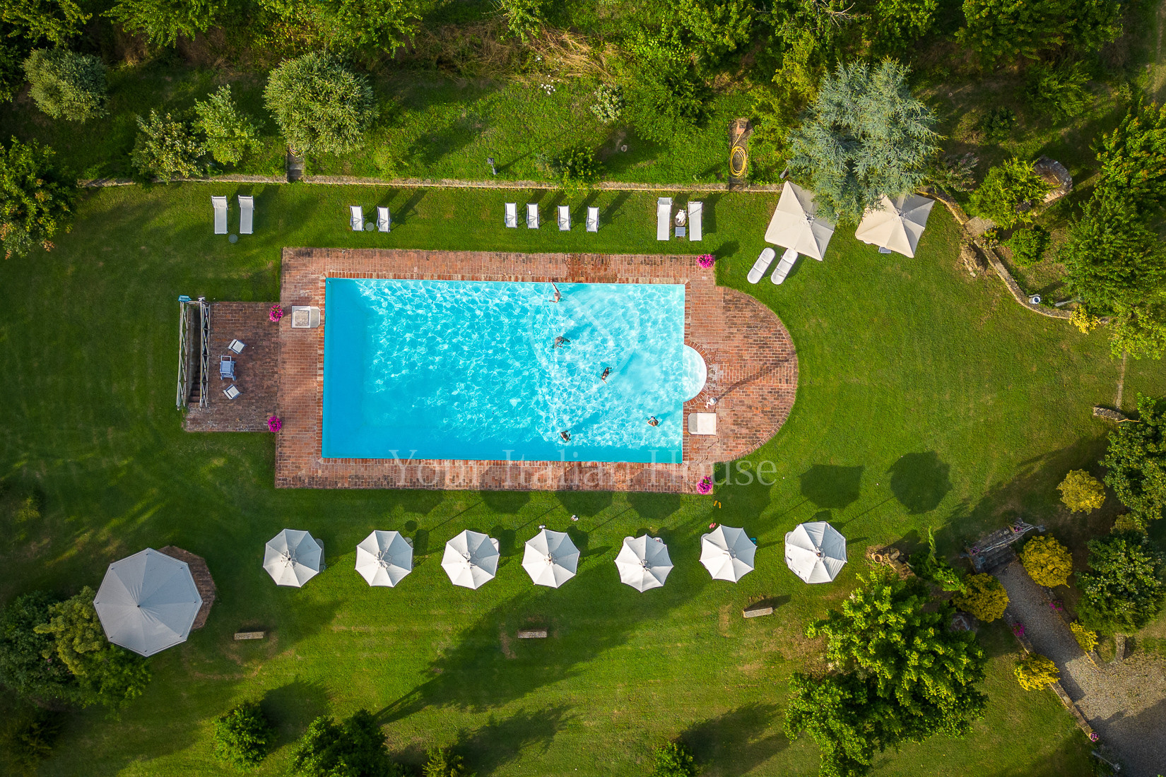 In a slightly elevated position above the house is the swimming pool area with a 20*10 m pool, terracotta solarium area and panoramic view of Cortona.