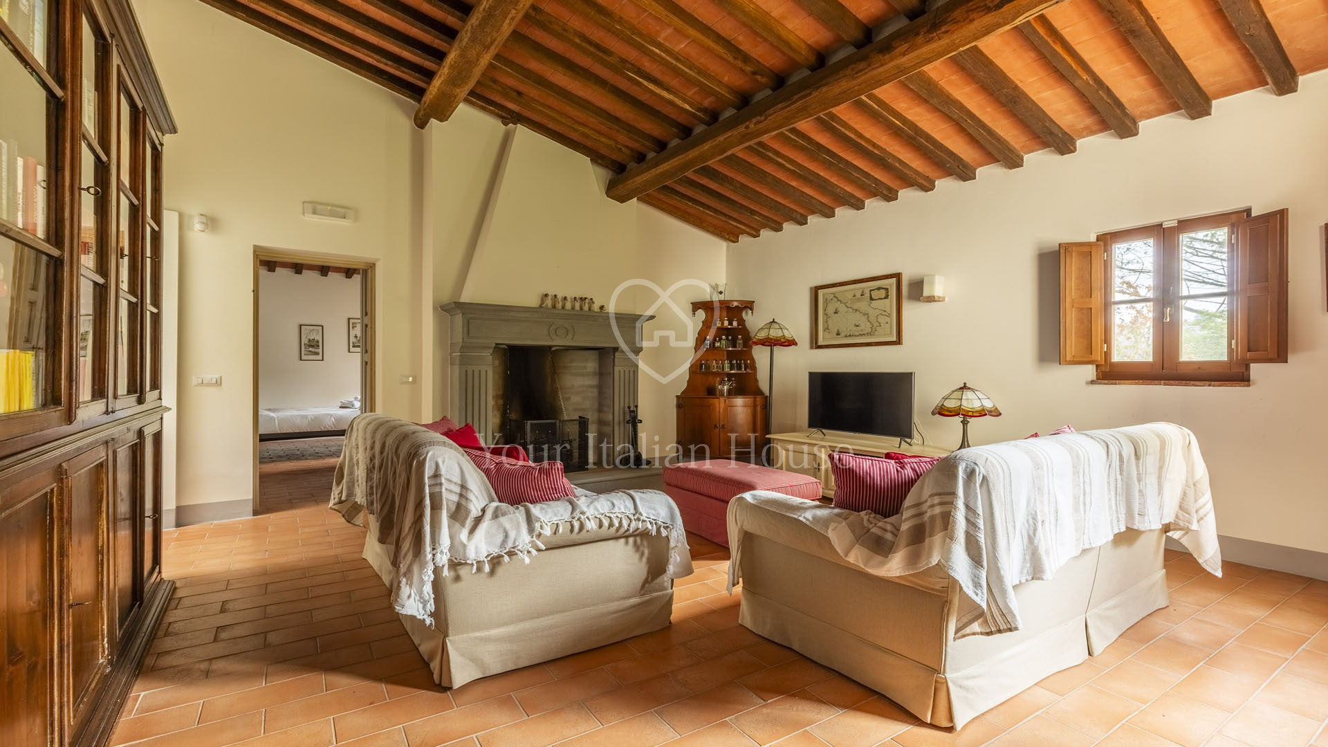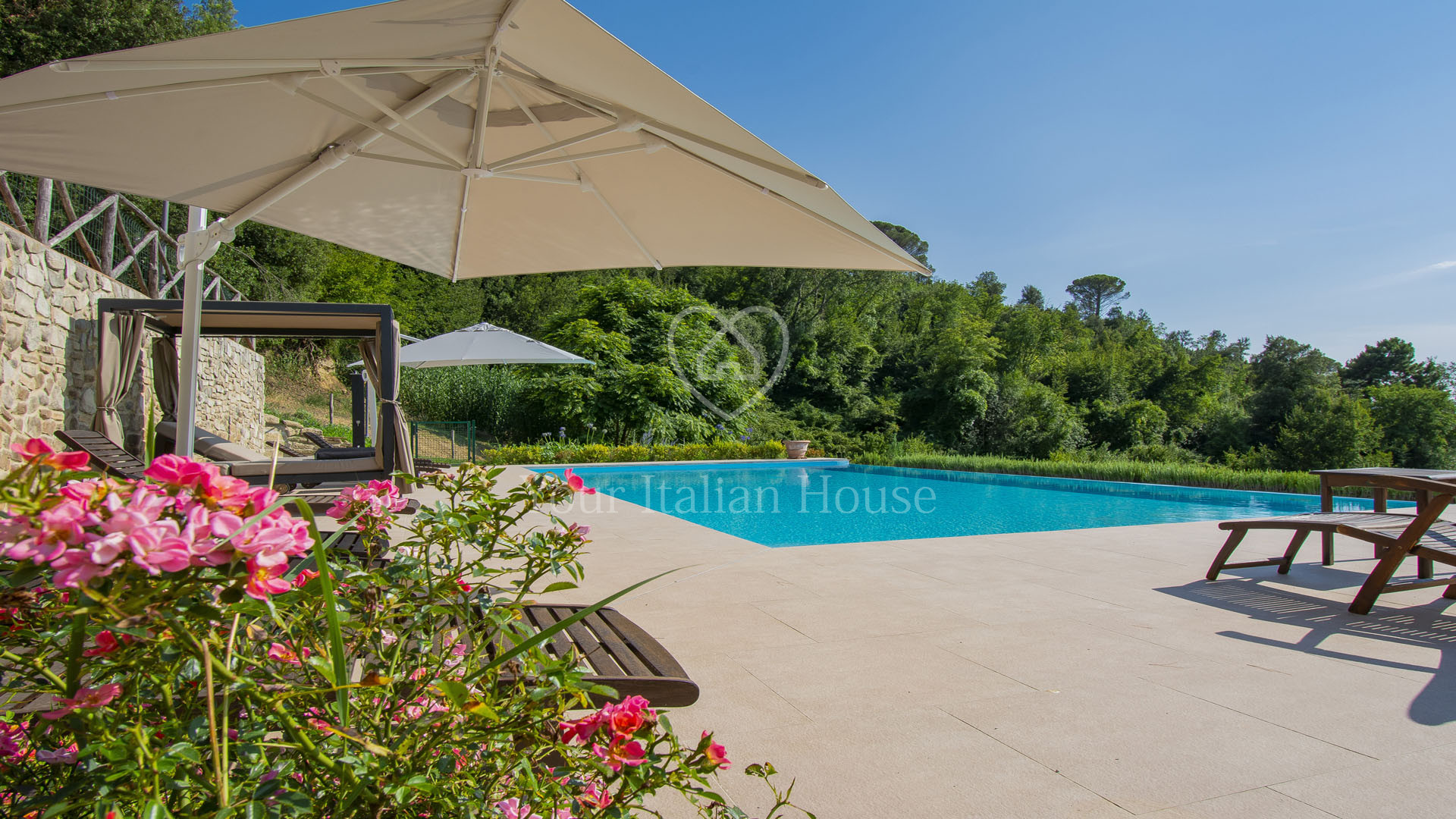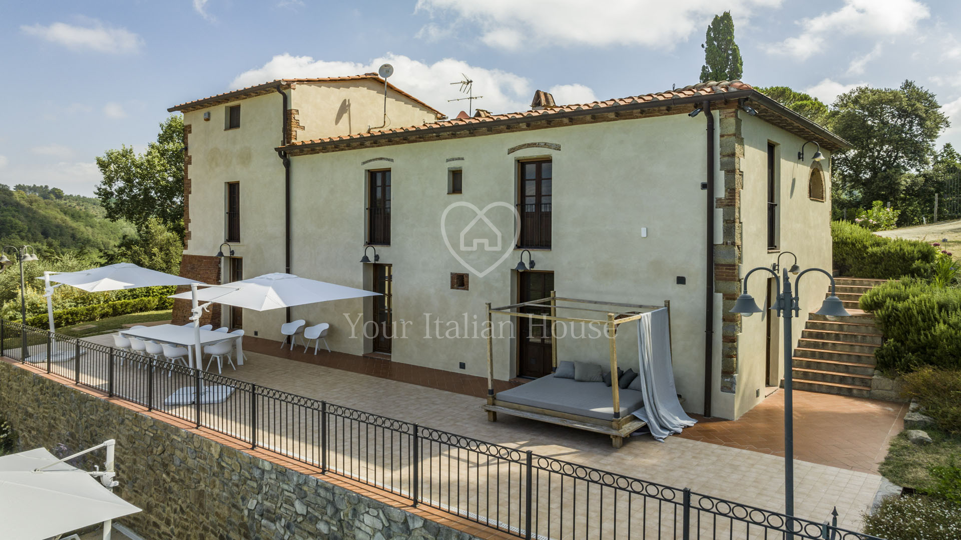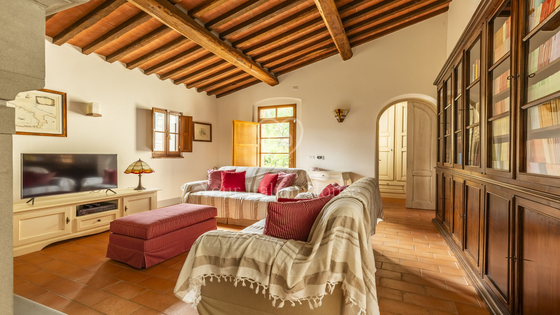 The villa was completely rebuilt in 2013, maintaining the typical Tuscan elements while adding a touch of modernity to the interior spaces.
