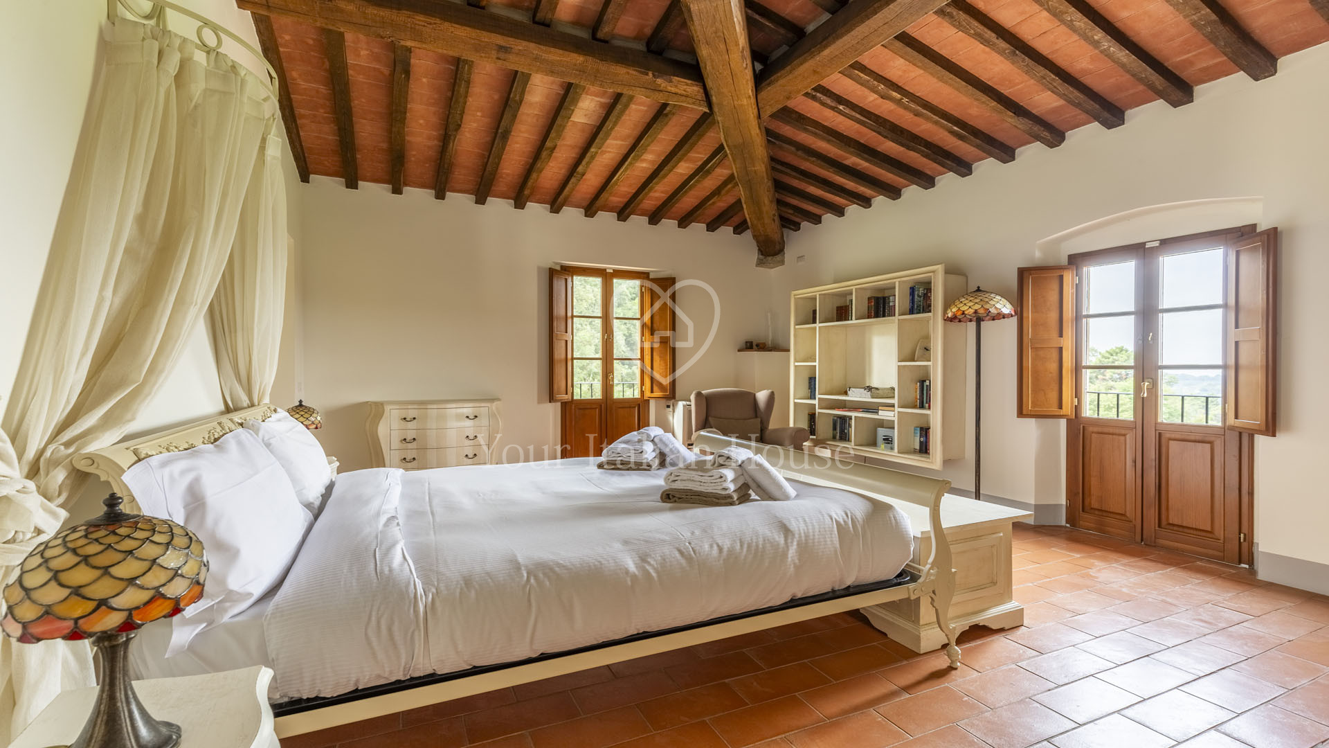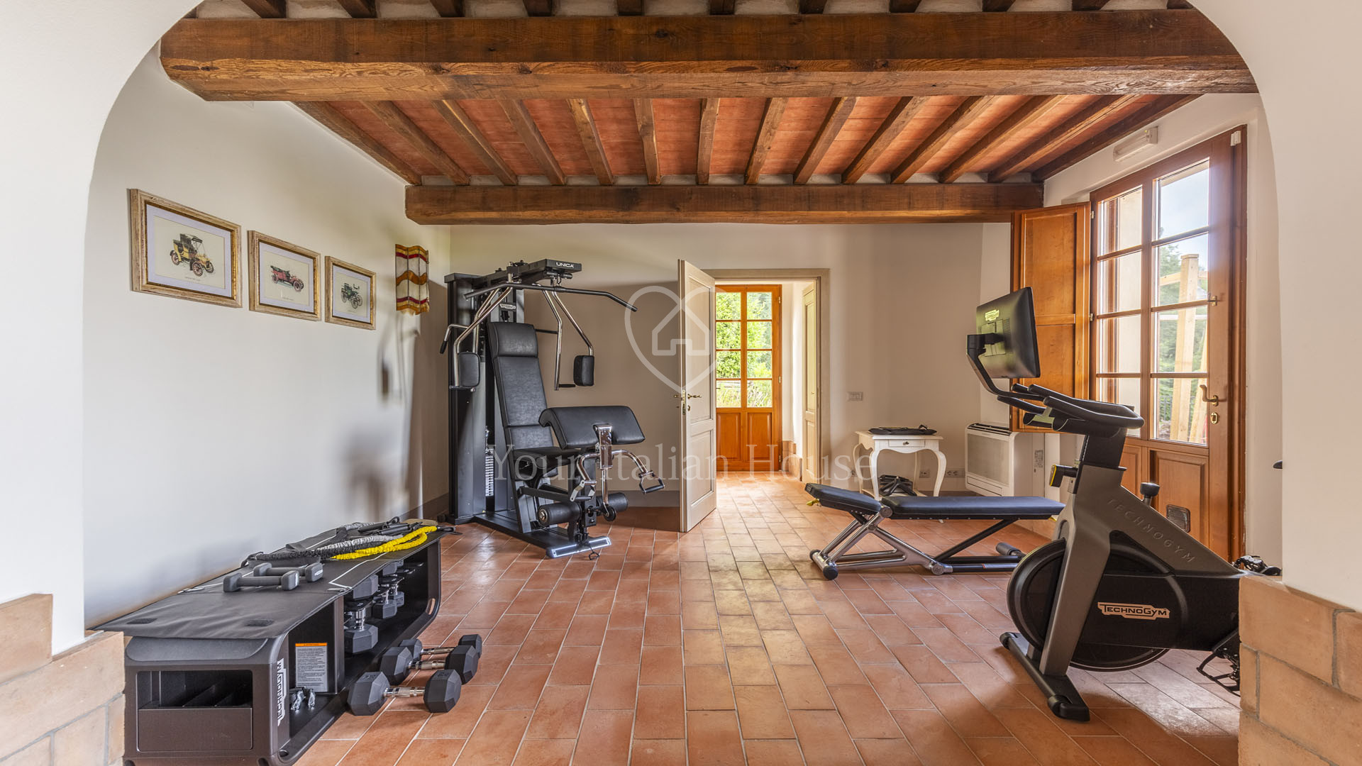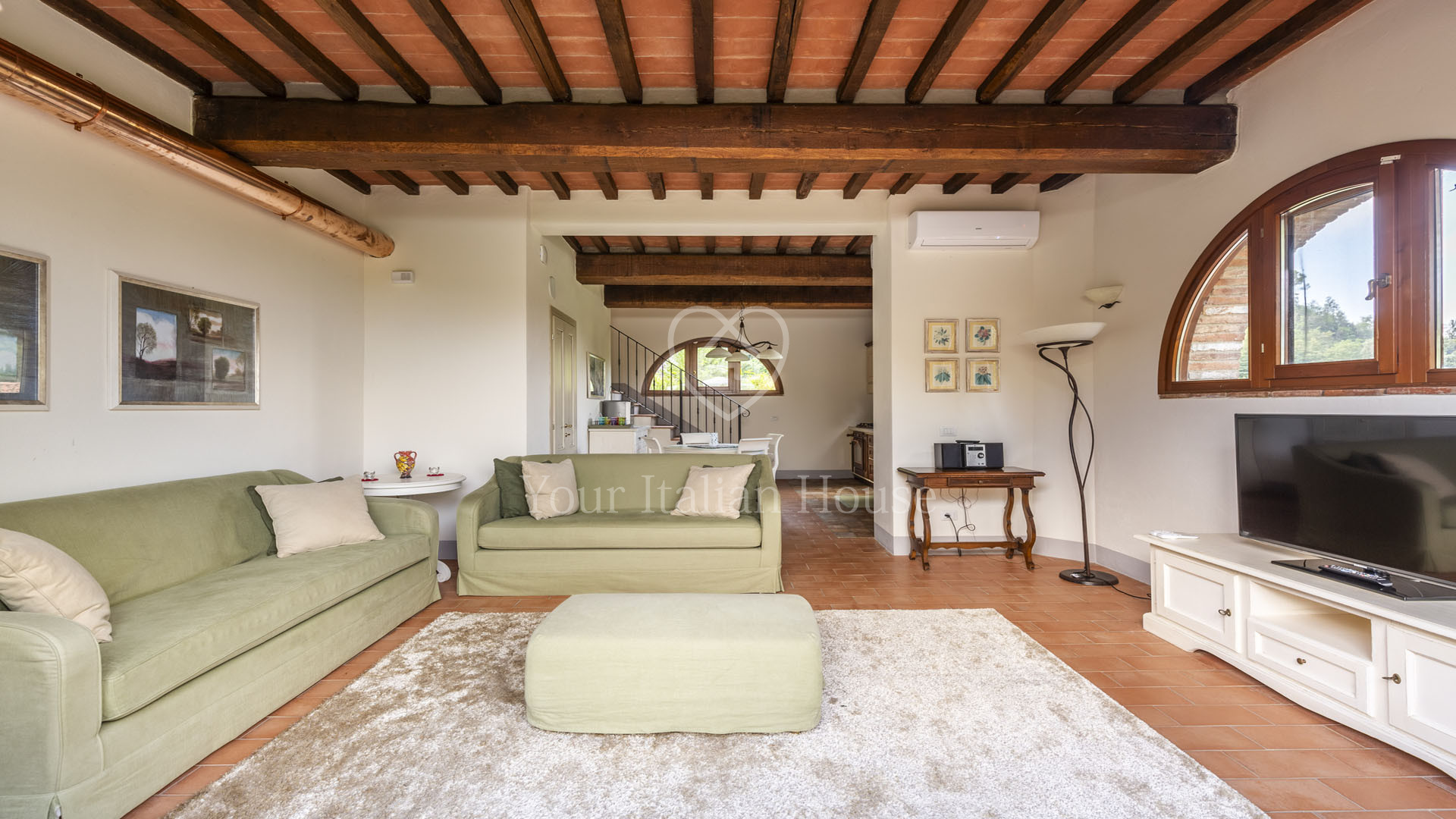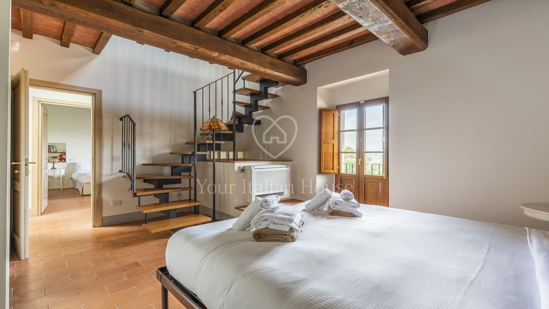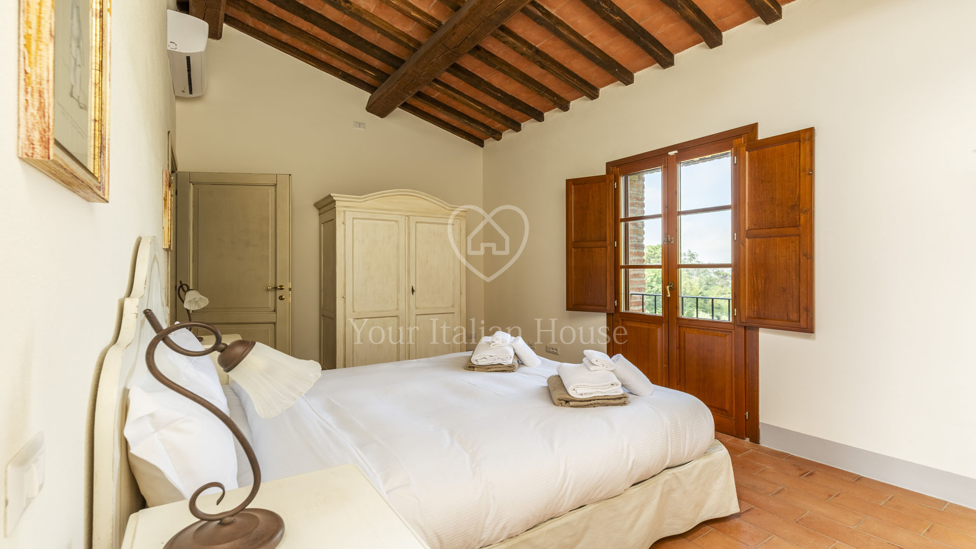 The villa was completely rebuilt in 2013, maintaining the typical Tuscan elements while adding a touch of modernity to the interior spaces.