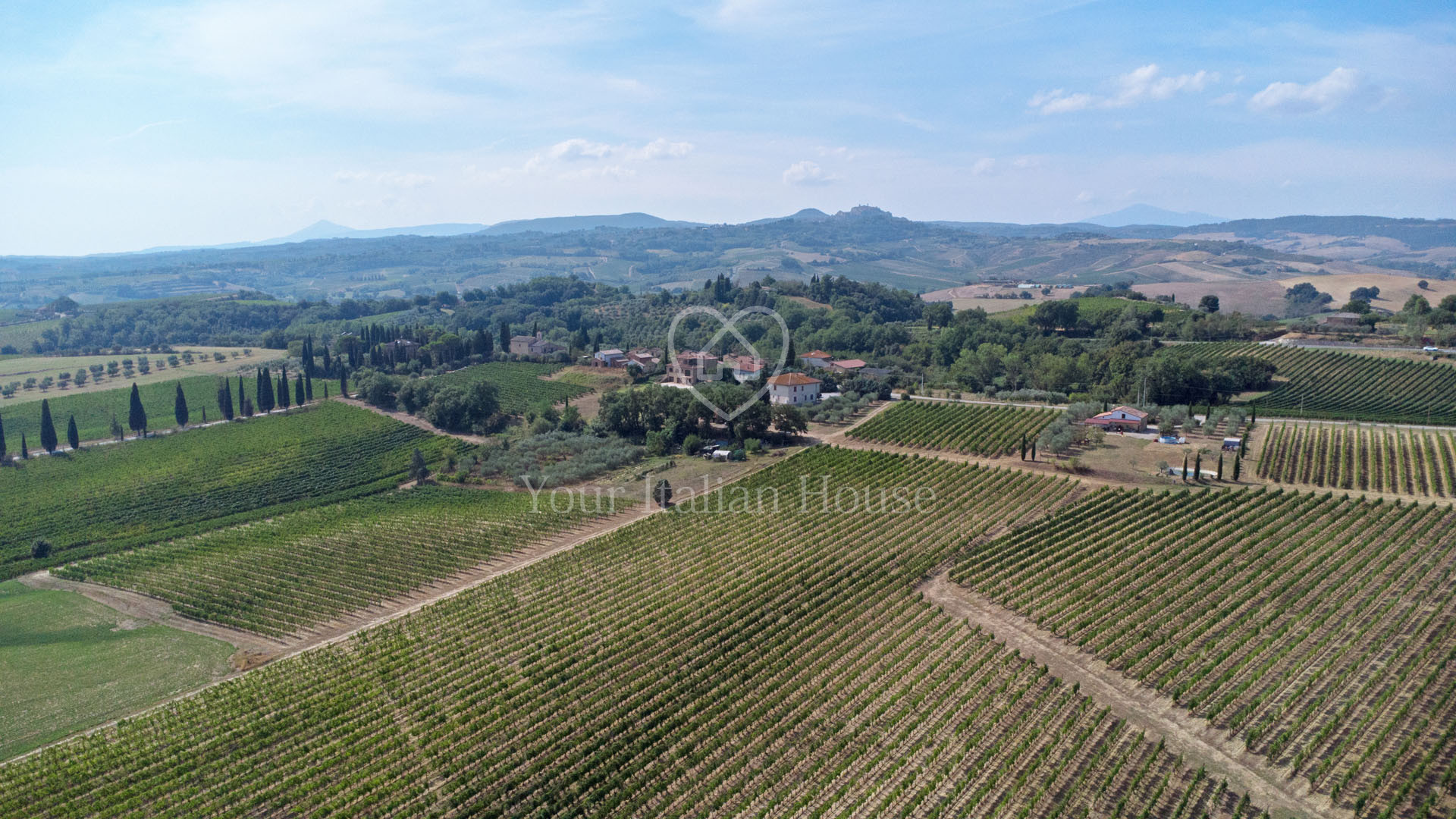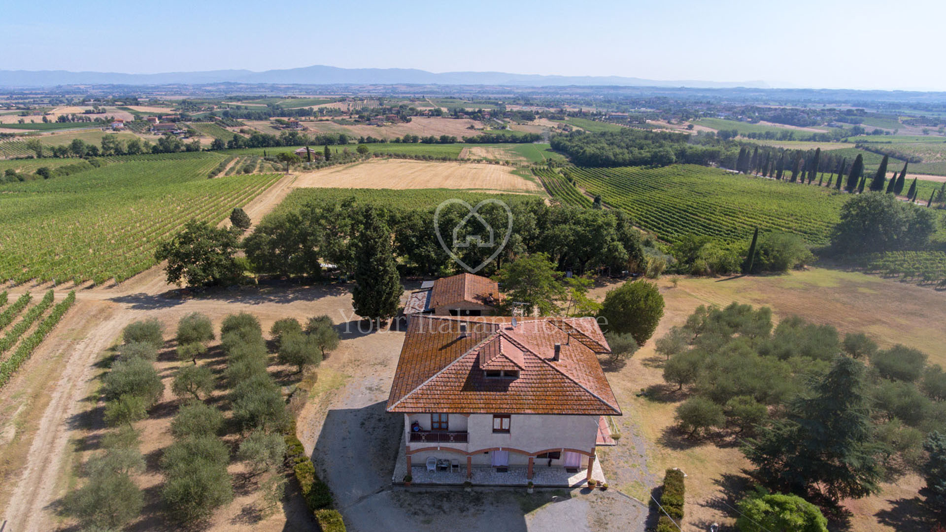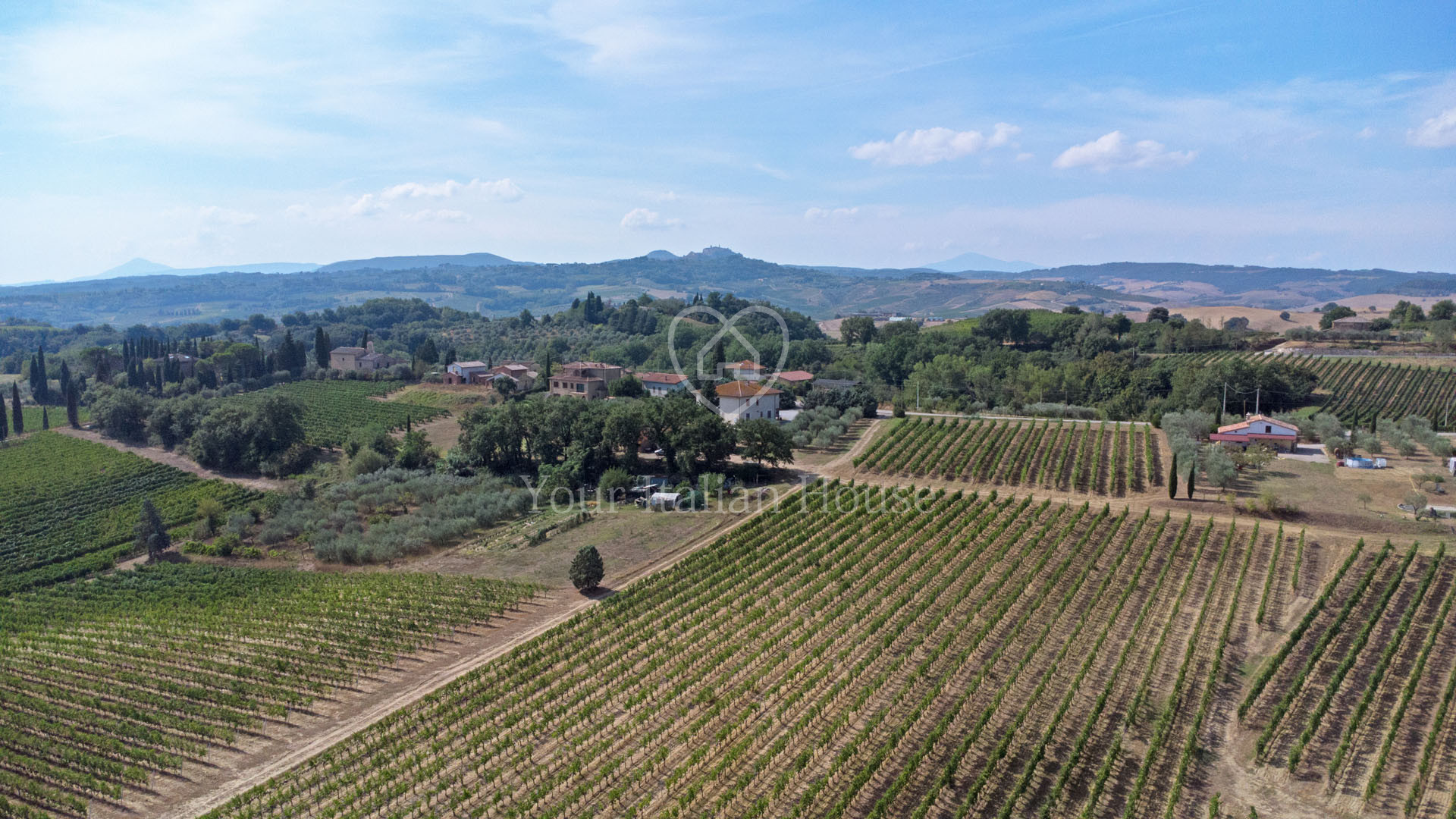 Het pand wordt gecompleteerd door 5.244 m² tuin met een olijfgaard van ongeveer 95 bomen en 4,7 hectare wijngaard waar Vino Nobile di Montepulciano, Rosso di Montepulciano, Chianti en IGT Toscano wijnen worden geproduceerd. Daarnaast is er de optie om een overname aan te vragen van de pacht voor aangrenzende wijngaarden (18.500 m²).