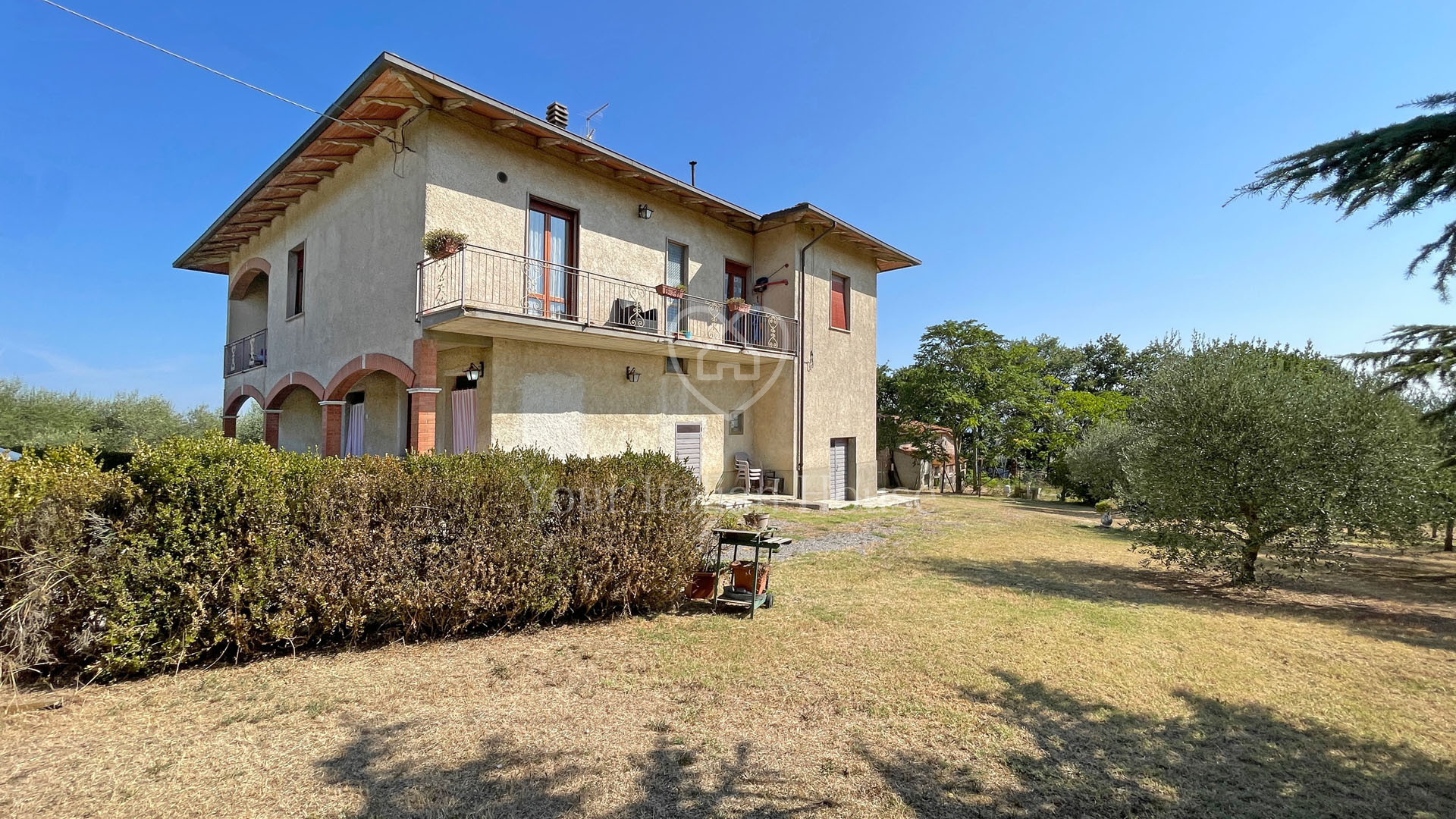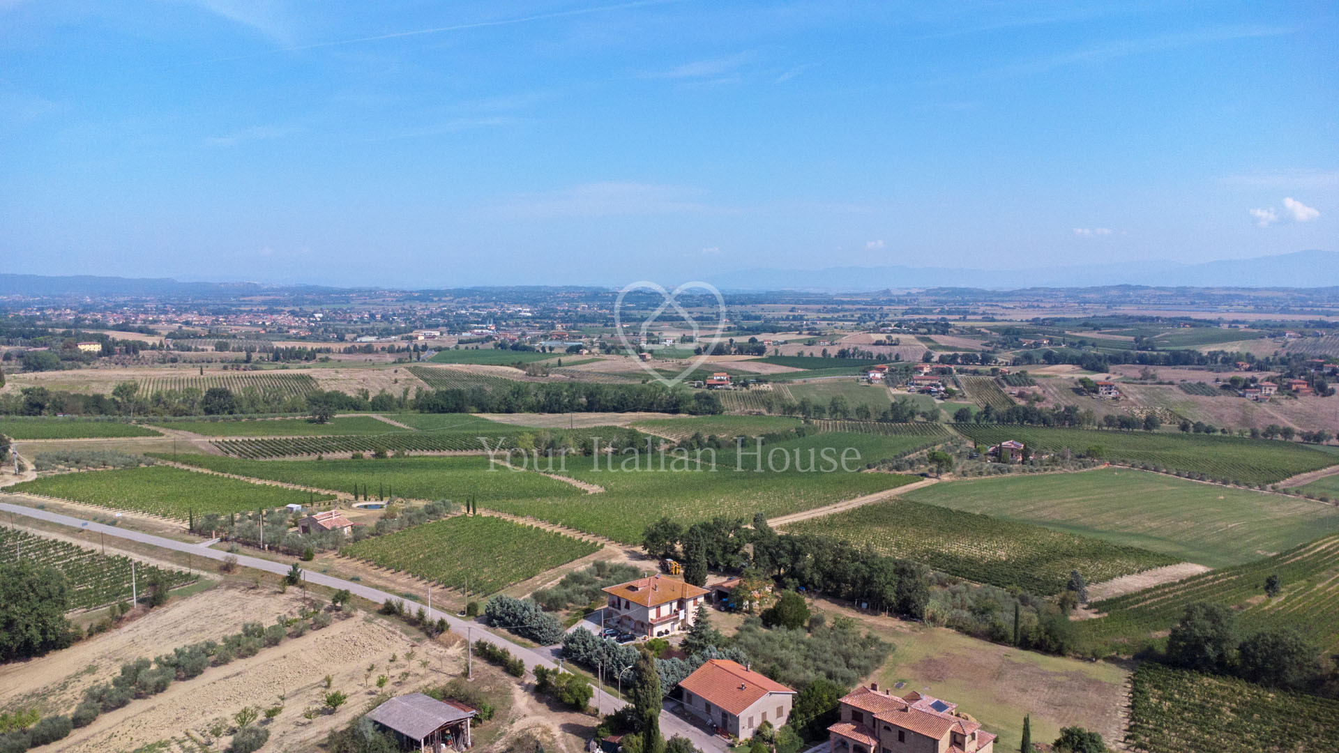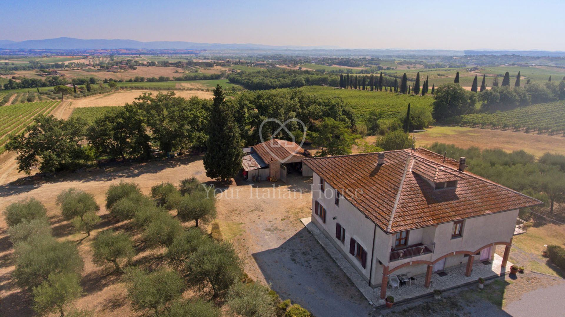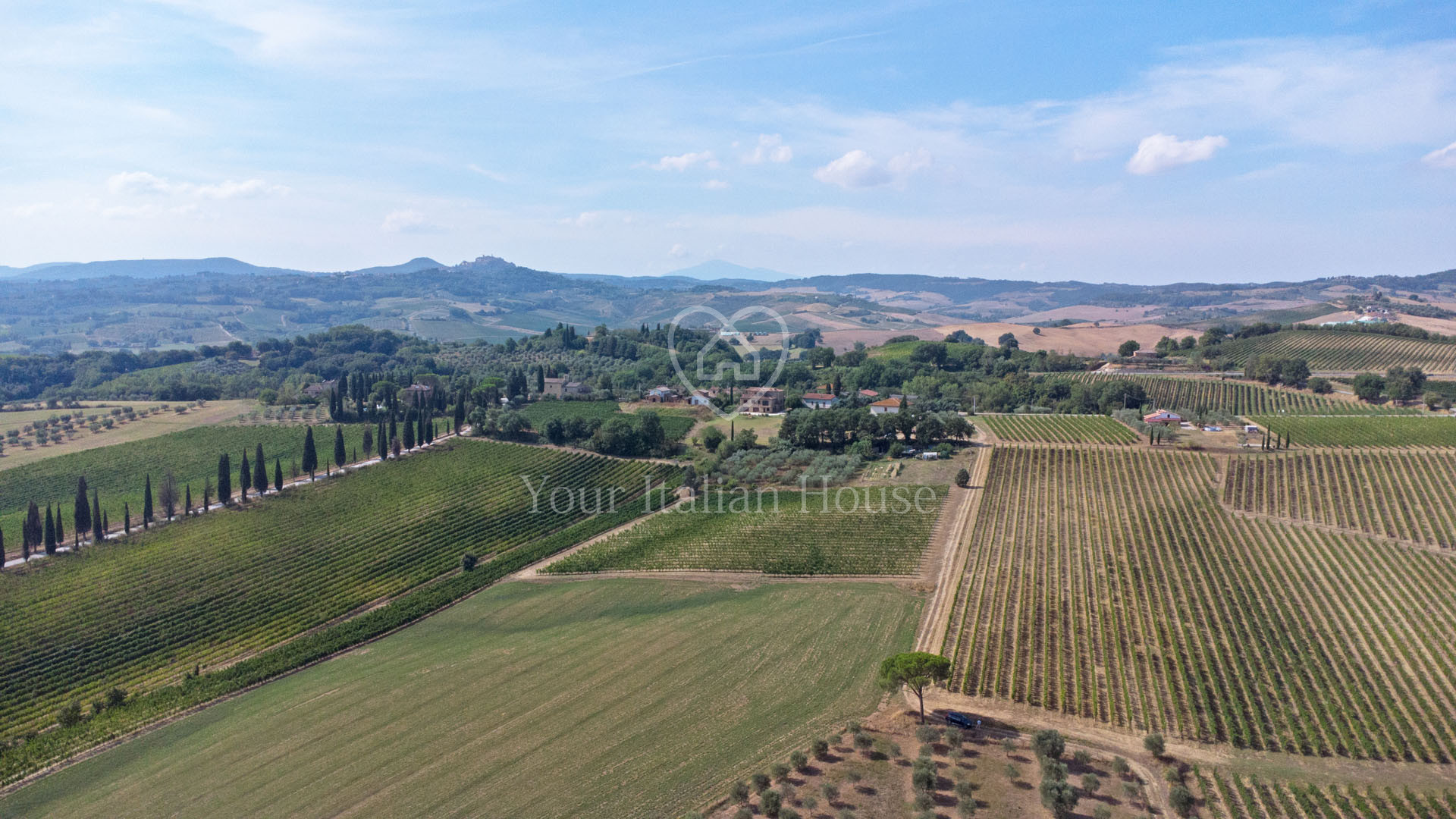 Het pand wordt gecompleteerd door 5.244 m² tuin met een olijfgaard van ongeveer 95 bomen en 4,7 hectare wijngaard waar Vino Nobile di Montepulciano, Rosso di Montepulciano, Chianti en IGT Toscano wijnen worden geproduceerd. Daarnaast is er de optie om een overname aan te vragen van de pacht voor aangrenzende wijngaarden (18.500 m²).