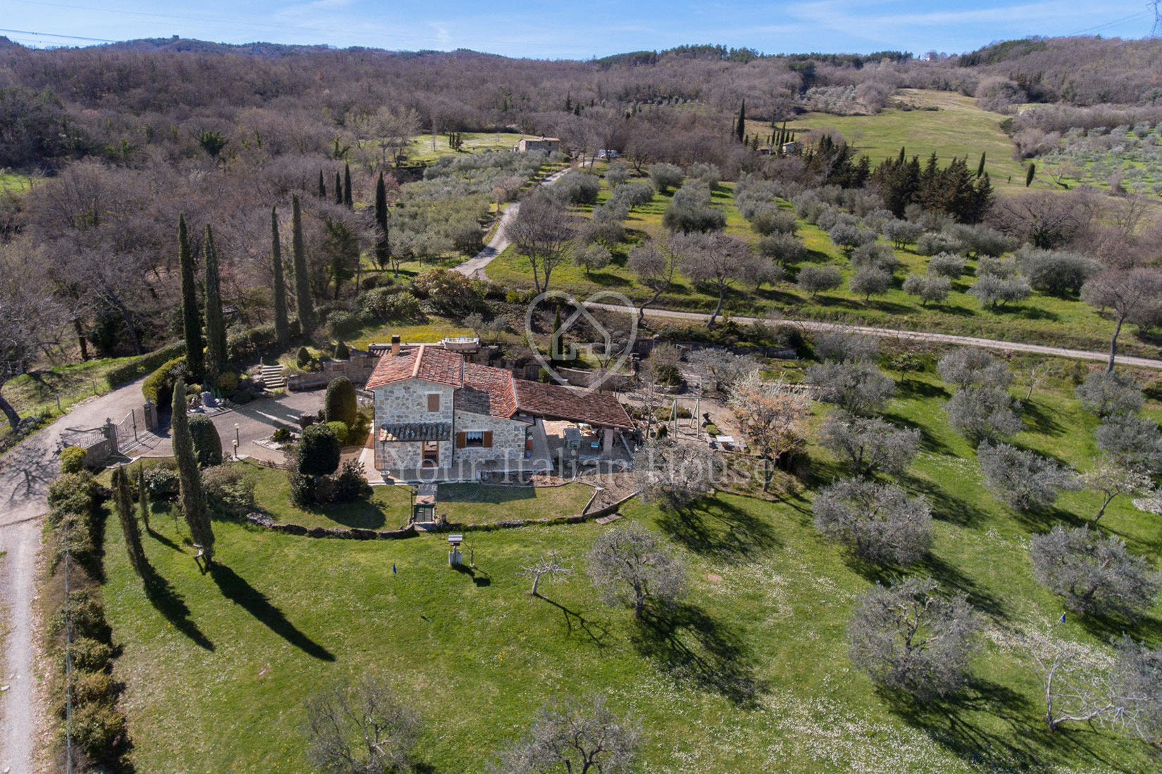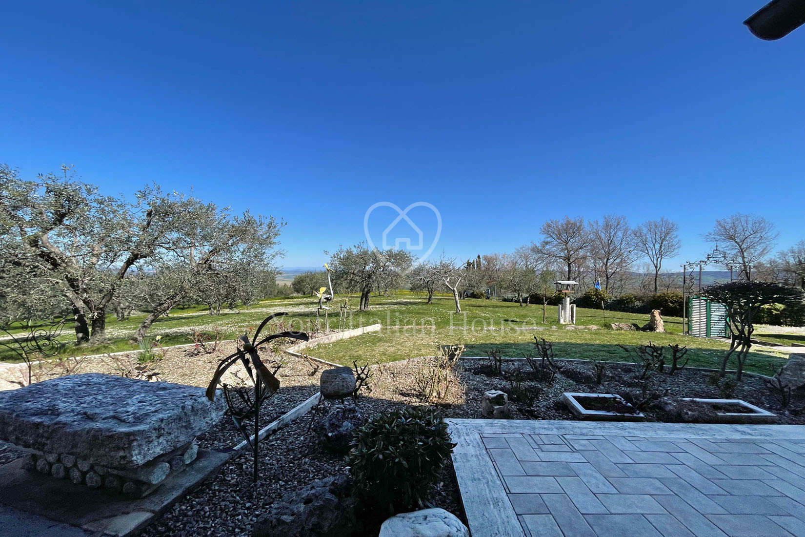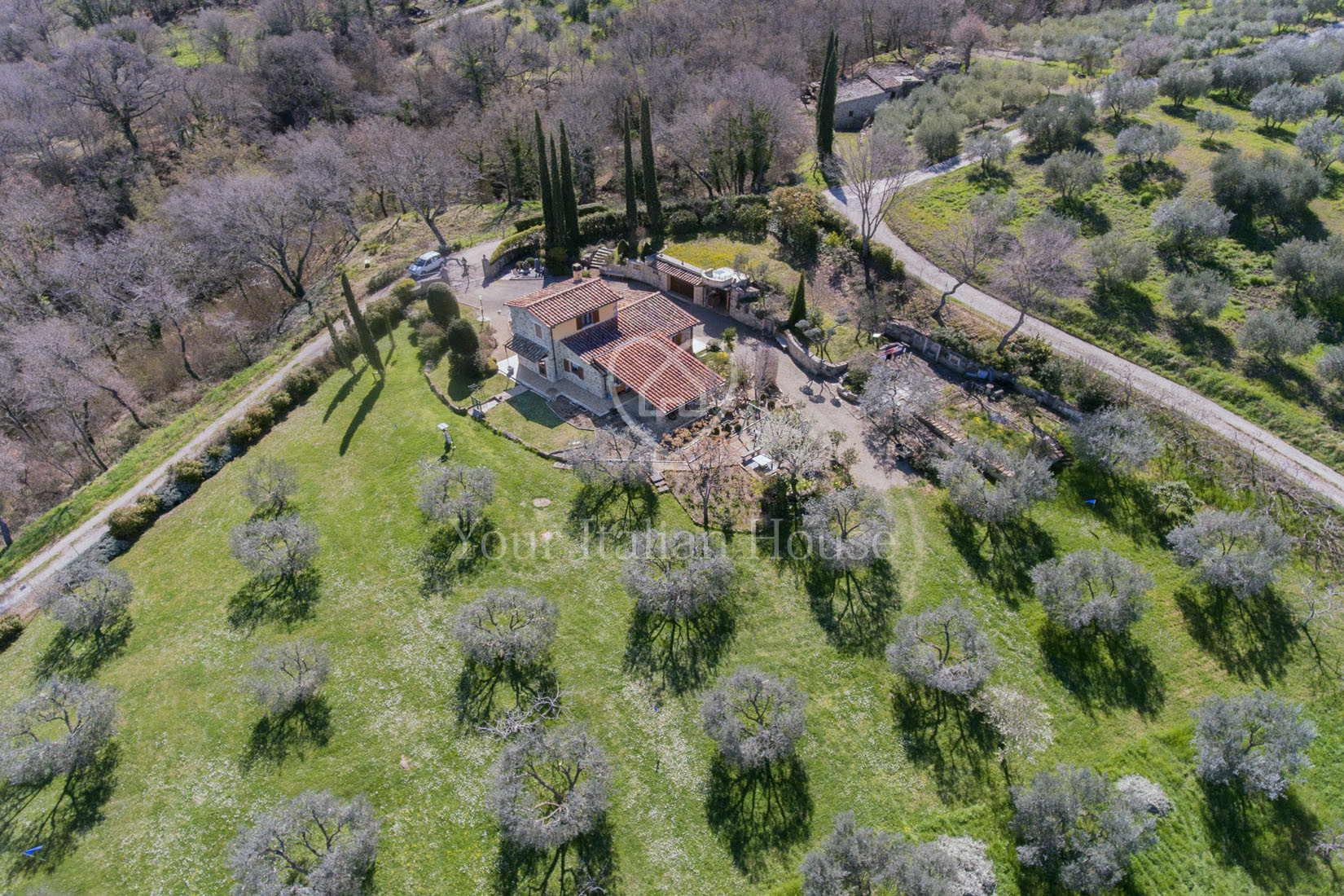 Het pand wordt verrijkt door de tuin van 1250 m², waar een mooi zwembad gebouwd kan worden, en door het stuk grond van 1,5 ha, waarvan een deel olijfgaard is.