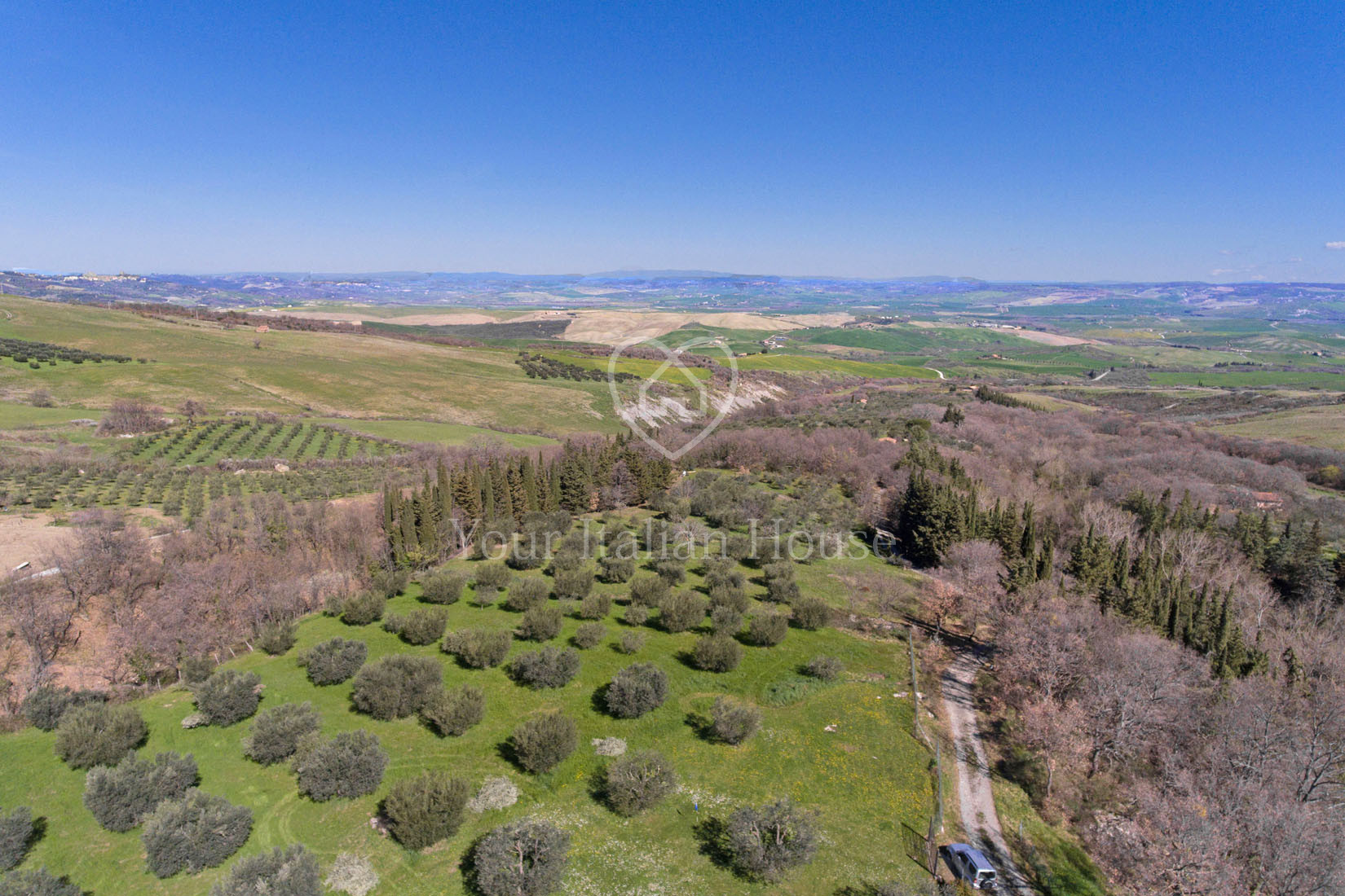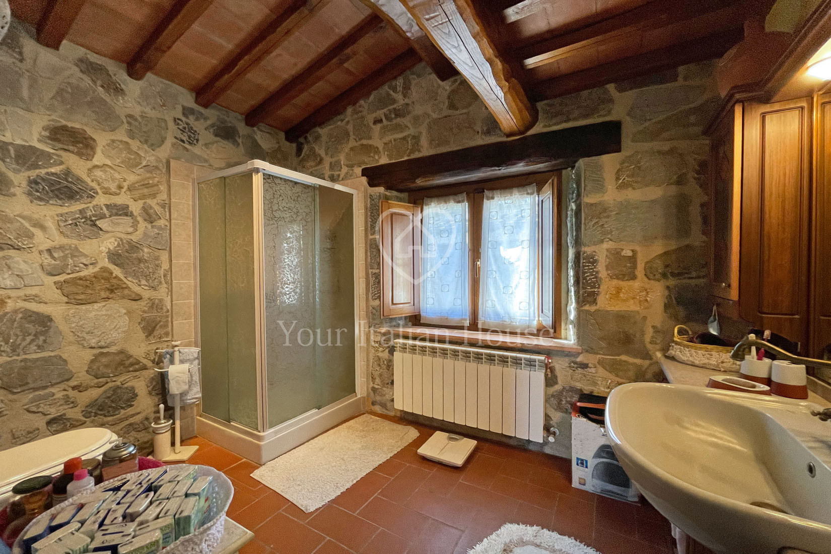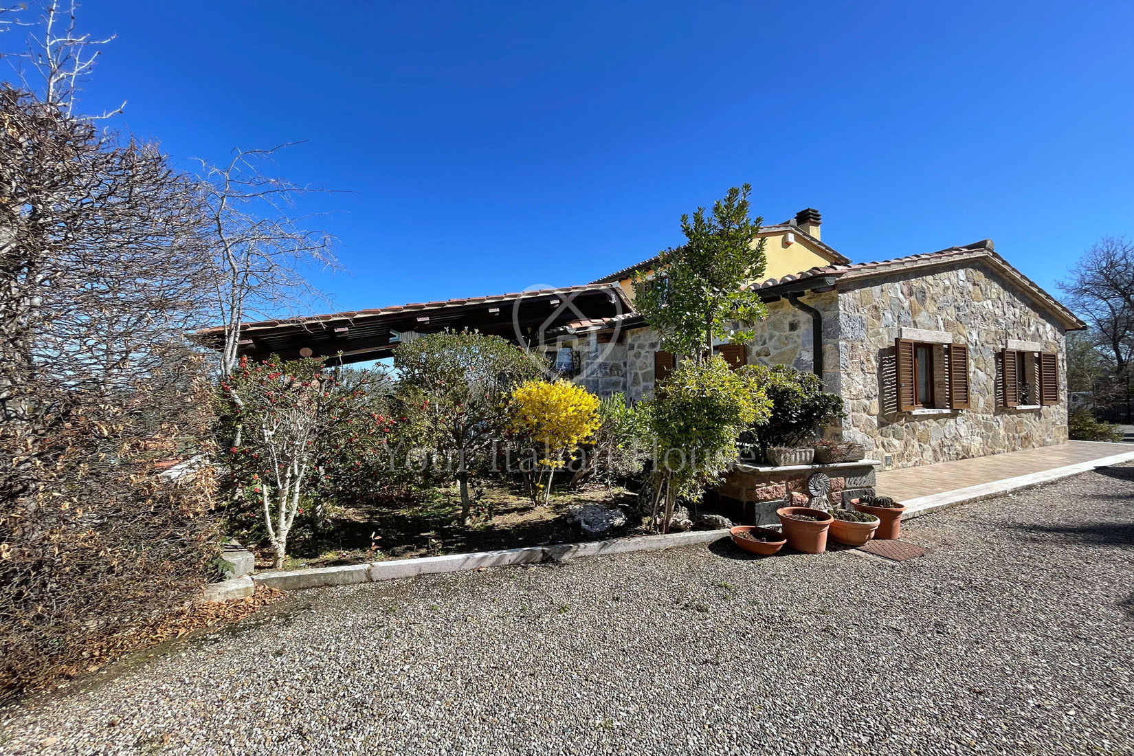 Het pand wordt verrijkt door de tuin van 1250 m², waar een mooi zwembad gebouwd kan worden, en door het stuk grond van 1,5 ha, waarvan een deel olijfgaard is.