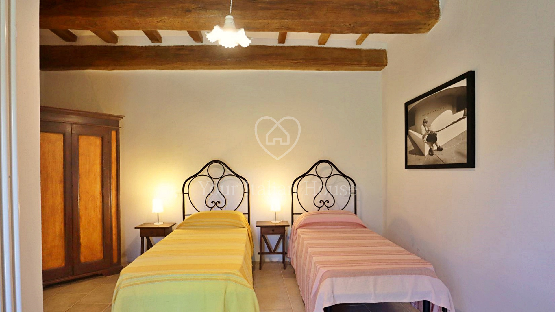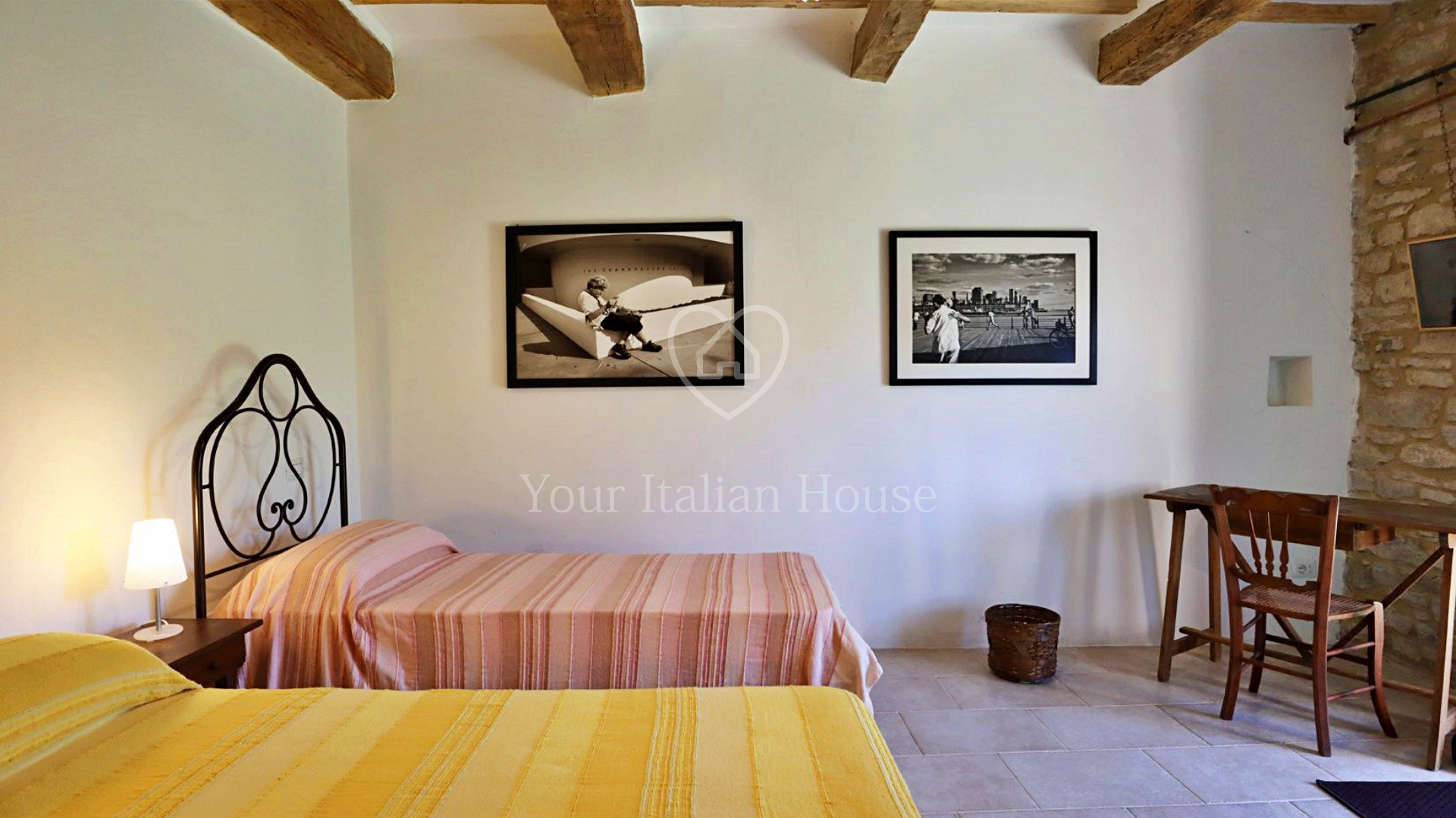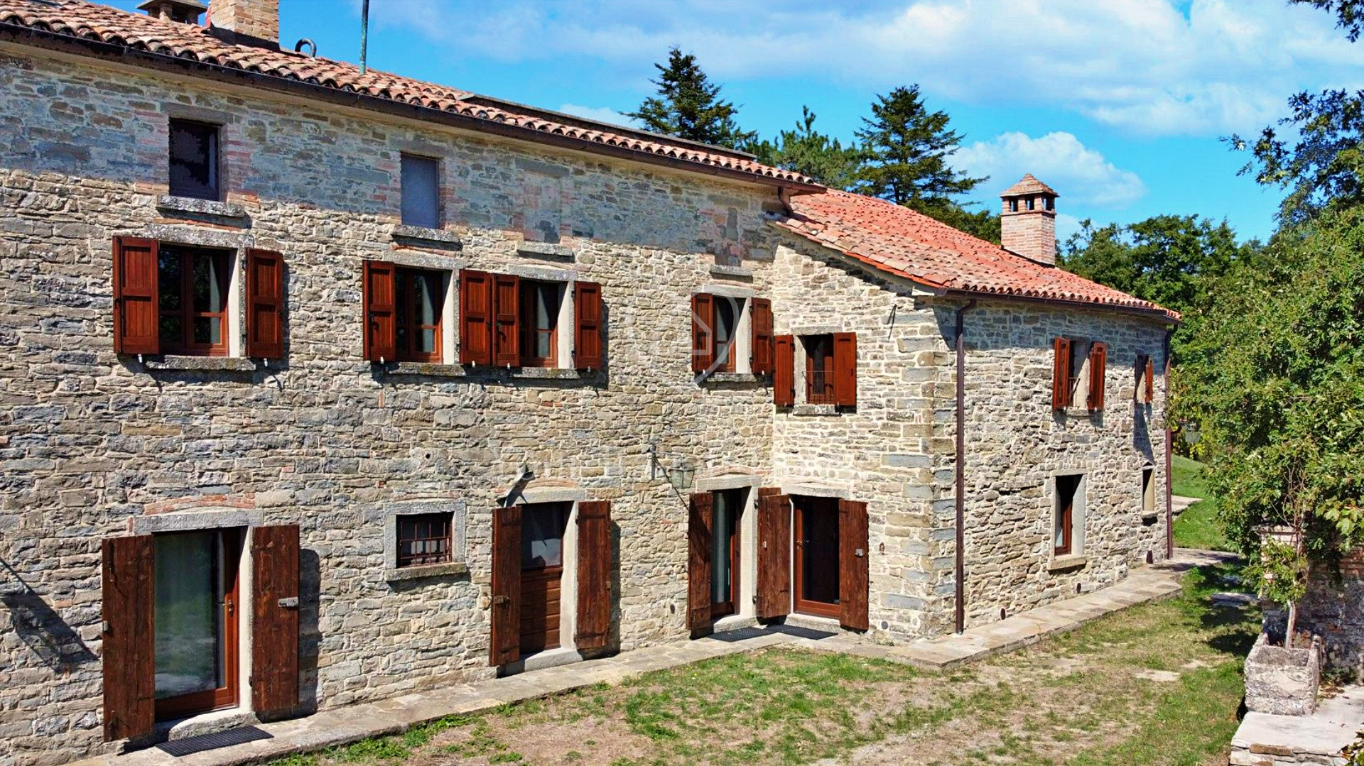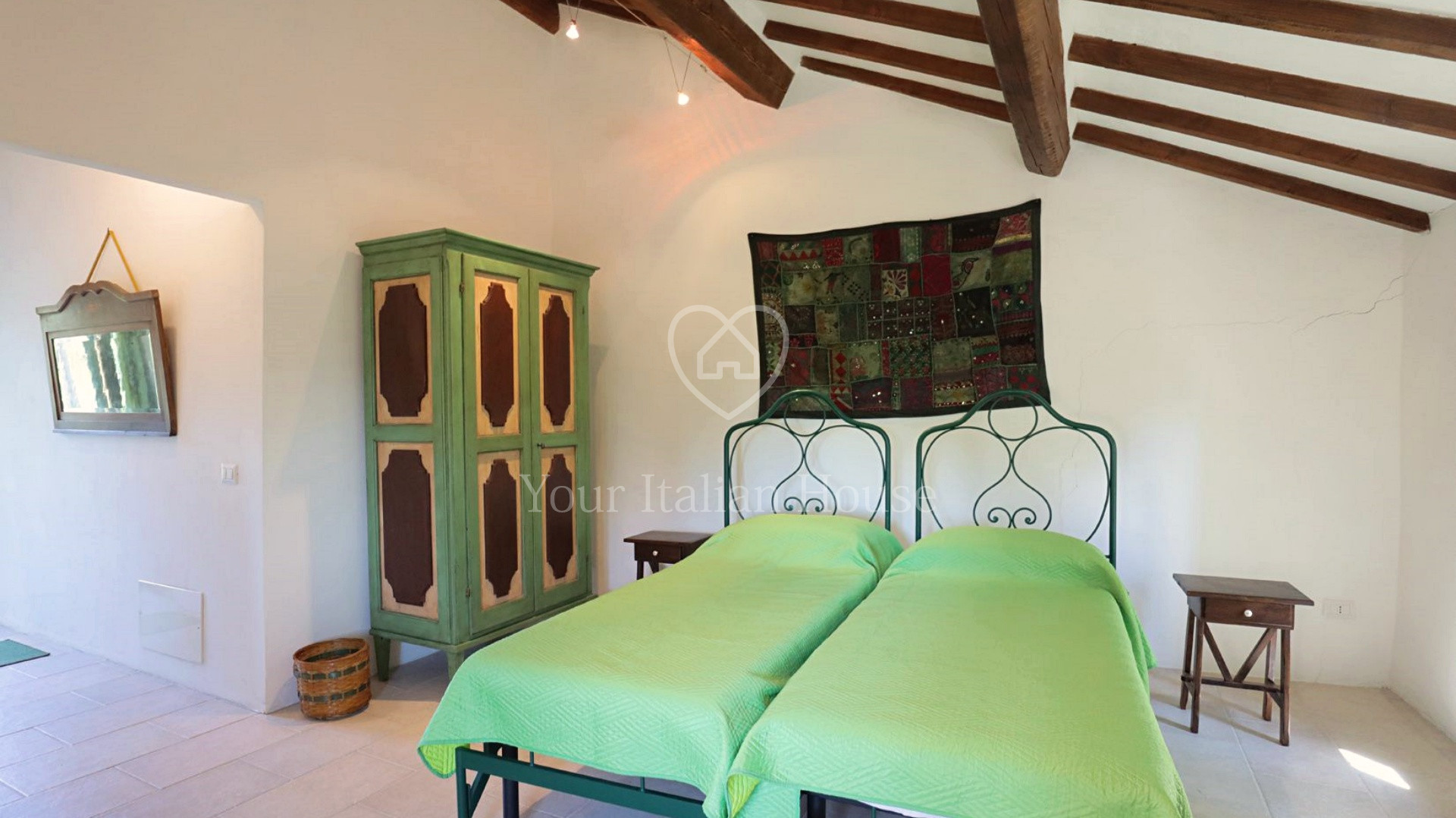 De prachtige boerderij is bereikbaar via een geasfalteerde weg. De locatie van het pand, oorspronkelijk gebouwd in de jaren 1600, biedt een panoramisch uitzicht over de Umbrische valleien en heuvels. Een groene zee van bossen kan worden waargenomen en gewaardeerd vanaf elk punt van het pand. De boerderij van 600 vierkante meter is afgewerkt met antieke materialen en ingericht met antiek. De omliggende tuin, volledig omheind en toegankelijk via twee poorten (waarvan één elektrisch), is 1.500 vierkante meter groot en herbergt een suggestief overloopzwembad. Het overige land bestaat uit een hectare bos. Op de begane grond zijn er 5 slaapkamers met badkamer en een onafhankelijk tweekamerappartement met badkamer, een grote kelder met een grote kamer, keuken, badkamer voor gehandicapten en eetkamer met steenoven; 2 stookruimtes, bewoonbare gereedschapsruimte met badkamer en wasruimte en een ruimte voor fitness. Op de eerste verdieping is er een woonkamer met balkon en panoramisch terras, studeerkamer/bibliotheek, badkamer, keuken, twee slaapkamers, badkamer met sauna, en een eetkamer met grote stenen open haard. Op de tweede verdieping is er een zolder met houten balken bestaande uit 2 slaapkamers, een grote tweepersoonsslaapkamer en een badkamer. Het is mogelijk om de oppervlakte van het pand uit te breiden met nog eens 100 overdekte vierkante meter.