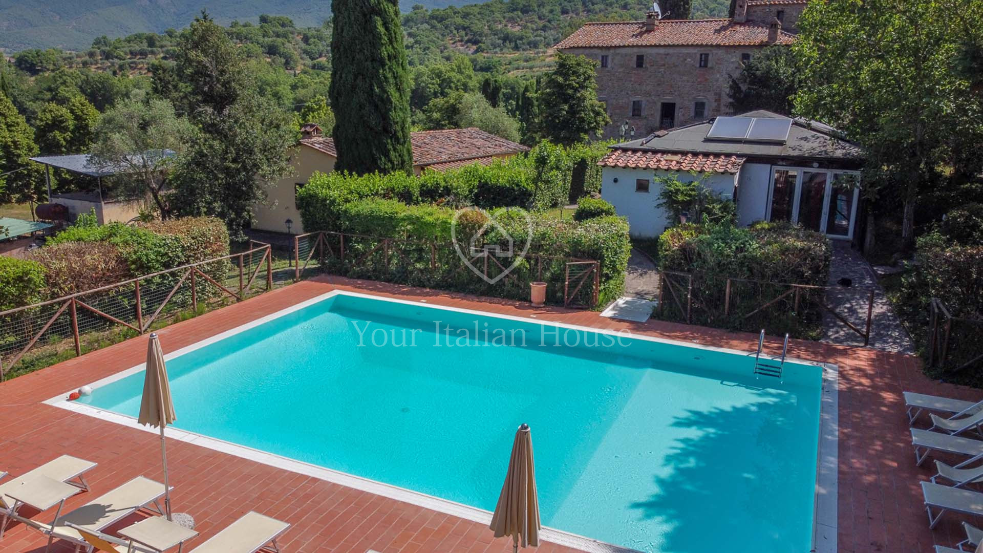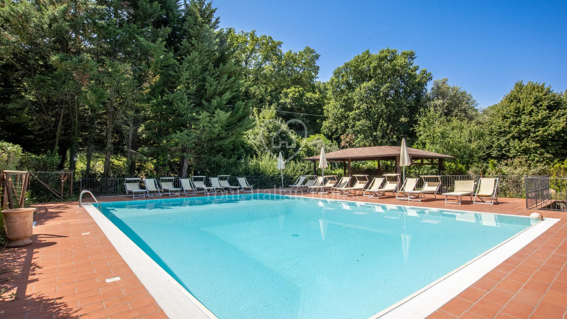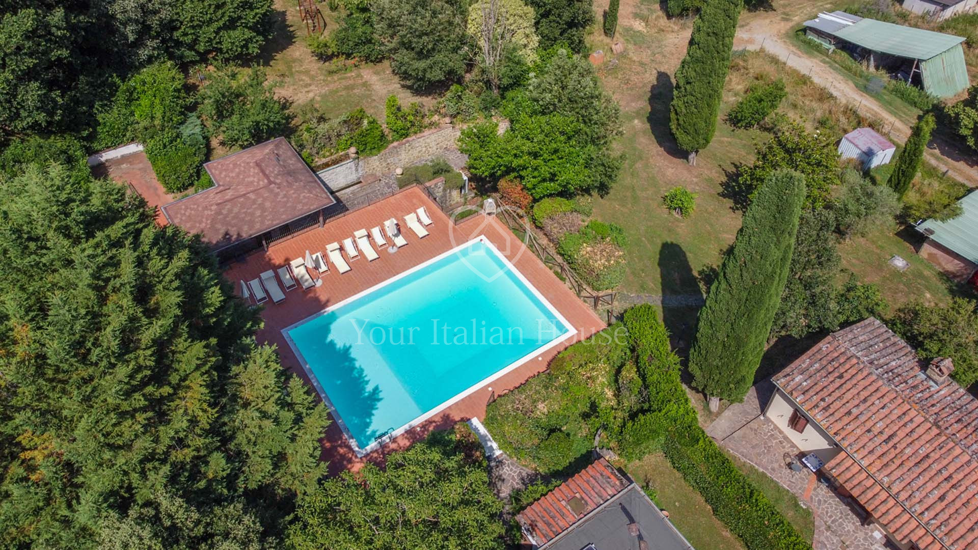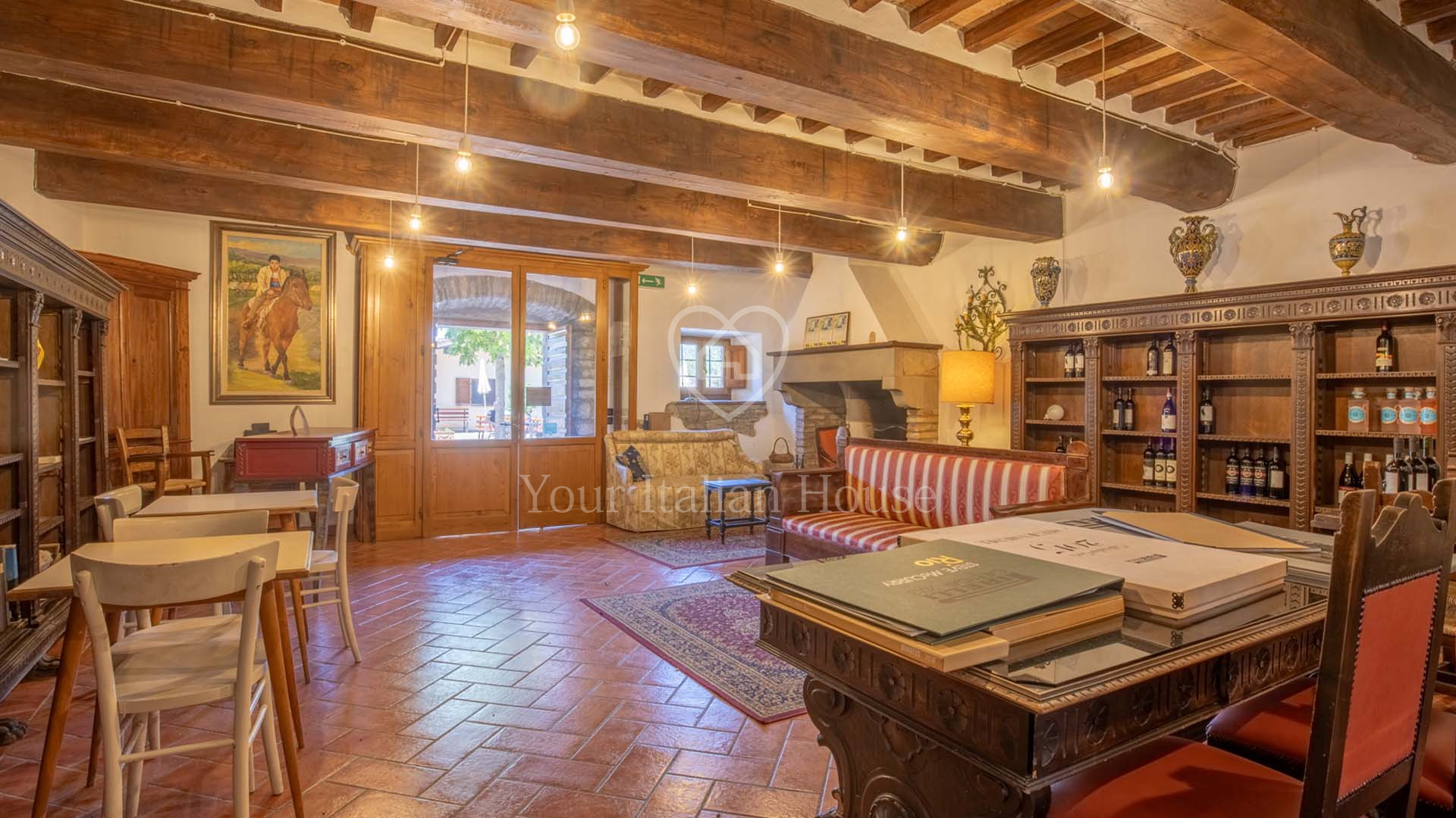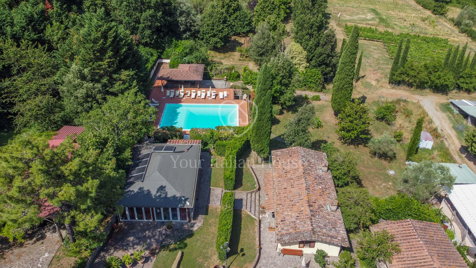 La Dimora Storica is een volledig gerenoveerd voormalig 16e eeuws klooster van ongeveer 1.100 m² en 10,2 hectare grond, waaronder een olijfgaard met 1.000 planten, een wijngaard van ongeveer 1,6 hectare in productie, kwekerij, bossen en weilanden. De majestueuze stenen hoofdboerderij heeft 3 verdiepingen. De vakkundig gerestaureerde historische residentie, een voormalig klooster uit de 16e eeuw, bestaat uit een woonkamer, keuken, suite met eigen badkamer en panoramisch uitzicht. Elke kamer is versierd met unieke fresco's. In het tweede deel bevinden zich de ontvangsthal, de uitgeruste keuken en het magazijn op de begane grond. Op de eerste verdieping bestaat het 0 km lange biologische agri-restaurant uit een appartement met drie slaapkamers, drie badkamers, wasruimte en een junior suite met badkamer. Er tegenover liggen twee villa's met in totaal zes appartementen, waarvan een voor gehandicapten, allemaal met keuken, woonkamer en slaapkamer met badkamer, voorzien van alle comfort. Om het pand compleet te maken is er een ontspannend wellnesscentrum met massageruimte, Turks bad, hydromassagedouche, badkamer en kleedkamer, evenals een uitstekend uitgeruste fitnessruimte voor het hele lichaam. Er is ook een magazijn voor conserven en een kelder gewijd aan de productie van producten van het bedrijf. Het eigendom ligt ondergedompeld in 12 hectare grond waarvan 4 hectare bebouwd is met olijfgaarden die een uitstekende Toscaanse olie produceren en 1,6 hectare wijngaarden waar de gewaardeerde rode wijn van het bedrijf geproduceerd wordt. Buiten vinden we een panoramisch zwembad en nog een overdekt zwembad met hydromassage. Het eigendom is omringd door een kinderspeelplaats, een park uitgerust voor work-out met een fitnessparcours en een landingsplaats voor helikopters. Het landgoed is verrijkt met grote terrassen en luifels bedekt met bloeiende blauwe regen, evenals een majestueuze pergola voor het buitenrestaurant met uniek uitzicht op het omringende platteland.