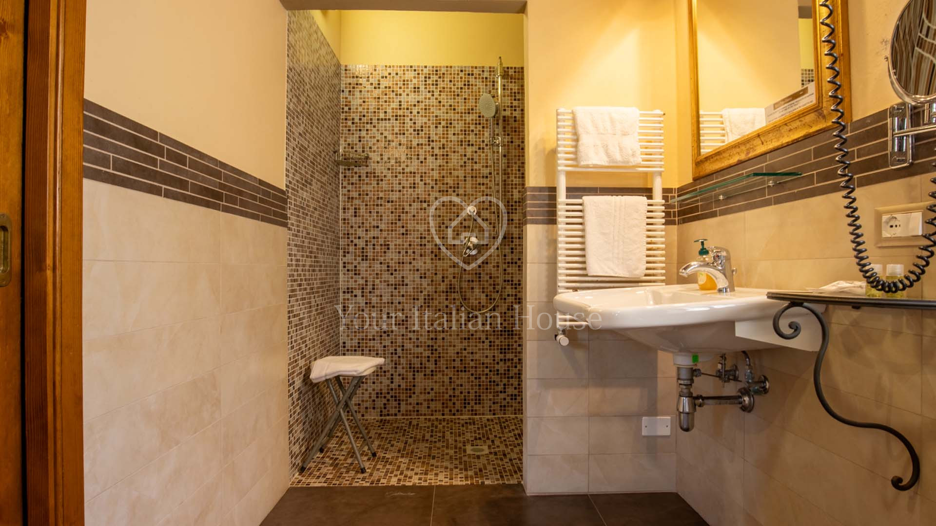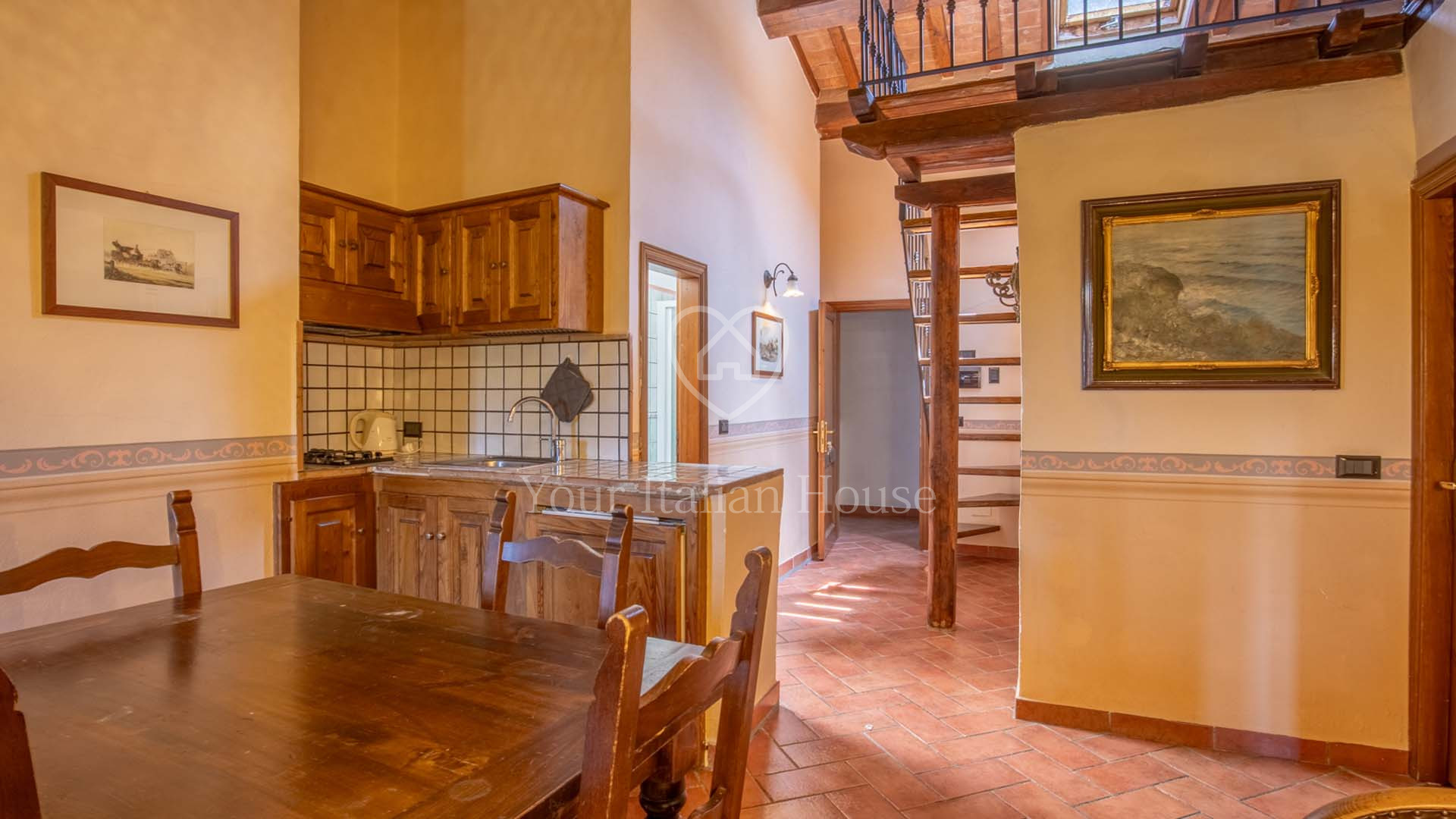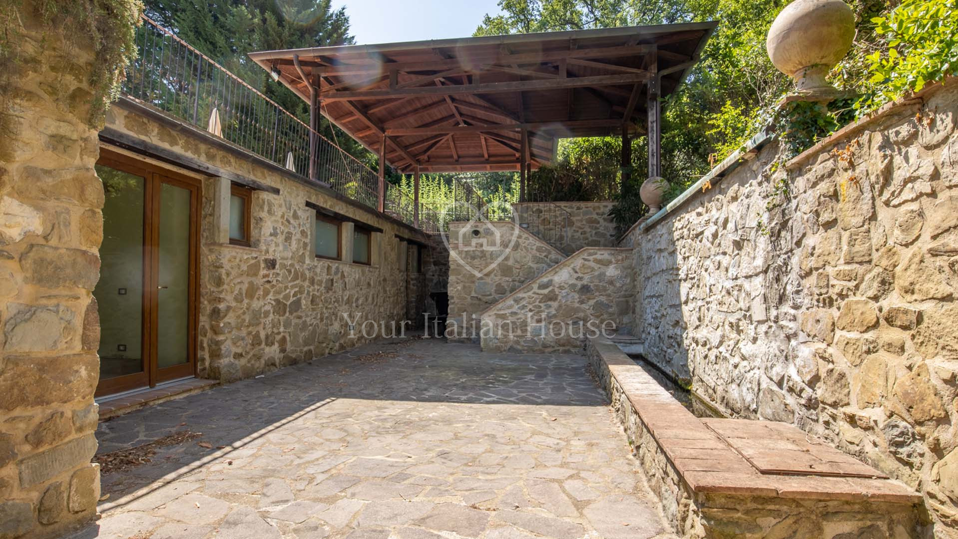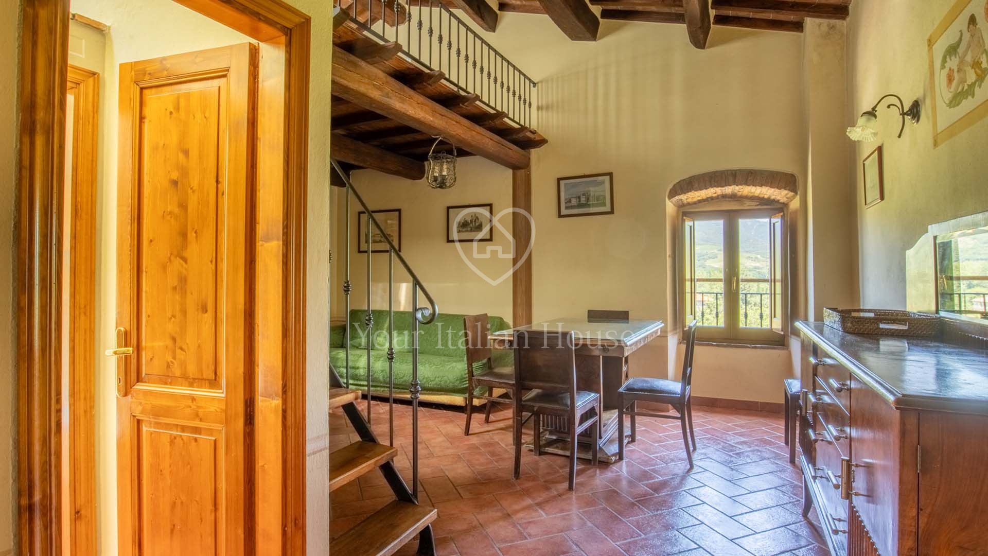 La Dimora Storica is een volledig gerenoveerd voormalig 16e eeuws klooster van ongeveer 1.100 m² en 10,2 hectare grond, waaronder een olijfgaard met 1.000 planten, een wijngaard van ongeveer 1,6 hectare in productie, kwekerij, bossen en weilanden. De majestueuze stenen hoofdboerderij heeft 3 verdiepingen. De vakkundig gerestaureerde historische residentie, een voormalig klooster uit de 16e eeuw, bestaat uit een woonkamer, keuken, suite met eigen badkamer en panoramisch uitzicht. Elke kamer is versierd met unieke fresco's. In het tweede deel bevinden zich de ontvangsthal, de uitgeruste keuken en het magazijn op de begane grond. Op de eerste verdieping bestaat het 0 km lange biologische agri-restaurant uit een appartement met drie slaapkamers, drie badkamers, wasruimte en een junior suite met badkamer. Er tegenover liggen twee villa's met in totaal zes appartementen, waarvan een voor gehandicapten, allemaal met keuken, woonkamer en slaapkamer met badkamer, voorzien van alle comfort. Om het pand compleet te maken is er een ontspannend wellnesscentrum met massageruimte, Turks bad, hydromassagedouche, badkamer en kleedkamer, evenals een uitstekend uitgeruste fitnessruimte voor het hele lichaam. Er is ook een magazijn voor conserven en een kelder gewijd aan de productie van producten van het bedrijf. Het eigendom ligt ondergedompeld in 12 hectare grond waarvan 4 hectare bebouwd is met olijfgaarden die een uitstekende Toscaanse olie produceren en 1,6 hectare wijngaarden waar de gewaardeerde rode wijn van het bedrijf geproduceerd wordt. Buiten vinden we een panoramisch zwembad en nog een overdekt zwembad met hydromassage. Het eigendom is omringd door een kinderspeelplaats, een park uitgerust voor work-out met een fitnessparcours en een landingsplaats voor helikopters. Het landgoed is verrijkt met grote terrassen en luifels bedekt met bloeiende blauwe regen, evenals een majestueuze pergola voor het buitenrestaurant met uniek uitzicht op het omringende platteland.