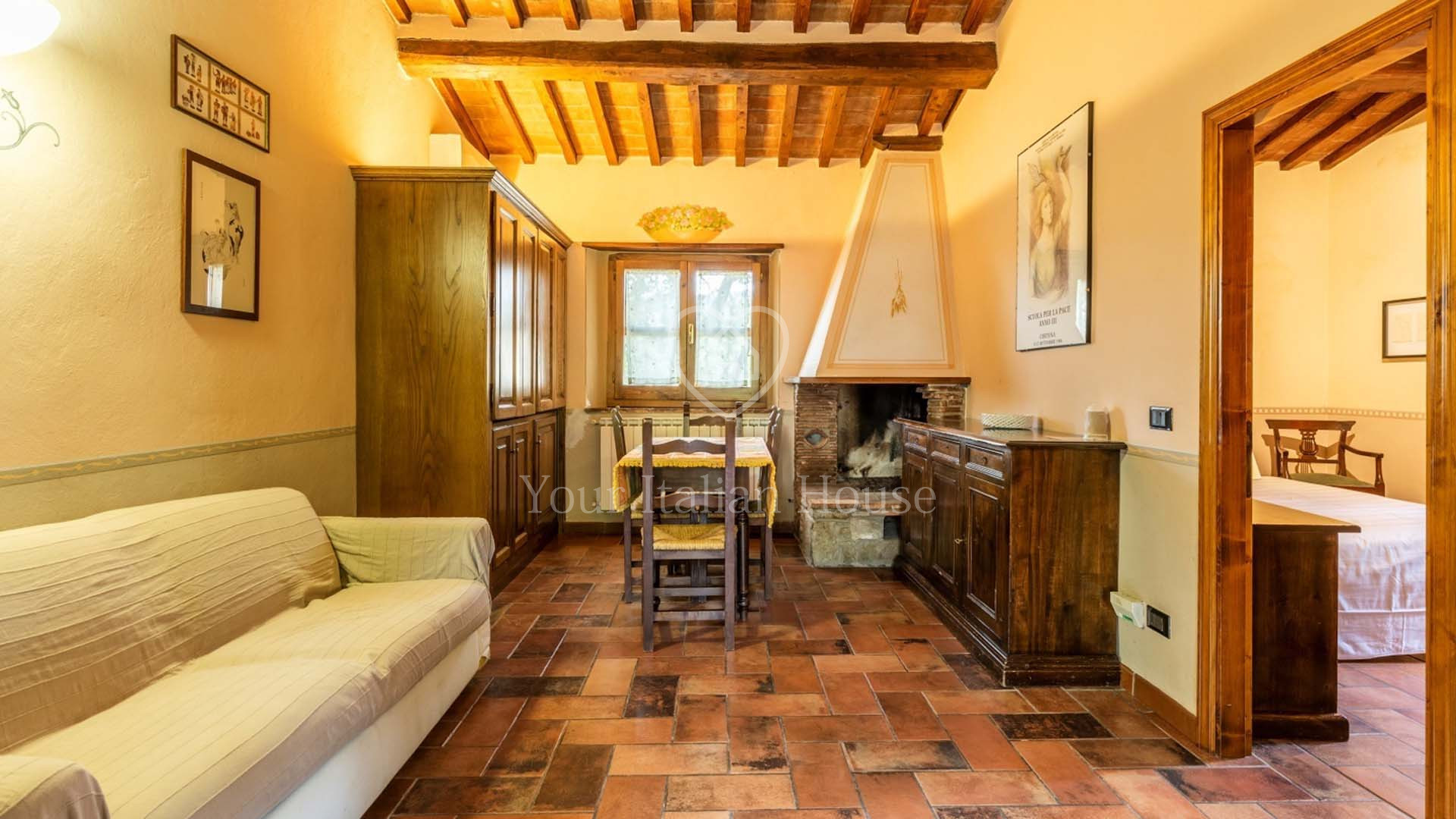 Het huis ligt op de grens tussen Umbrië en Toscane, op slechts een paar kilometer van Cetona en Castiglione del Lago. Genesteld tussen de heuvels, gecultiveerde velden en olijfgaarden met zeer suggestief uitzicht, kan het pand worden bereikt via 1,5 km perfect onderhouden geasfalteerde weg. De dichtstbijzijnde stad met voorzieningen ligt op 3 km afstand. Gelegen halverwege Rome (180 km) en Florence (100 km) met het grote voordeel dat het gemakkelijk bereikbaar is vanaf de snelweg A1 (E35) Florence - Rome.