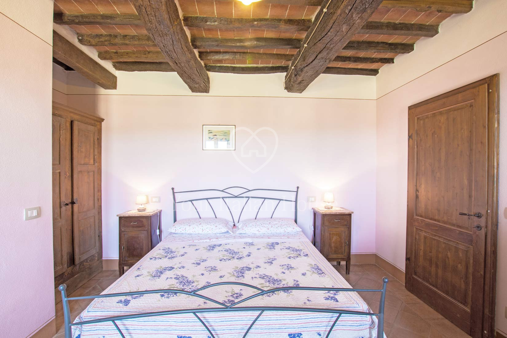 Te koop een betoverend landhuisgedeelte van 160 m², compleet met 4 slaapkamers, 3 badkamers, een prachtige tuin van 8.000 m² met zwembad en een adembenemend uitzicht op Cortona.
