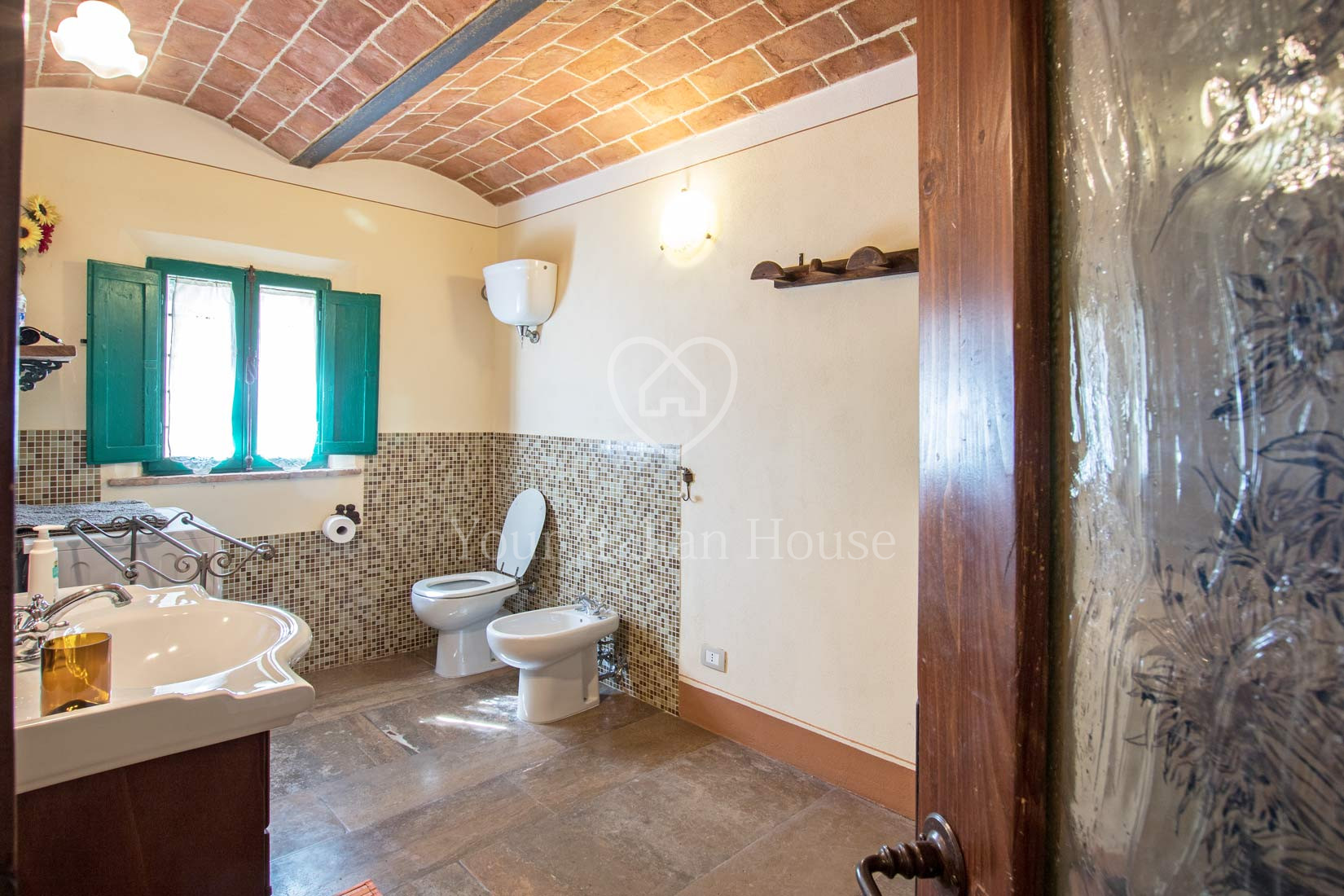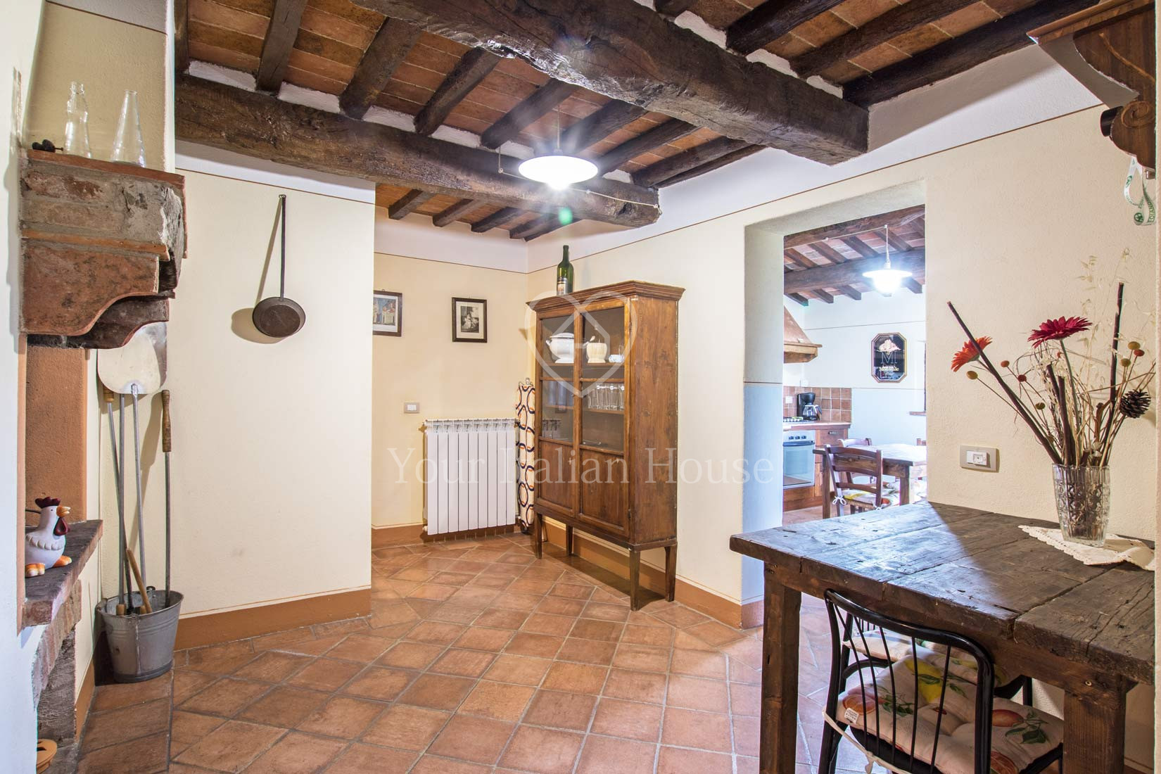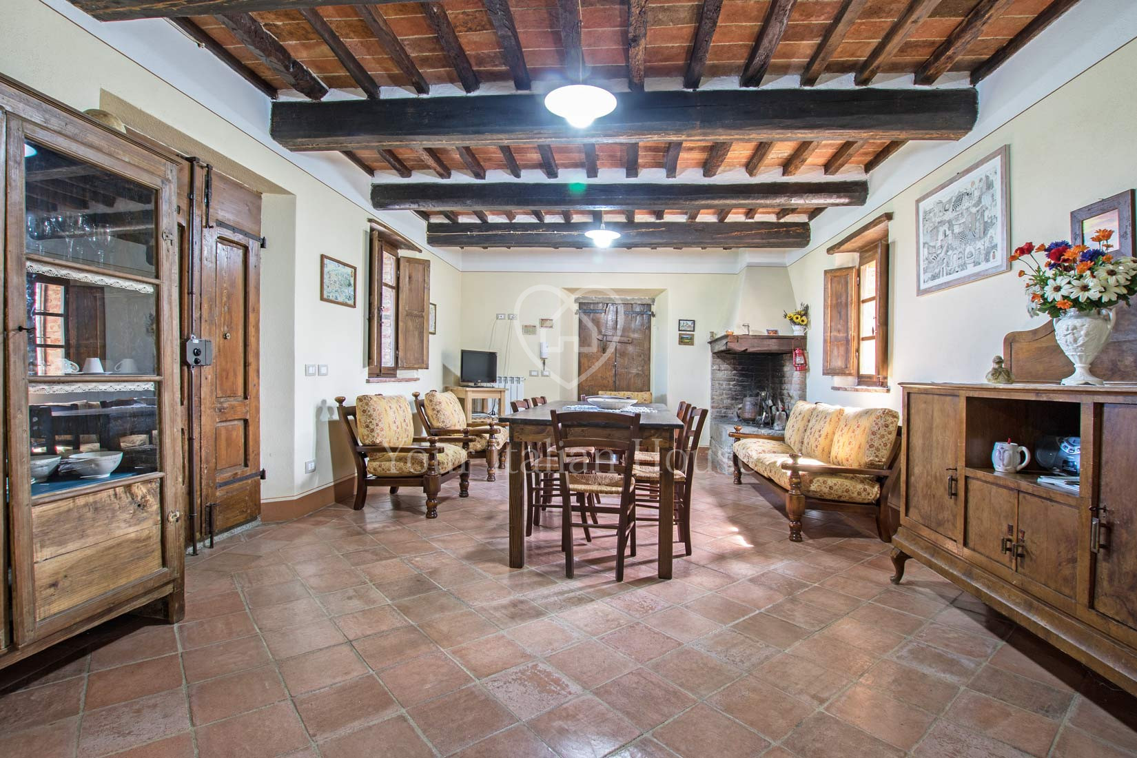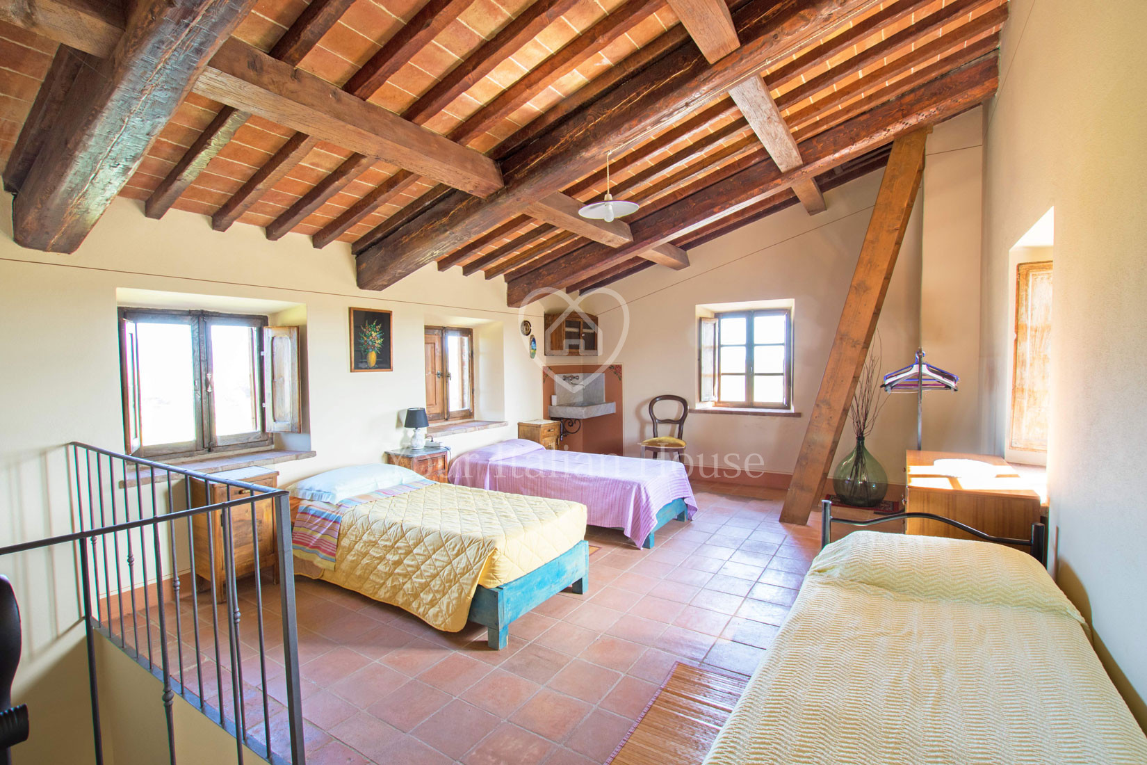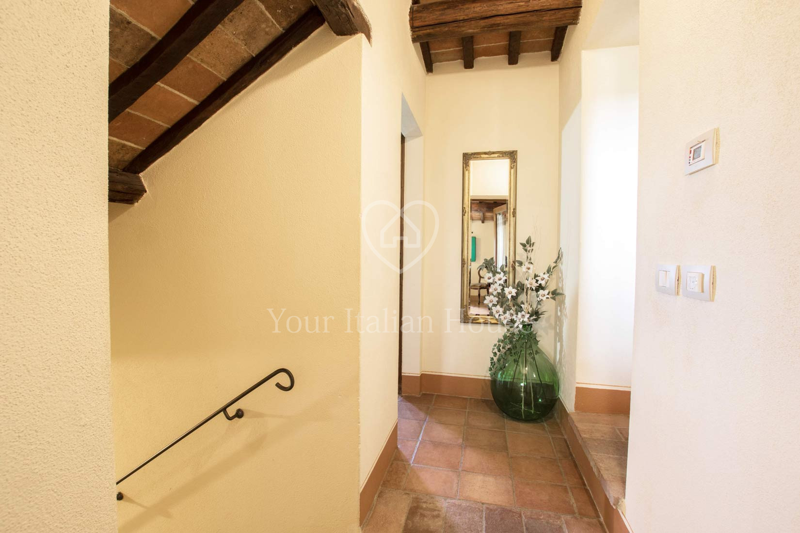 Buiten wordt het pand omringd door 6666 vierkante meter grond, verrijkt met een paar olijfbomen, een laan met cipressen die naar de toren leidt en een schitterend overloopzwembad dat een schitterende achtergrond vormt voor het landschap van Cortona.