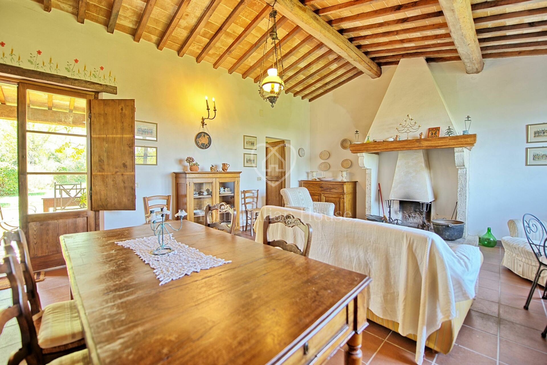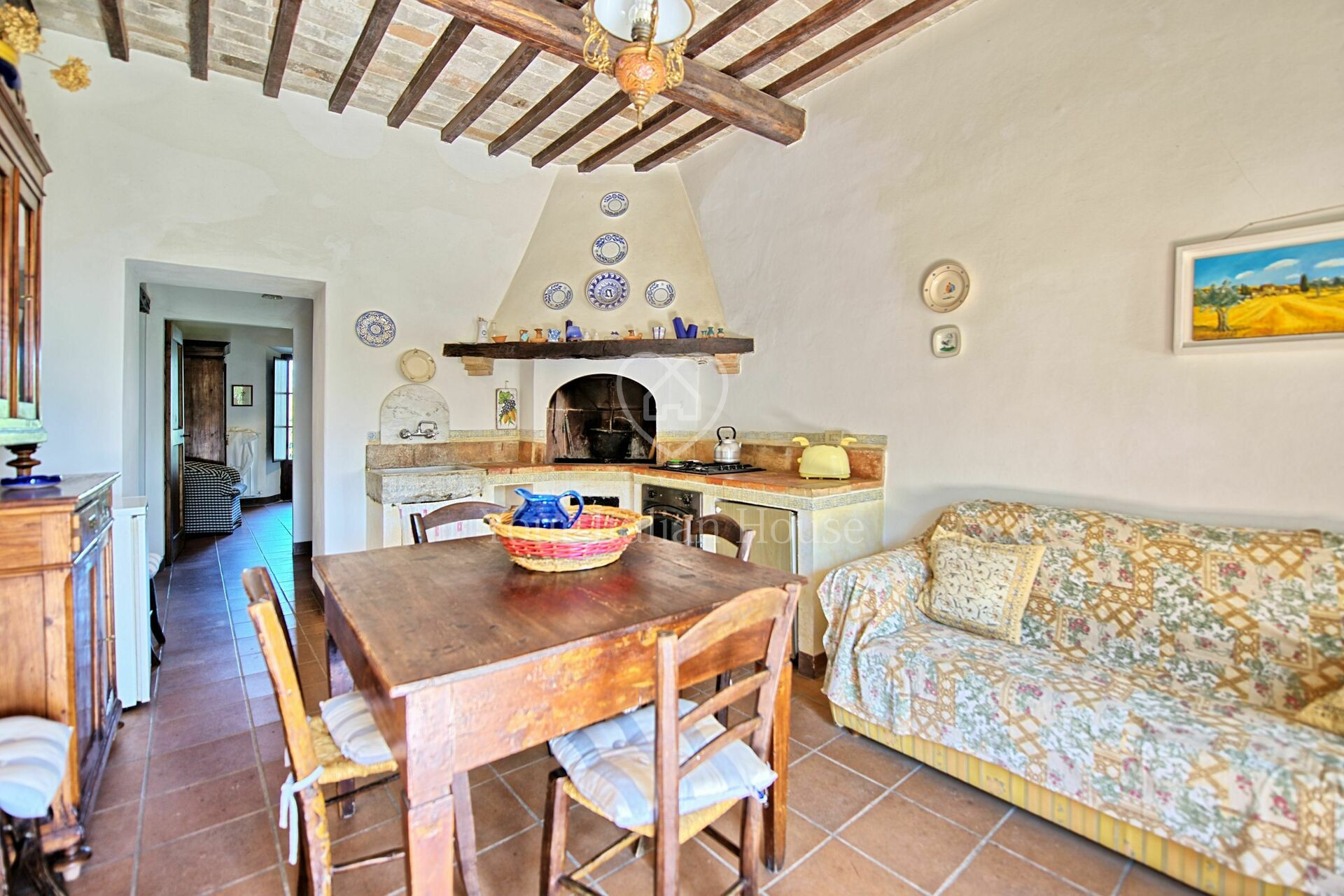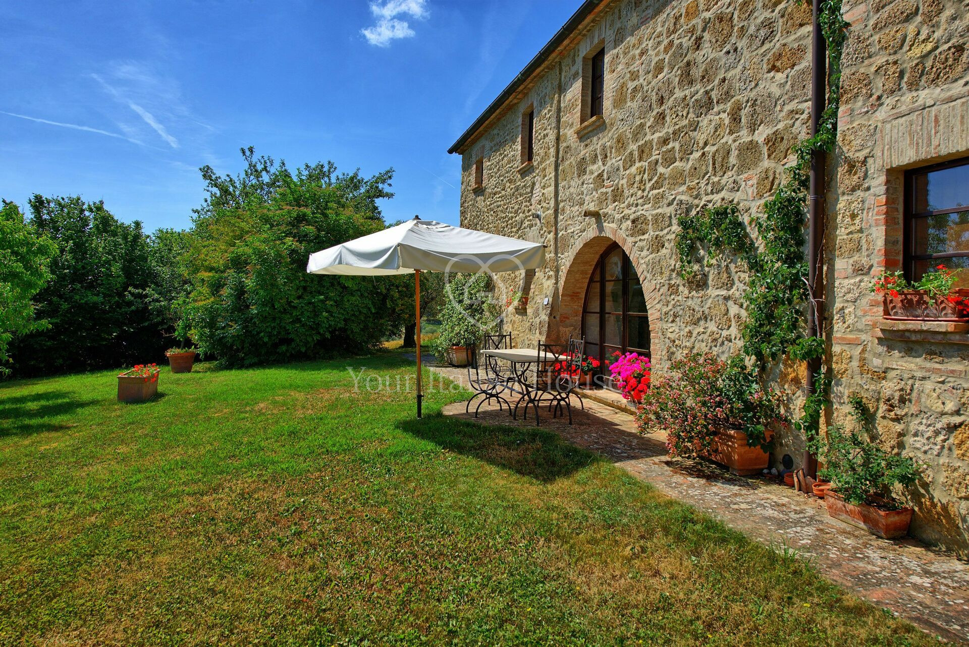In een van de meest karakteristieke scenario's van Toscane, tussen Val d'Orcia (Unesco Werelderfgoed) en Val di Chiana, in een unieke ecologische, historische en culturele context, staat deze prachtige gerenoveerde boerderij verdeeld in 5 comfortabele appartementen en direct bewoonbaar. Het pand bestaat uit een hoofdboerderij van ongeveer 350 m² en een aangrenzend bijgebouw van ongeveer 100 m². Het eerste appartement van ongeveer 60 vierkante meter is verdeeld in een prachtige en lichte woonkamer met eethoek, 2 tweepersoonsslaapkamers, een badkamer met douche en een karakteristiek overdekt terras voorzien van een barbecue. Het tweede appartement, ook van 60 vierkante meter, bestaat uit een keuken, een grote woonkamer met open haard en eethoek, 2 tweepersoonsslaapkamers en 1 badkamer met douche. Het derde appartement met dezelfde grootte als de vorige is verdeeld in een keuken, een woonkamer met open haard en eethoek, 2 tweepersoonsslaapkamers en 2 badkamers. In het vierde appartement, van ongeveer 55 vierkante meter, vinden we een hal met eethoek en kitchenette, 2 tweepersoonsslaapkamers en een badkamer met douche. Het vijfde en laatste appartement is 90 vierkante meter, toegankelijk via een entree die leidt naar een lichte en ruime eethoek waar je gezellige momenten kunt doorbrengen met familie en vrienden, een keuken, 2 tweepersoonsslaapkamers en 2 functionele badkamers met douche. De woning wordt gecompleteerd door een tuin van ongeveer 20 hectare verfraaid met een schitterend panoramisch zwembad vanwaar je een prachtige blik kunt werpen op het omliggende platteland. Het landhuis dateert uit de 18e eeuw en is in de jaren 90 verfijnd gerestaureerd, geinspireerd door de waarden van de toscaanse traditie.