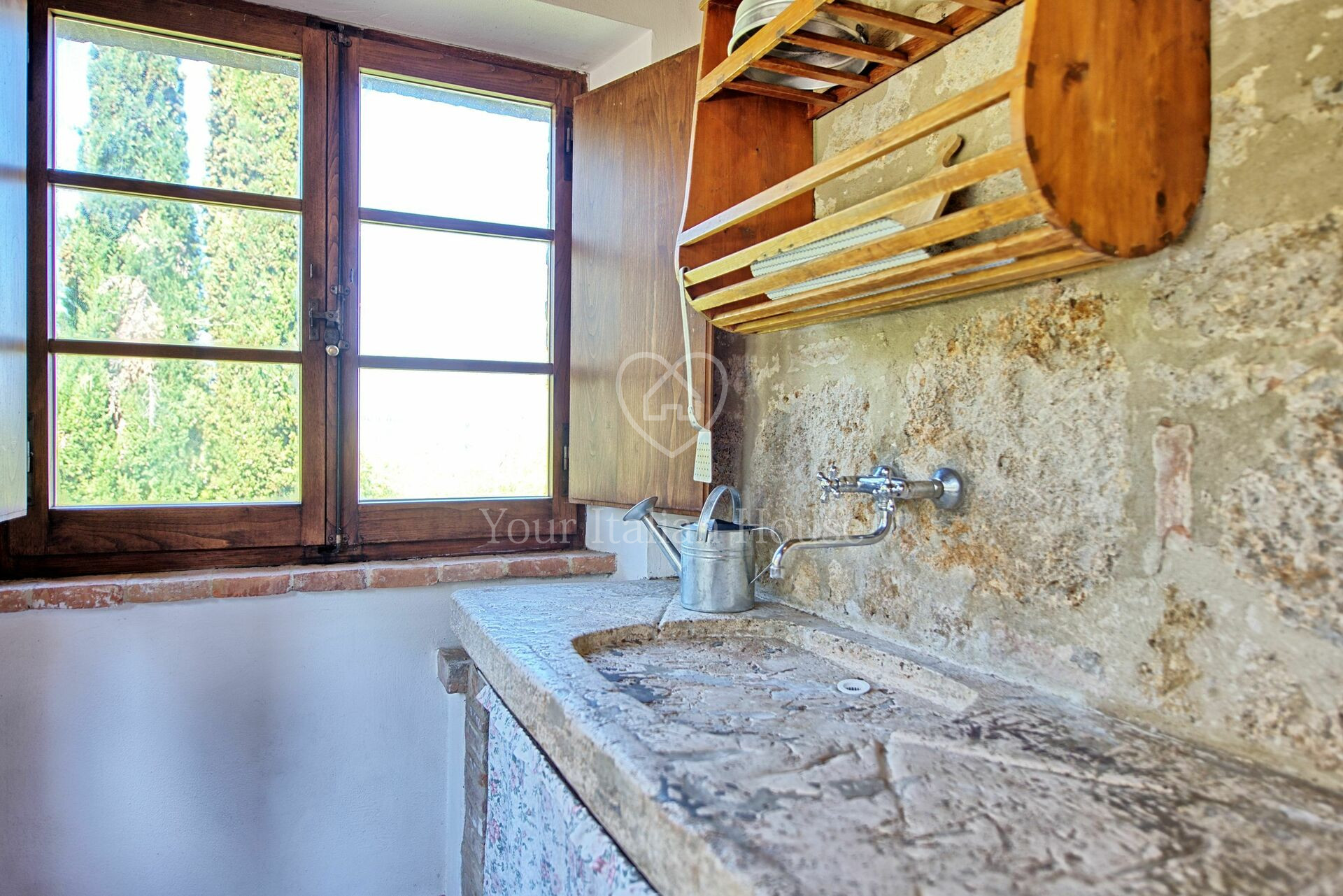 Het landhuis is in 1994 met veel zorg en oog voor detail gerestaureerd. De gevels zijn gemaakt van zichtbare stenen, typisch voor de landelijke toscaanse huizen, terwijl de vloeren in terracotta zijn en de plafonds bestaan uit zichtbare houten balken en tegels.