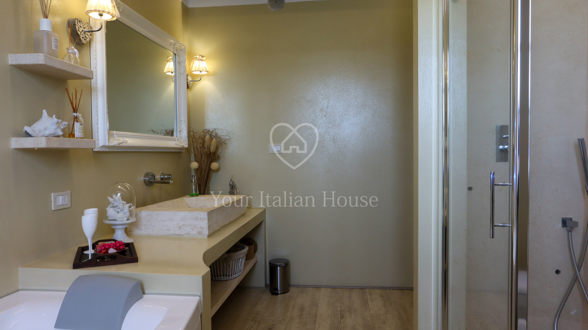 De gevels zijn van zichtbare steen en pleisterwerk, de onderste verdiepingen zijn van baksteen en cement, de vloeren van twee appartementen zijn van hout en de andere twee van porcellanato. De ramen hebben dubbele beglazing en de luiken zijn van hout.