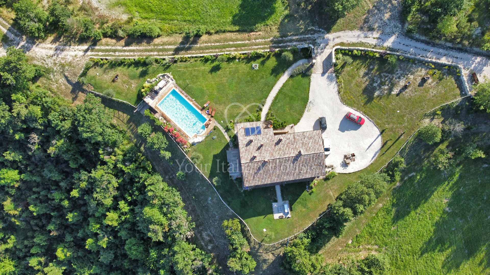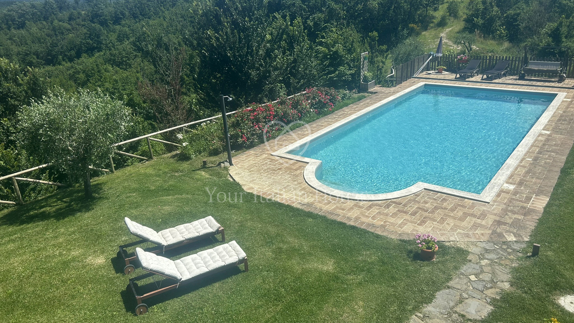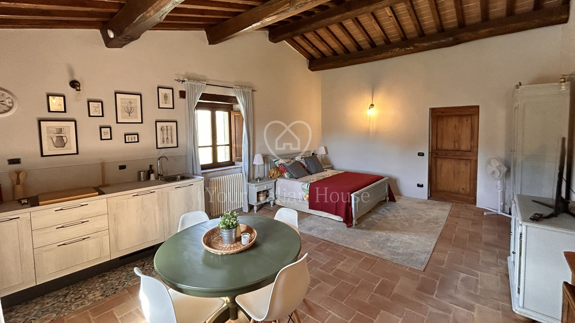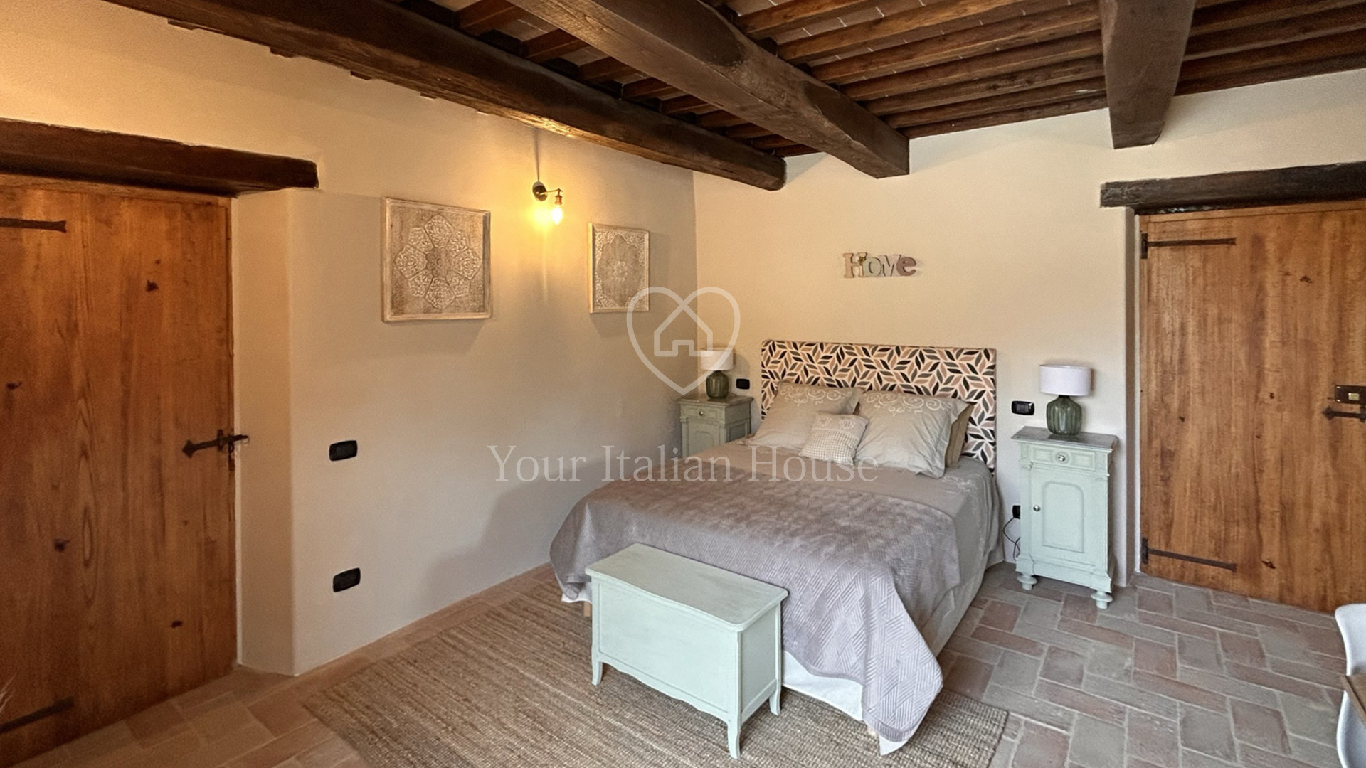 In een ongerepte, groene omgeving van Umbrië is deze prachtige boerderij zorgvuldig gerenoveerd, waarbij de traditionele bouwkenmerken behouden zijn gebleven. Het gebouw strekt zich uit over twee verdiepingen, waar op de eerste verschillende ingangen zijn, evenals een mooie en ruime keuken met een mooie bijkeuken, twee eet-woonkamers en een badkamer met ingang van buitenaf. Ook is er op de begane grond - aan de andere kant van de keuken - een slaapkamer met een badkamer, perfect toegankelijk voor mindervaliden. Via de interne trap kom je op de eerste verdieping waar zich een lees-/speelhoek en vier slaapkamers met drie badkamers bevinden. Deze verdieping is ook bereikbaar via een buitentrap die direct naar de tuin leidt, waar zich een prachtig zwembad bevindt. Het object omvat ongeveer 2 hectare grond met de mogelijkheid om extra grond bij te kopen.