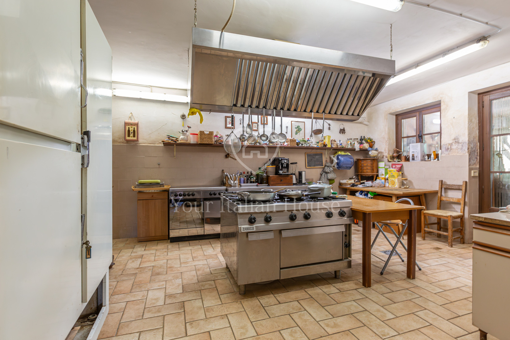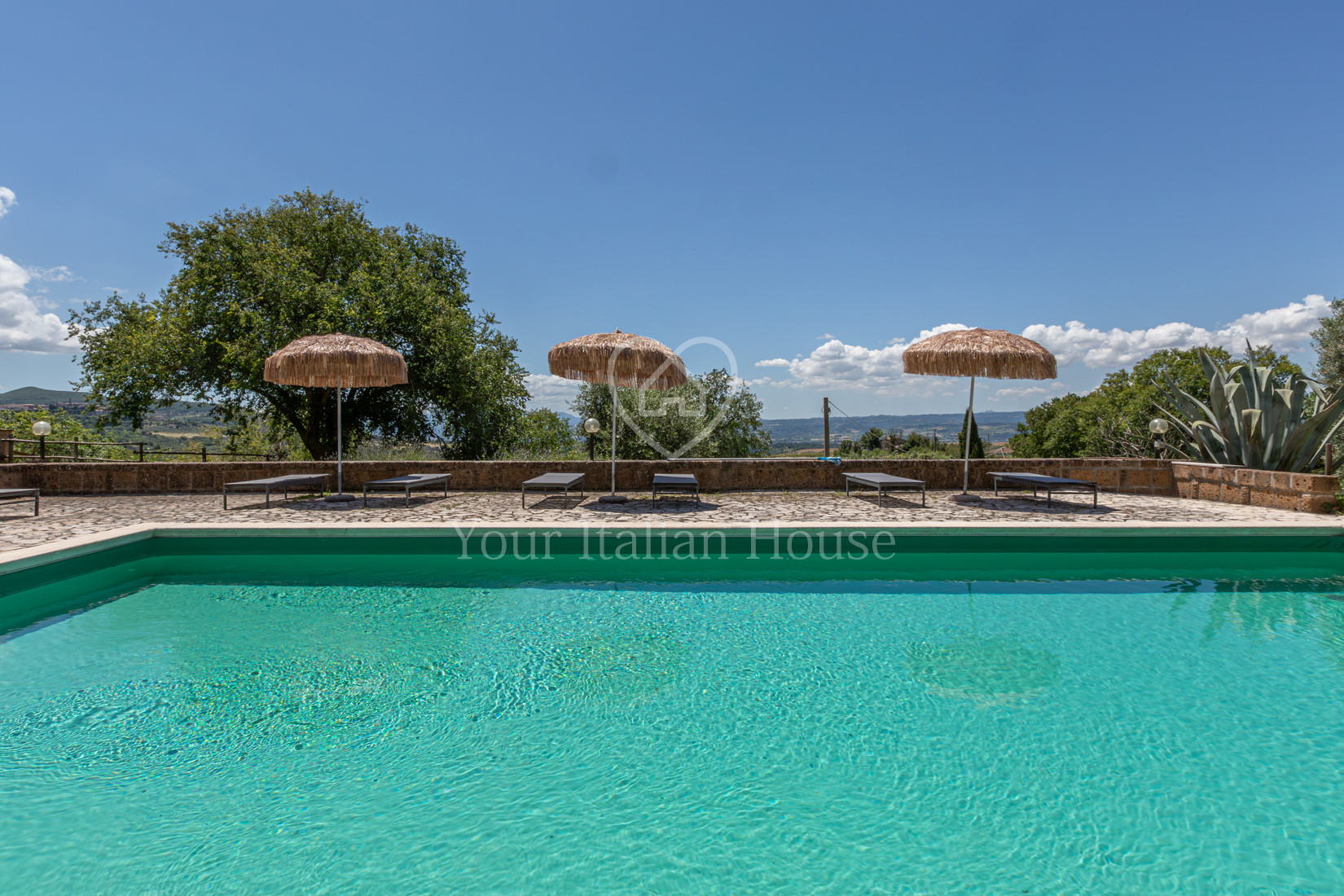 2 boerderijen met zwembad en 4,4 hectare waarvan meer dan 3 hectare wijngaarden, 100 olijfbomen en akkerbouw. Binnenplaats met ruime parkeergelegenheid en tuin met buitenverlichting en fonteinen. De tuin heeft een prachtig groen gebied met bomen van verschillende soorten zoals 20 meter hoge cipressen, eiken, iepen, olijfbomen, prumus esdoorns en wat fruit...die de 2 boerderijen en het zwembad omlijsten. Er is buitenverlichting, fonteinen binnen het omheinde terrein en 2 waterputten. Prachtig zwembad van 12×6 h1,50 tussen de twee boerderijen met groot solarium, gazebo van 5×4 en een keldermagazijn van ongeveer 80 m², waar zich een technische ruimte voor zuivering bevindt. 2 boerderijen momenteel in gebruik als woonboerderij, omheind, met 2 automatische oprijpoorten en handmatige poort + videocamera's. Het gebied is echter beschermd met een jachtverbod. De eerste boerderij met restaurantzaal is ongeveer 350 m² + veranda's voor 155 m², geheel gerenoveerd met anti-seismische normen in 1994 en bestaat uit een begane grond met: grote eetkamer met zichtbare muren, professionele keuken, bijkeuken, 2 badkamers; op de bovenverdieping zijn er 6 slaapkamers + 6 badkamers, + 1 semi-bewoonbare zolder h.165. De tweede boerderij met appartementen is ongeveer 500 m² volledig gerenoveerd in 2005 en waar we op de begane grond 3 appartementen vinden: 1 driekamerappartement met 1 tweepersoonsslaapkamer en 1 éénpersoonsslaapkamer, woonkamer met kitchenette en 1 badkamer; 2 appartementen met: 1 tweepersoonsslaapkamer, 1 badkamer, 1 woonkamer met kitchenette. Dan hebben we nog 3 tweepersoonskamers met eigen badkamer, waarvan één voor gehandicapten + nog een berging met dienstkeuken, bijkeuken en wc. Voorportaal. Adembenemend panorama met het heuvelachtige profiel tot aan Toscane richting de berg Amiata en Cetona en aan de andere kant Lazio met Montefiascone, de Cimini bergen van Viterbo... daarachter uitzicht op de Umbrische vallei en Orvieto met de zonsondergang. Inbegrepen in de verkoop Sheet 6, Plot 157 sub 4-5, Plot 187, 189, 216, 155 totaal 4,4ha. Dan kun je Sheet 3, Plot 1, 2, 5 6 totaal 12,3ha kopen voor €250.000. Dit alles om een bedrijf te hebben met meer dan 9 hectare wijngaarden waarvan ongeveer 3 hectare Orvieto Classico witte druiven en ongeveer 6 hectare rode, Merlot, Cabernet en Sangiovese druiven + olijfgaard van 100 planten, een truffelgaard in een hakbos van 5000m2 en akkerland van ongeveer 6 hectare.