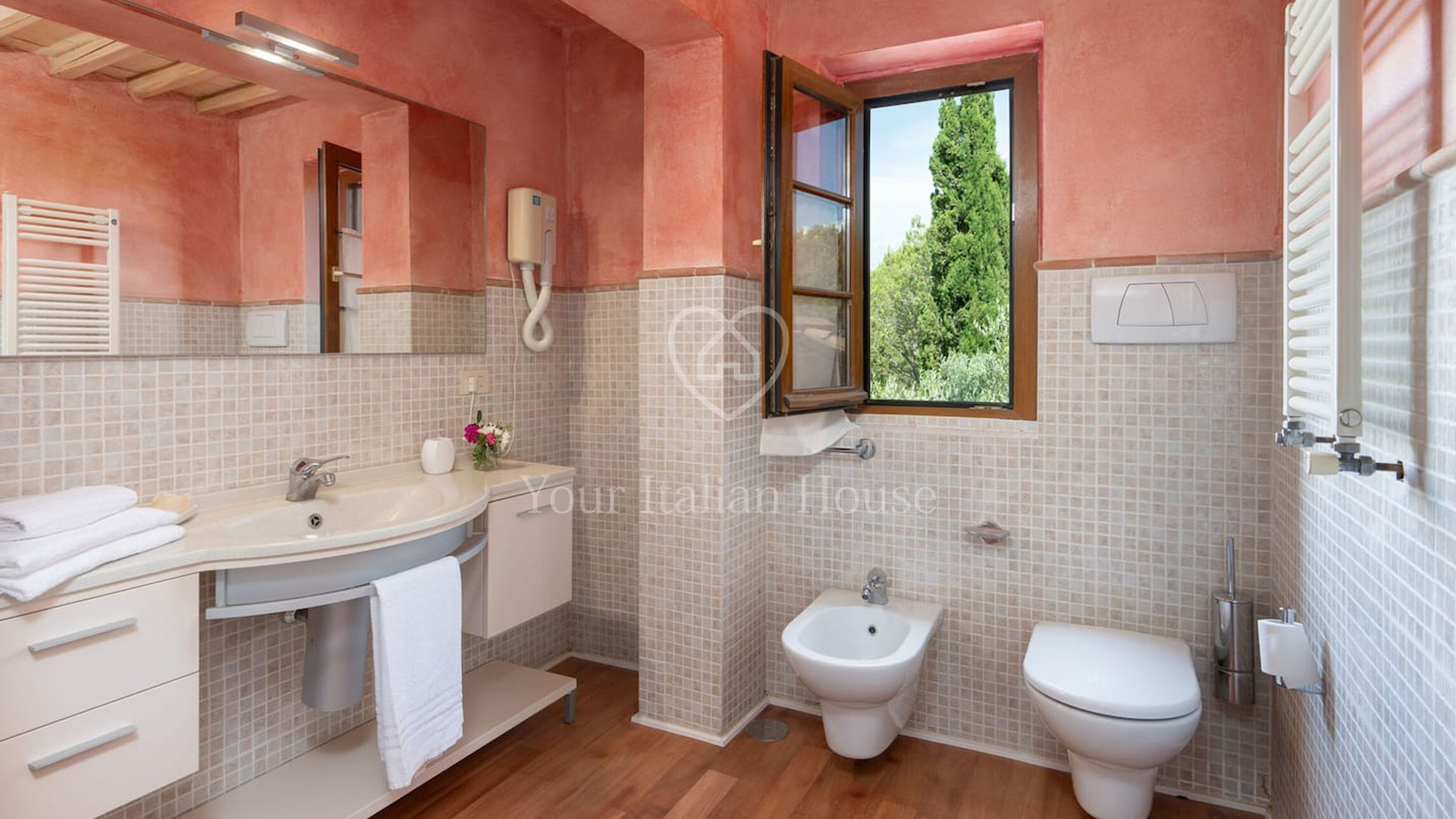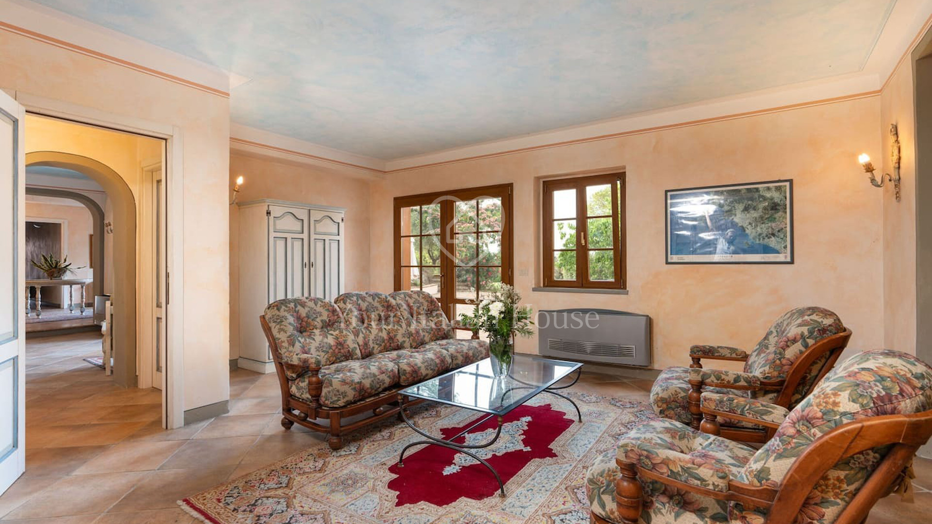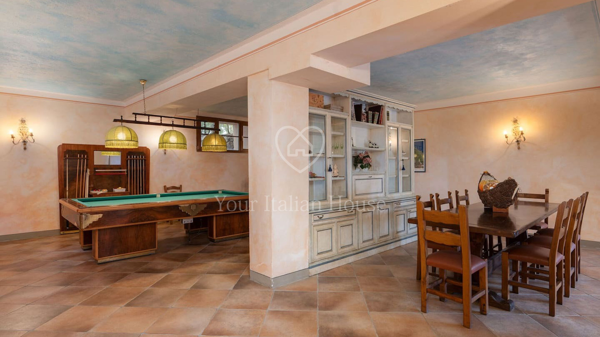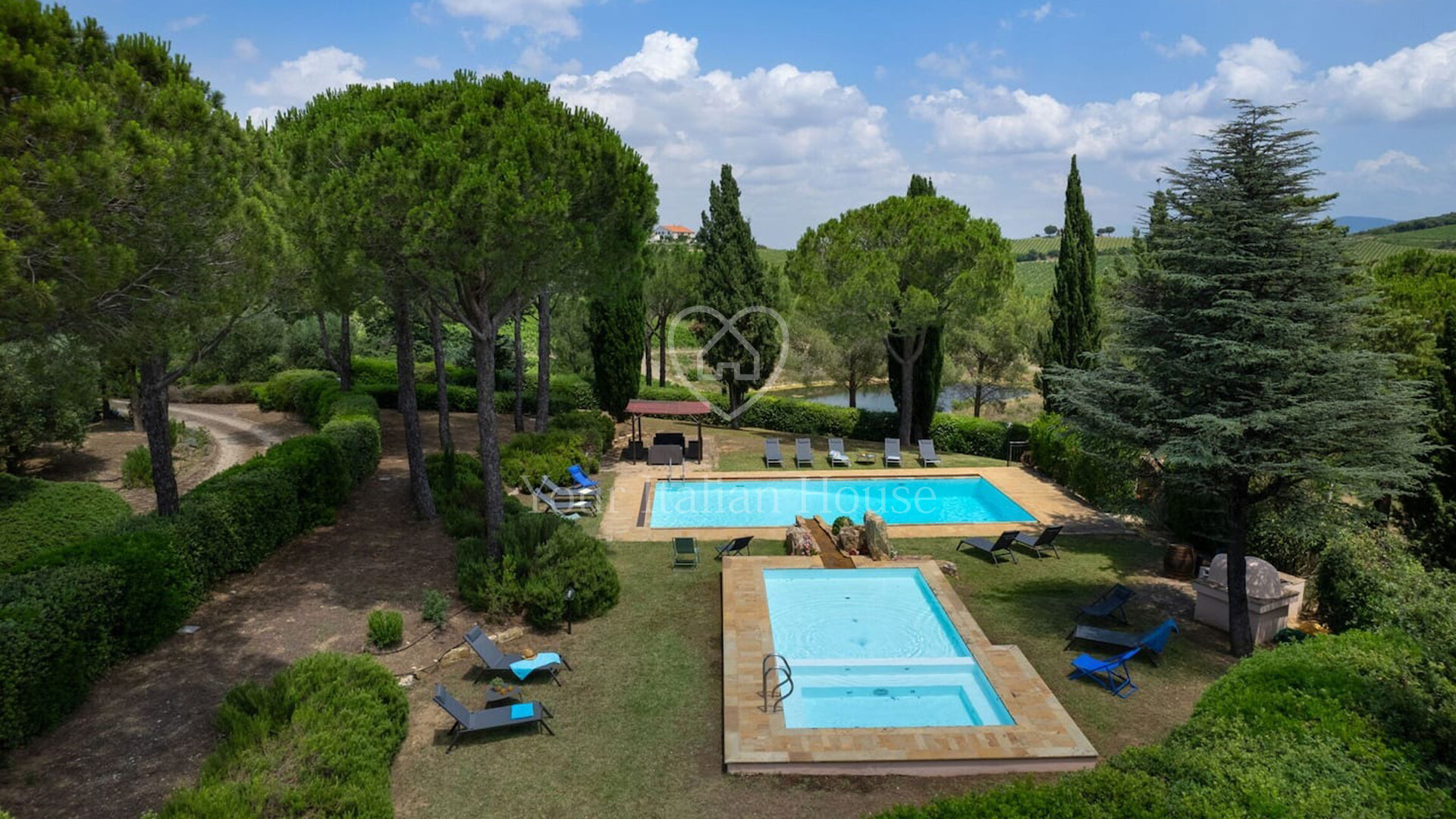 De villa bestaat uit drie verdiepingen. Op de begane grond is er een woongedeelte met badkamer, een keuken en, apart, de conciërgewoning. Op de eerste verdieping zijn er zes tweepersoonsslaapkamers, allemaal met eigen badkamer. De kamers zijn behandeld met aandacht voor de kleinste details en geschilderd met smaak en een verscheidenheid aan kleuren. De kelder wordt voornamelijk gebruikt als ontspanningsruimte, met een biljartkamer, een Turks bad en een gezellige fitnessruimte; een deel is bestemd voor technische ruimtes. Ook het waarderen waard is de tuin, met aandacht voor detail, die verschillende plekken biedt waar je buiten kunt eten of ontspannen in de schaduw van de bomen. Ook buiten is er een groot zwembad verdeeld in een kindergedeelte, een hydromassagebad en een groot zwembad met een mooie waterval. Het zwembadgedeelte biedt ook overdekte ruimtes waar je momenten van ontspanning kunt doorbrengen. Een paar honderd meter lager dan de hoofdvilla vinden we een groot gebouw van ongeveer 1.200 m² op twee niveaus. Op de gedeeltelijk onderkelderde verdieping bevindt zich een kelder, van ongeveer 800 m², met een enkele kamer die volledig gemaakt is met terracotta gewelven. De bovenverdieping wordt momenteel gebruikt als proeflokaal, kantoren en conciërgewoning. Het pand wordt gecompleteerd door bijna 11 hectare wijngaarden, die het pand volledig omringen en een gevoel van rust en harmonie geven met de omgeving. Meer informatie op aanvraag.