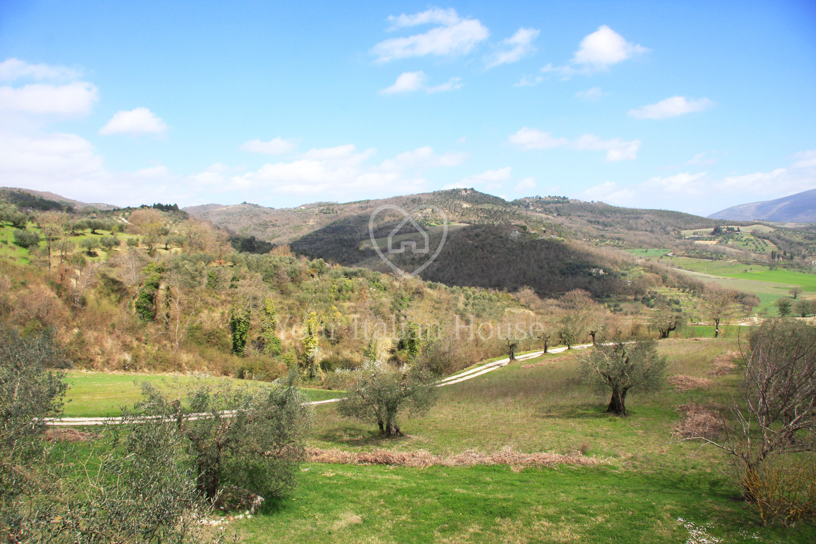 -ongeveer 70 ha land, waaronder een wijngaard van ongeveer 5000 vierkante meter, waar twee beroemde Umbrische wijnstokken (Sangiovese en Trebbiano) zijn gevestigd, olijfgaard met ongeveer 850 olijfbomen, waarvan sommige eeuwen oud, bos, weiland en akkerland.