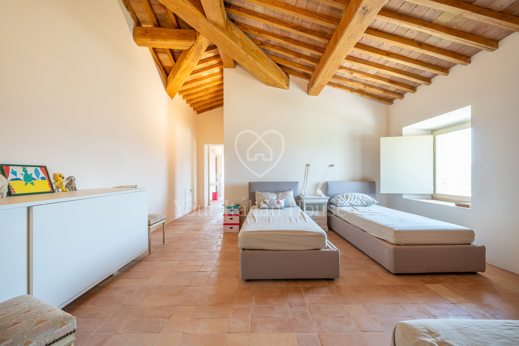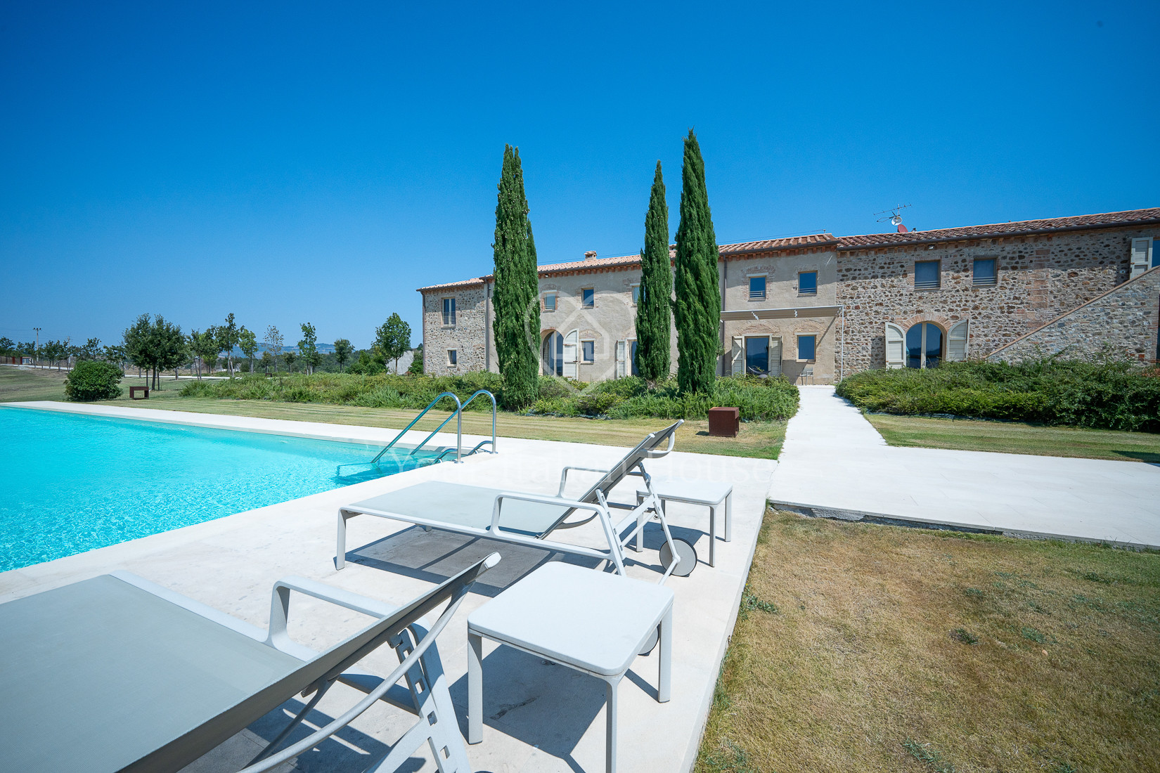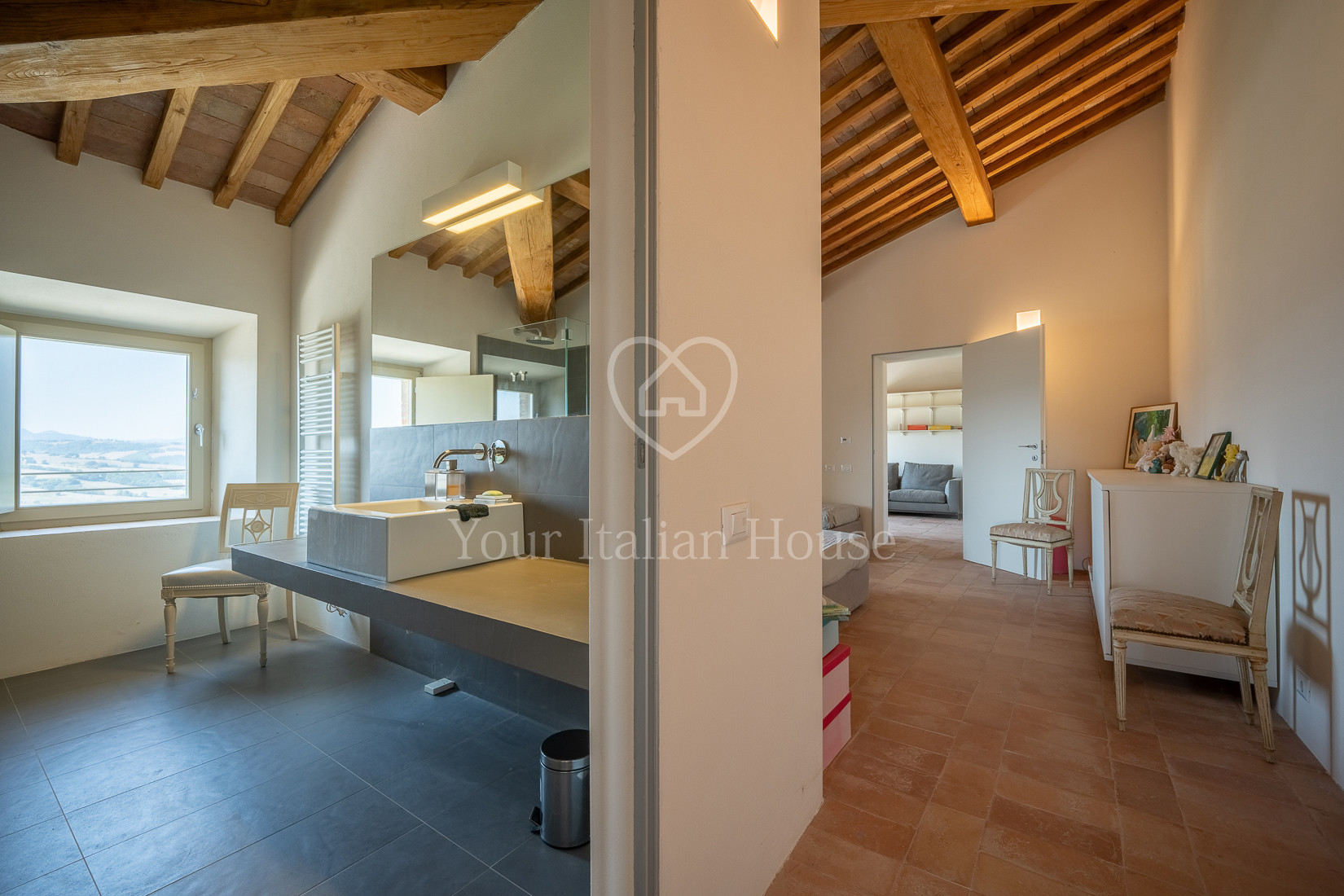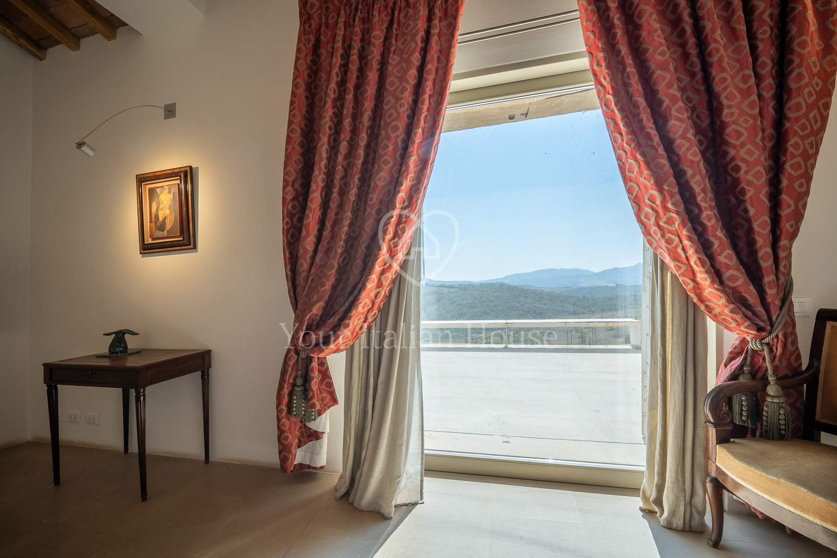 A few kilometers from Volterra, immersed in a dream landscape with 360-degree views of the rolling Tuscan hills, for sale sensational property consisting of a farmhouse of 985 sqm gross, an annex of about 275 sqm used as a tool shed, infinity pool and land of about 84 hectares.
