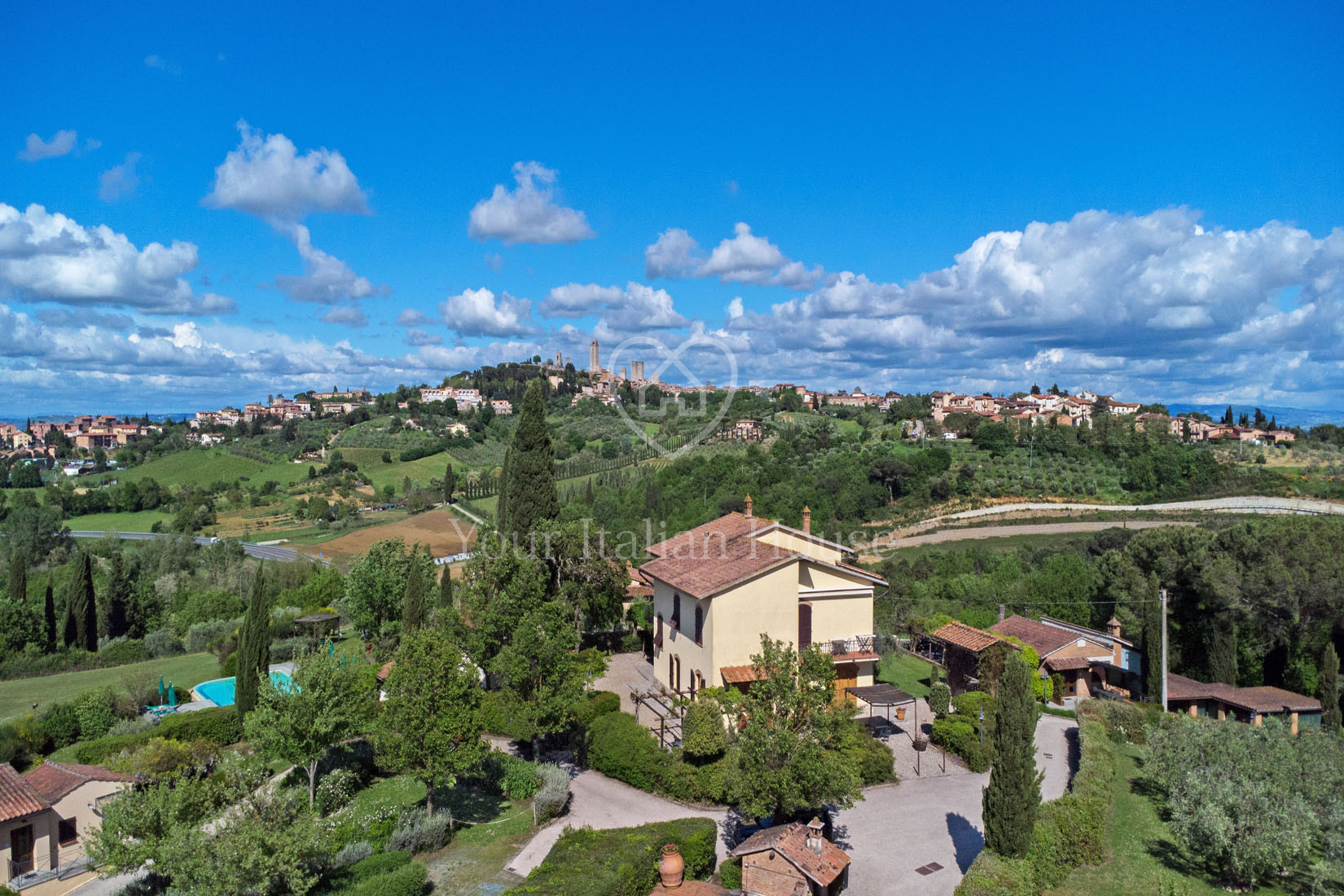 De woning, gemakkelijk bereikbaar, ligt op korte afstand van San Gimignano (minder dan 4 km, 7 minuten), een van de favoriete bestemmingen voor nationaal en internationaal toerisme. Siena ligt op 45 minuten afstand (43 km), Volterra op 40 minuten (34 km), Florence op 50 minuten (56 km). Het Chiantigebied is bereikbaar in 40 minuten (29 km). De dichtstbijzijnde luchthavens zijn Florence (1 uur, 63 km), Pisa (1 uur 17 minuten, 78 km), Bologna (1 uur 56 minuten, 151 km).