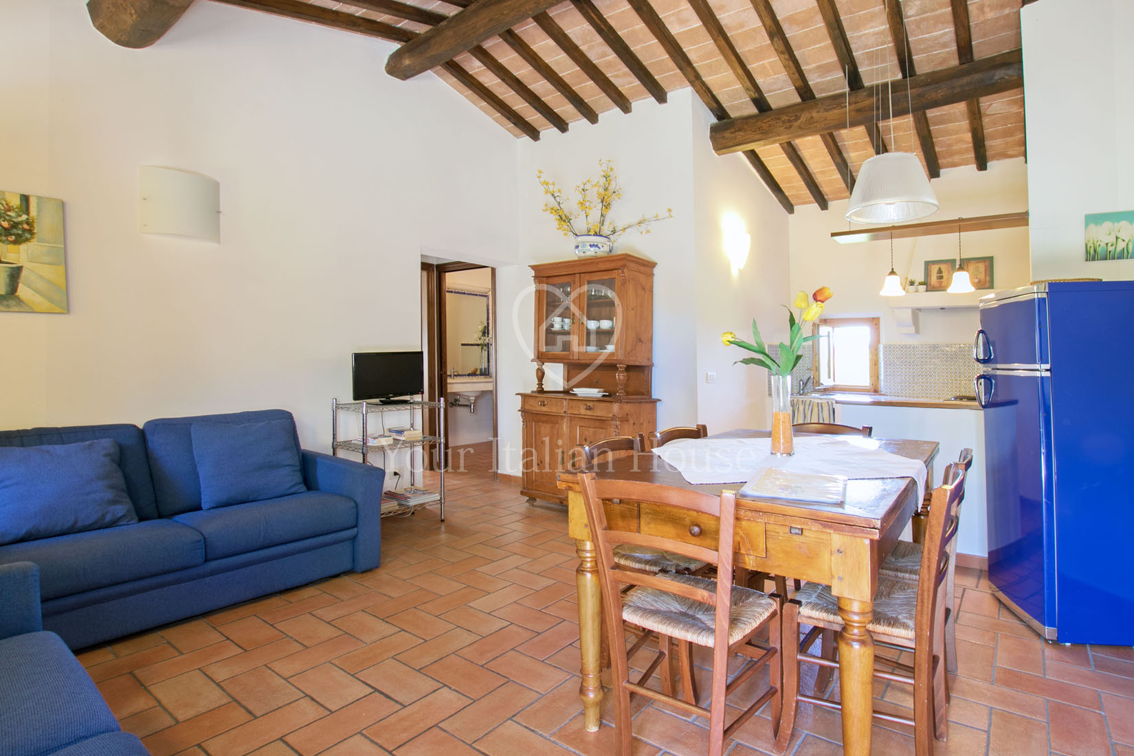 De woning is in 2004 zorgvuldig gerestaureerd met gebruik van hoogwaardige materialen en met respect voor de Toscaanse traditie, zoals blijkt uit de terracotta vloeren afgewisseld met kamers met parket en plafonds met houten balken. De vele ramen zorgen voor een uitstekende lichtinval.
