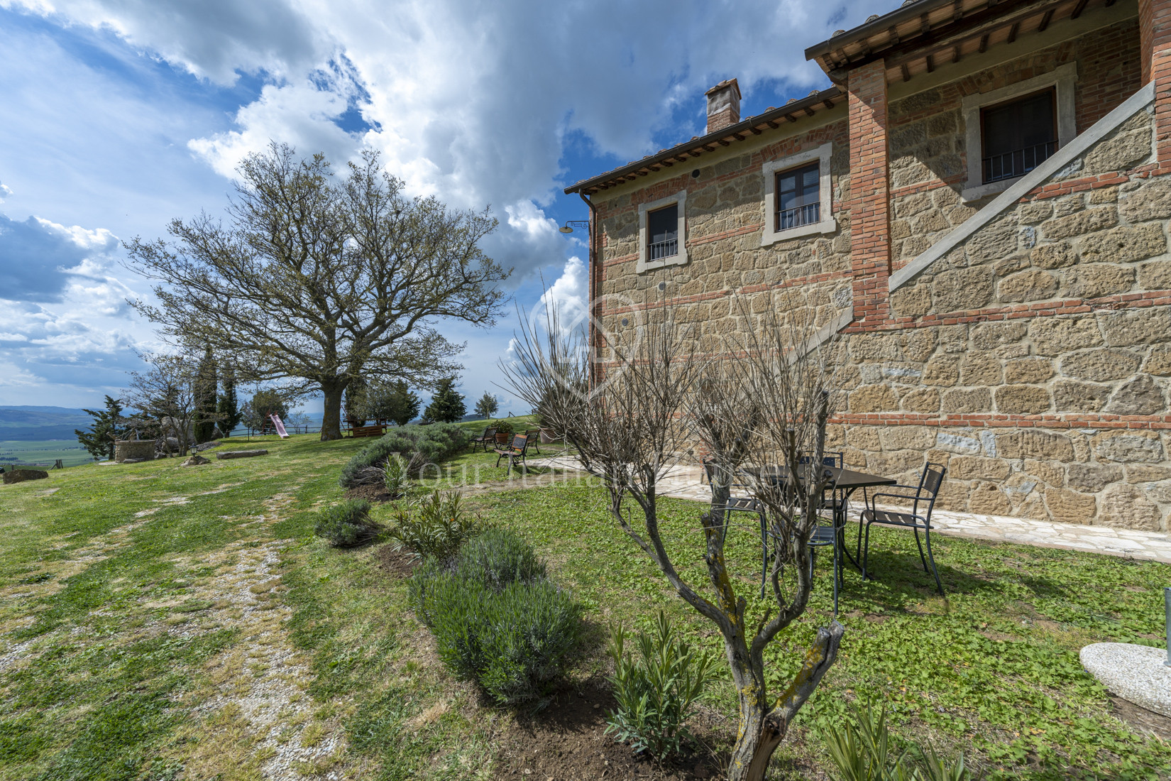 In the uncontaminated scenery of the Val d'Orcia, in Pienza, for sale wonderful property of approximately 550 sqm with annex, for a total of 9 bedrooms and 9 bathrooms surrounded by land of approximately 8,000 sqm.