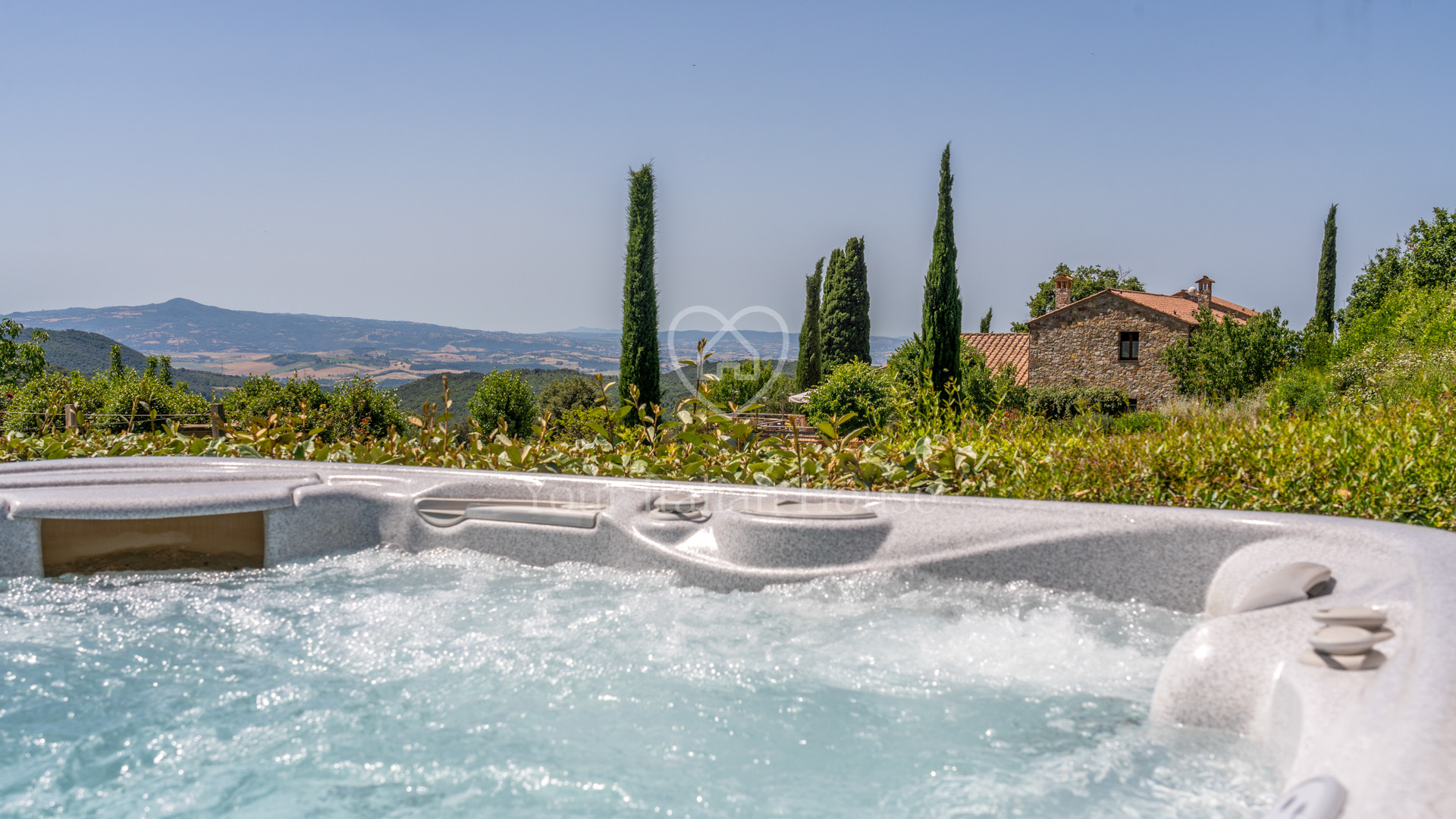 Deze luxe residentie ligt in de gemeente Cinigiano, tussen de prachtige heuvels van de Maremma en bestaat uit drie gebouwen.