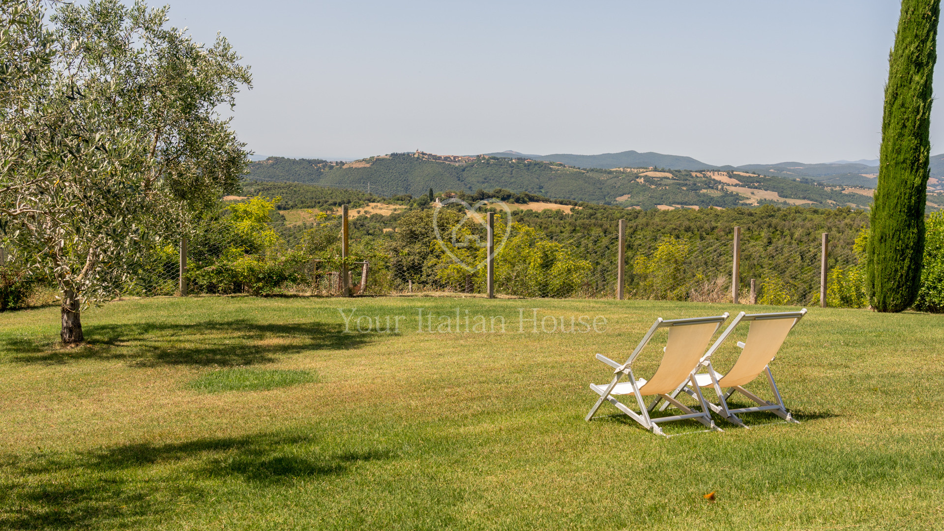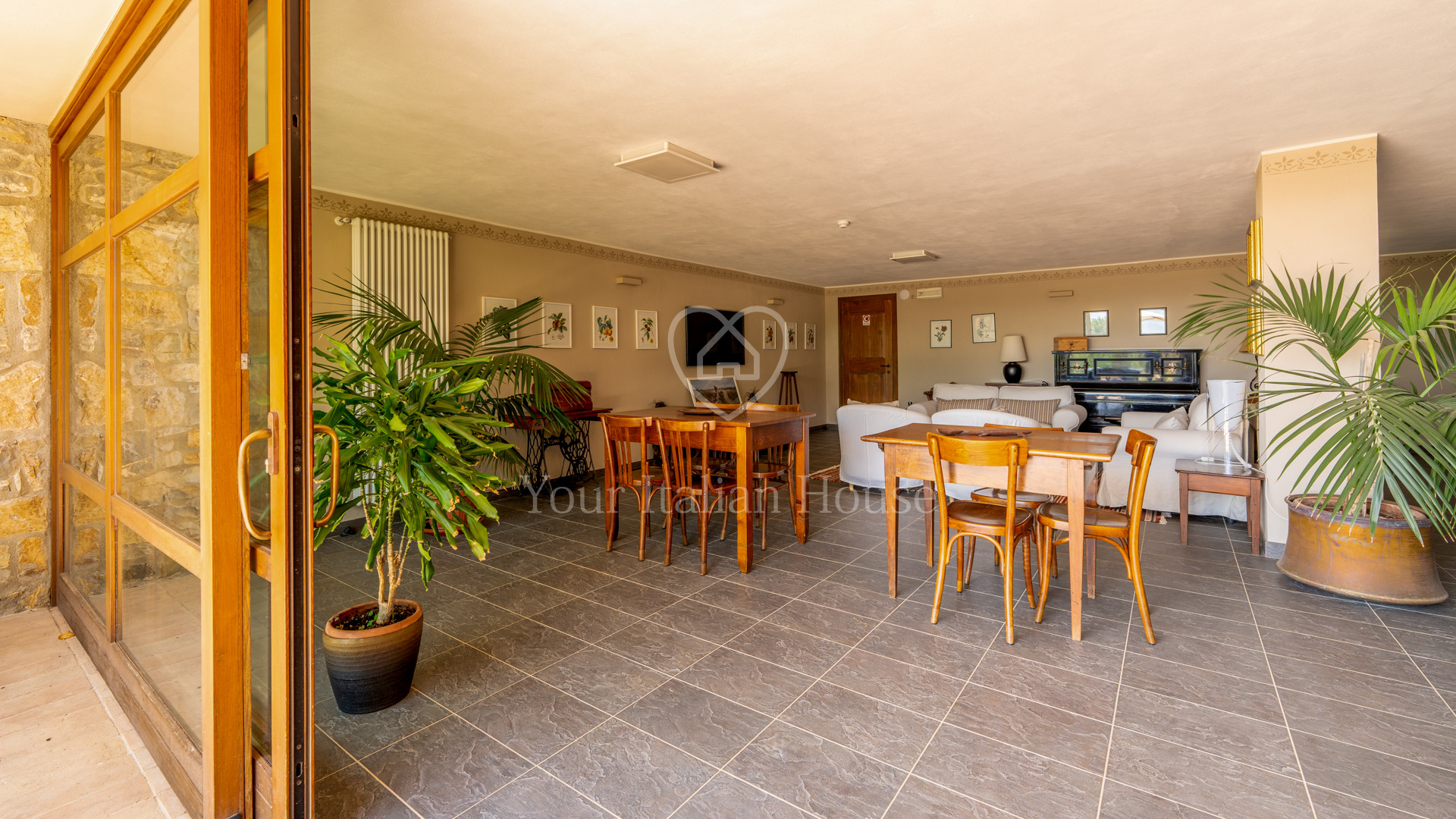 In de goed onderhouden tuin vinden we ontspanningsruimtes, een verwarmd zwembad van 6×13 m, een jacuzzi, een sauna, een ruimte met een muziektherapiesysteem en een ruimte voor degenen die willen sporten terwijl ze genieten van een spectaculair uitzicht op het omliggende platteland.