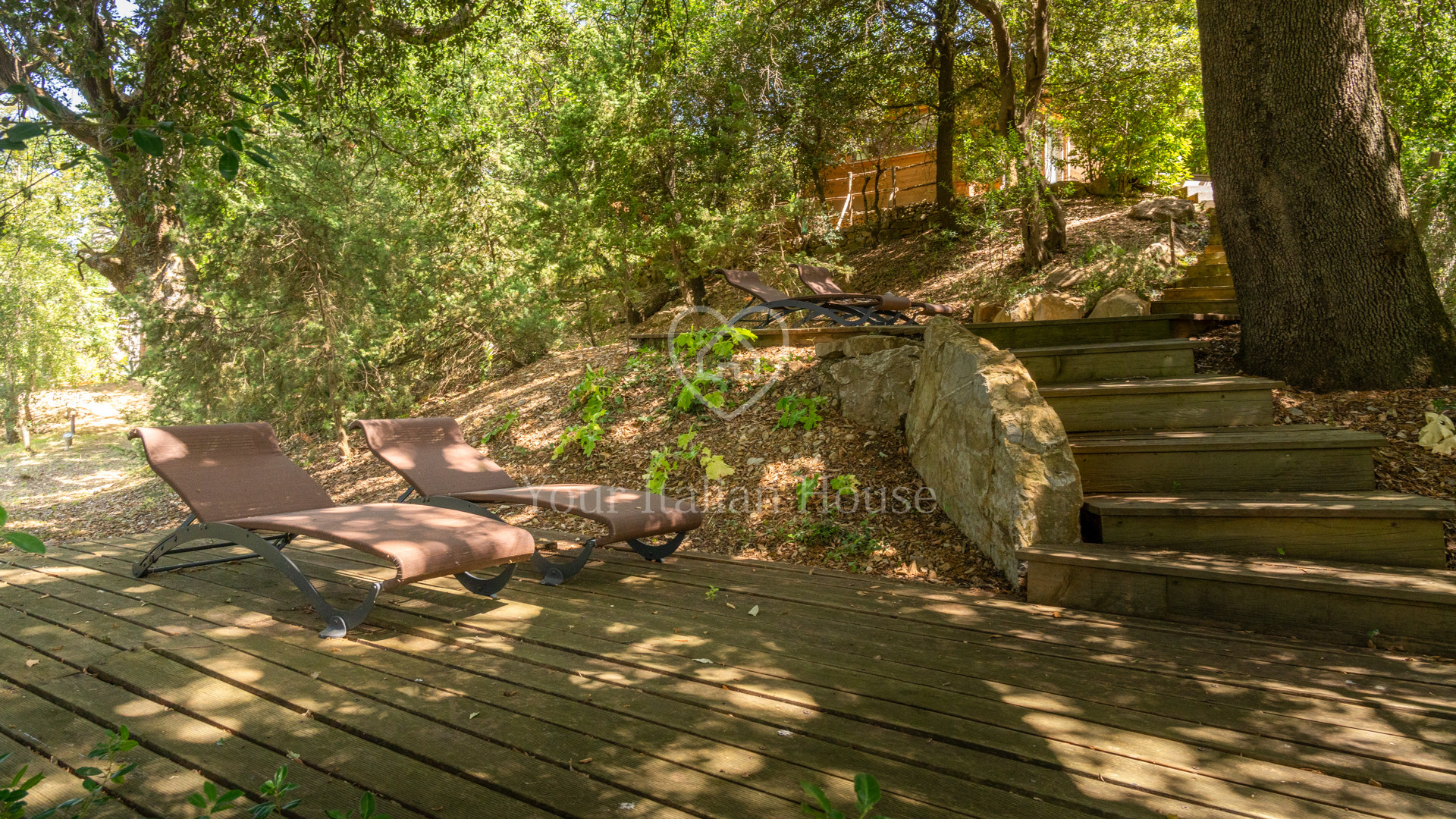Het derde gebouw van 35 m² is een eco houten huisje genesteld in het bos, met een kamer met kitchenette en een badkamer.