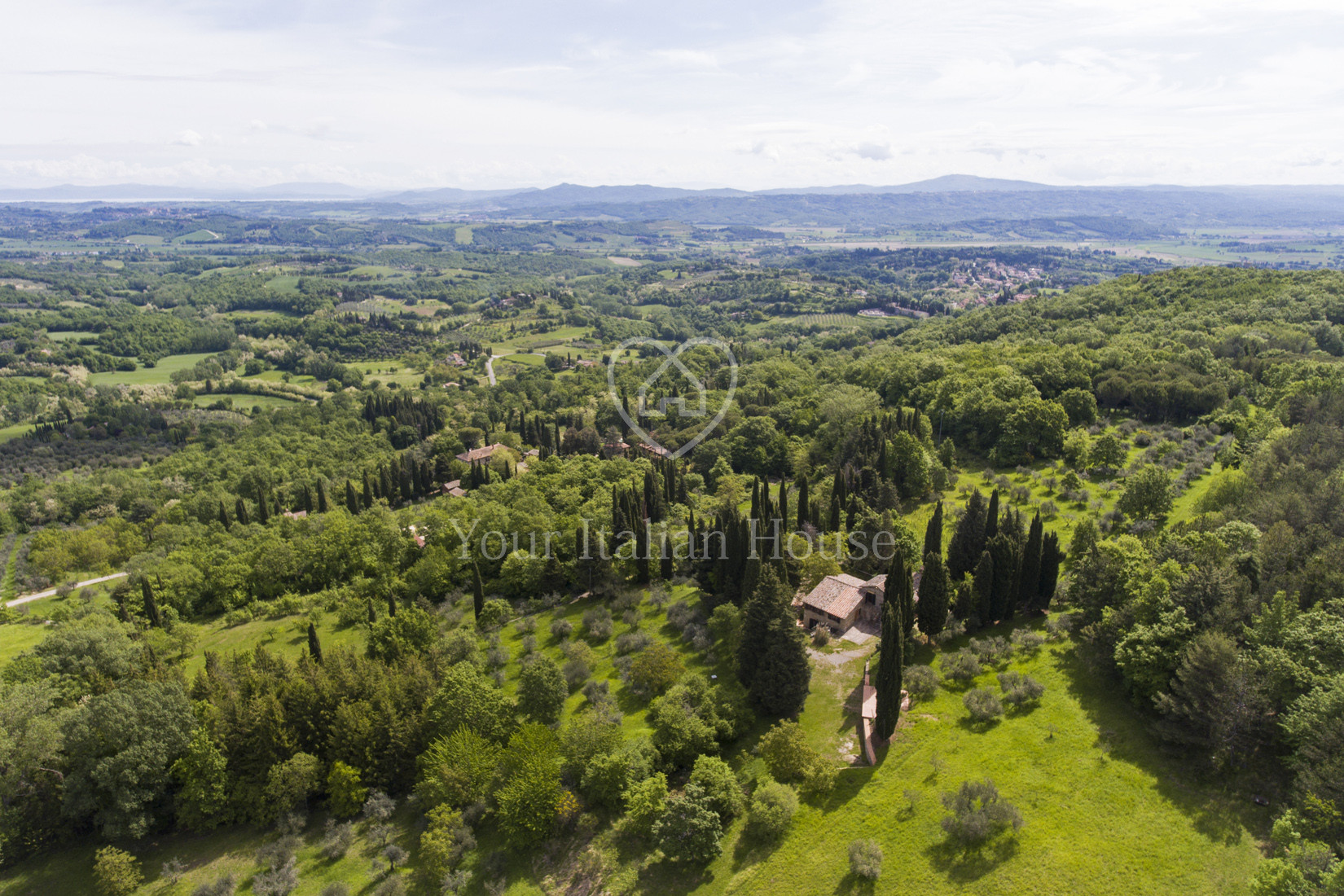 De boerderij heeft een dominante positie met een panoramisch zicht en ligt op slechts 1,5 km van het historische centrum van Cetona. Vanaf hier is het ook mogelijk om San Casciano Dei Bagni met zijn thermale bronnen en Sarteano te bereiken. De afrit Fabro A1 van de snelweg ligt op 15 km afstand. Verbazingwekkende middeleeuwse gehuchten zoals Montepulciano, Pienza, Montalcino en Orvieto zijn niet ver weg. Hetzelfde geldt voor grote steden als Rome, Firenze (ongeveer 1 uur en een half) en Perugia (een half uur).