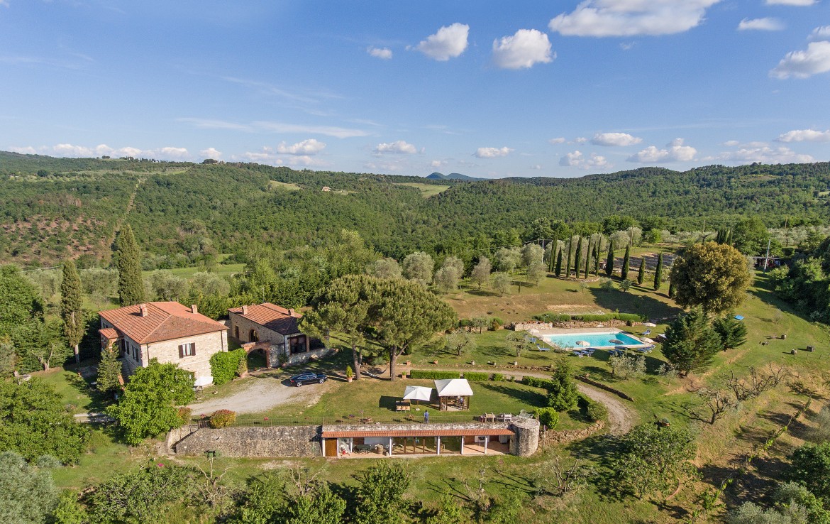 This prestigious property is located in Castiglione del Lago, in the heart of Umbria, just a few kilometers from Lake Trasimeno, renowned for its stunning natural landscapes and recreational opportunities. Nestled in a sun-drenched hillside setting, it offers panoramic views of the gentle surrounding hills and, in the distance, the serene waters of the lake. The area boasts a rare blend of privacy and tranquility, perfect for those seeking an exclusive and refined environment. Access is via a paved road followed by a short gravel stretch of less than 500 meters, ensuring convenience and seclusion. The location is also close to key tourist destinations, with the city of Perugia approximately 45 km away and Perugia-Sant’Egidio Airport reachable within about 6.5 km.