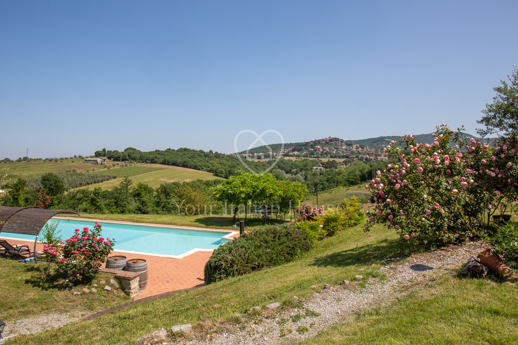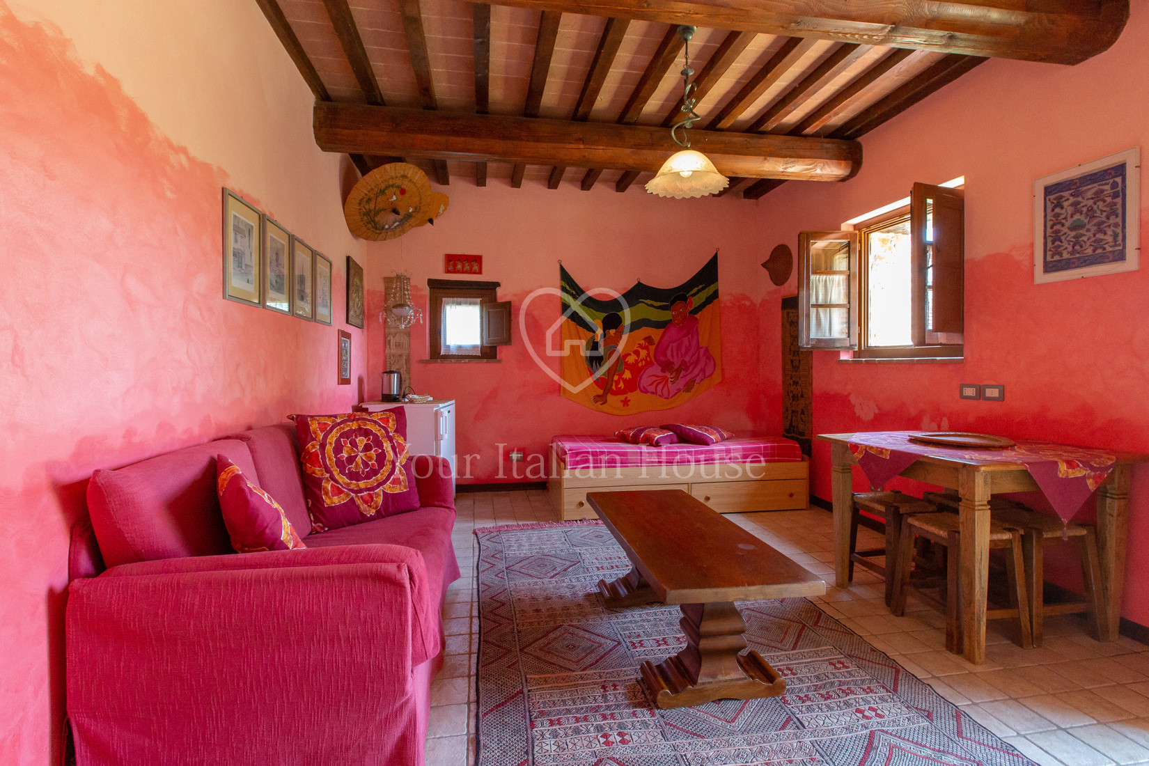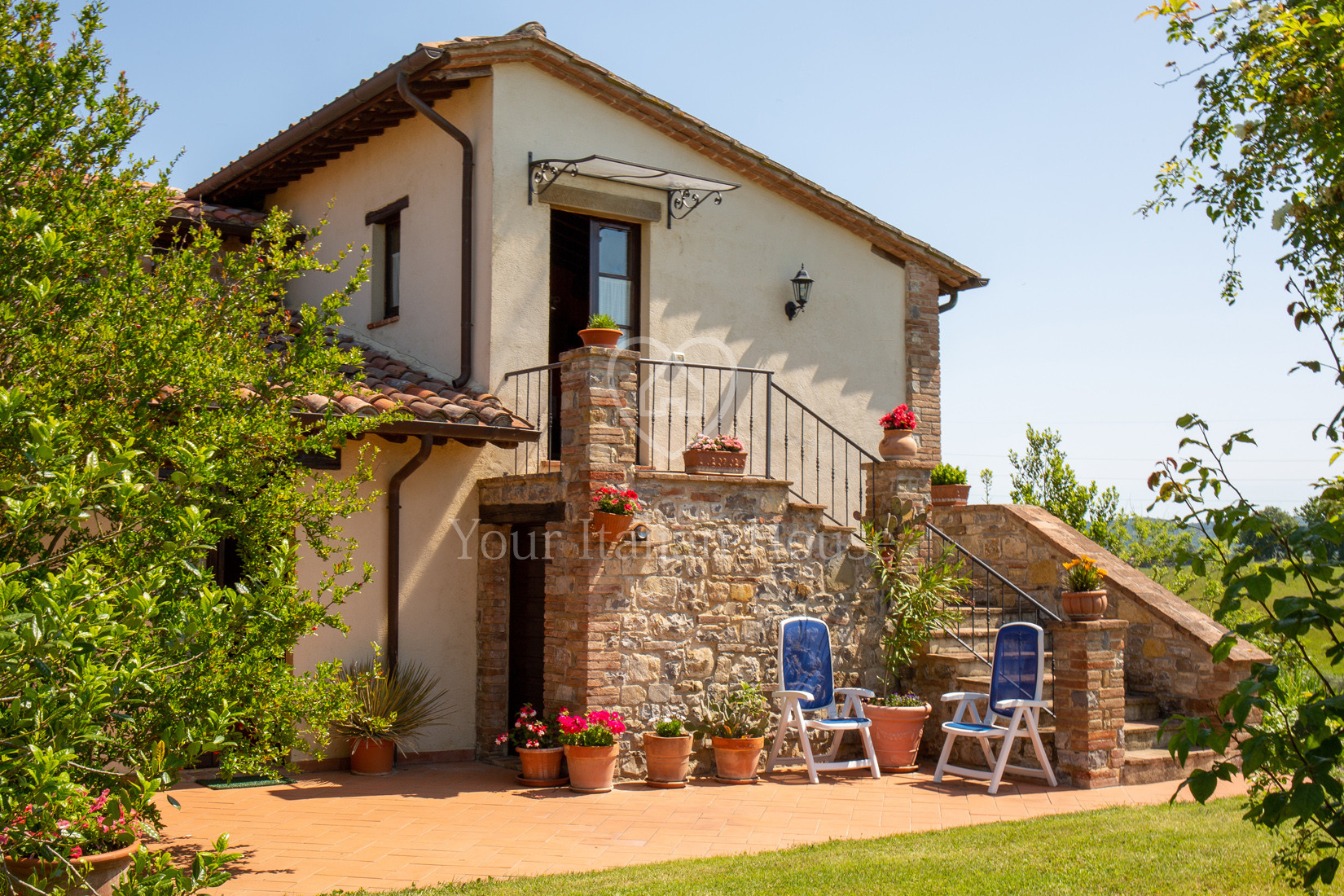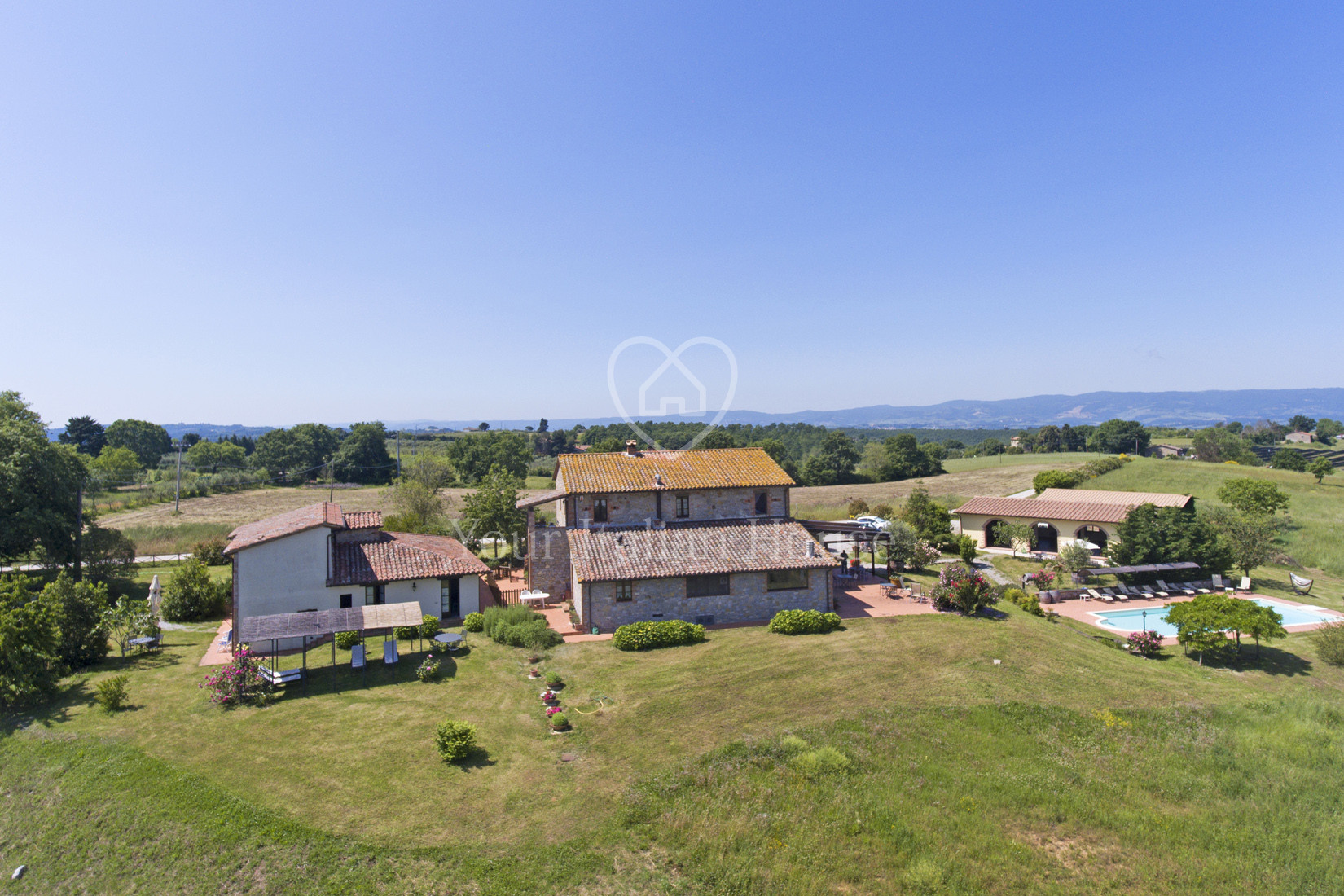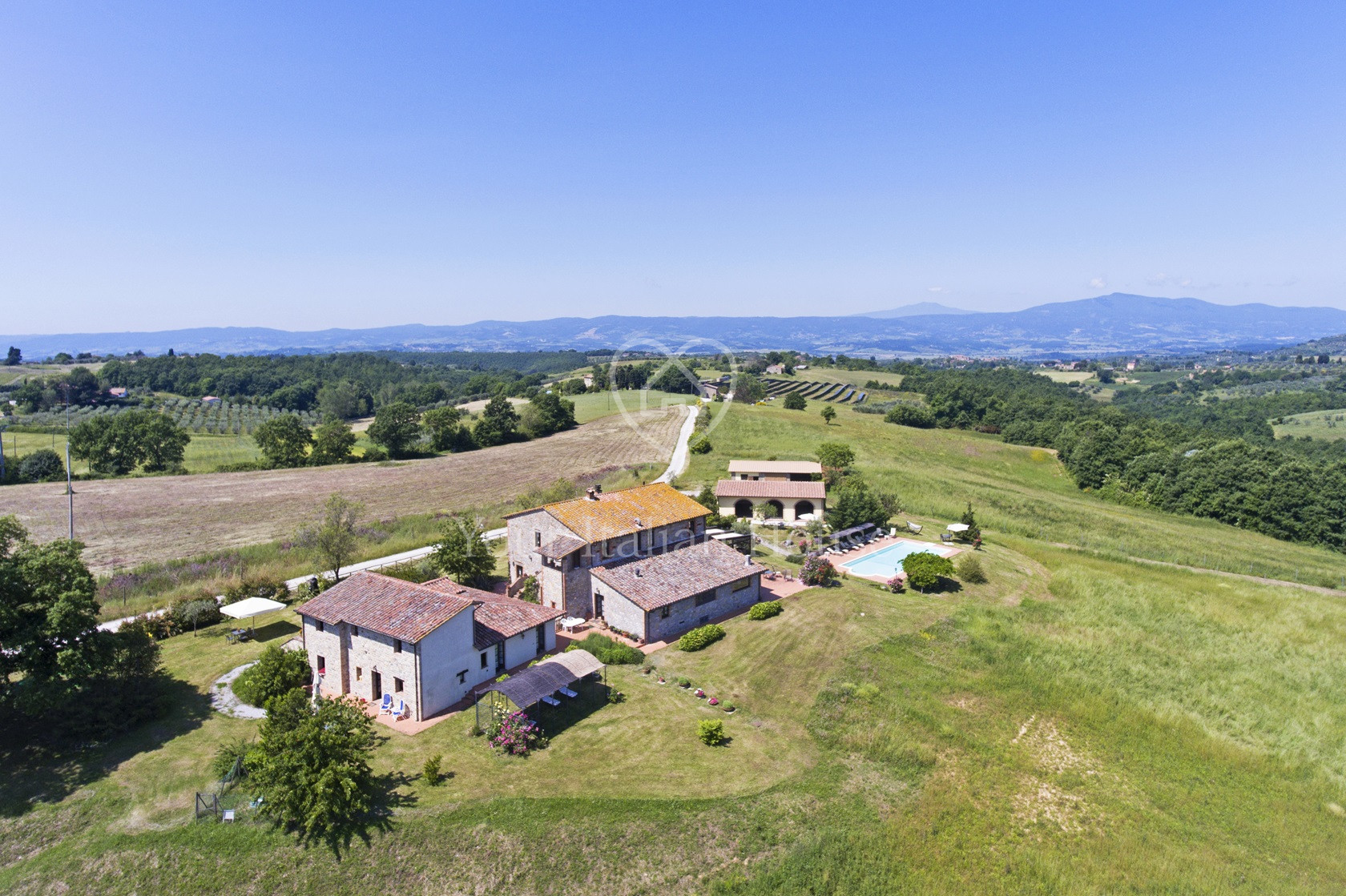 Dit huis ligt in Umbrië, op de grens met Toscane, in de gemeente Montegabbione. Alle voorzieningen liggen op slechts 2 km afstand, terwijl de afrit van de snelweg A1 Fabro en het treinstation op slechts 8 km afstand liggen. Het landgoed ligt op de top van een heuvel, vlakbij de beroemde toeristische bestemming “La Scarzuola”, voormalig Franciscaner klooster gekocht en gerestaureerd in de jaren 60-70 door de extravagante architect Tomaso Buzzi. Binnen een straal van 15-50 km zijn vele andere historische toeristische centra te bereiken, zoals Città della Pieve, Pienza, San Casciano dei Bagni, Cetona, Montepulciano, enz.
