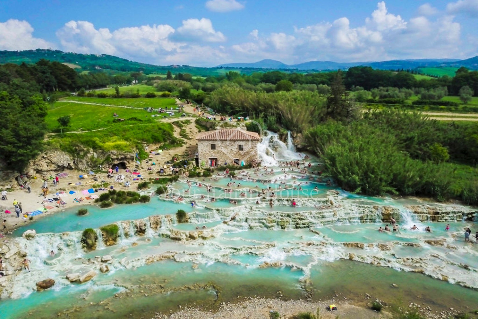 Met de nabijgelegen natuurlijke thermale baden, biedt het de gasten de mogelijkheid om zich onder te dompelen in de natuur en te profiteren van de therapeutische eigenschappen van het thermale water. Bovendien, dankzij de strategische ligging, is het landhuis het perfecte uitgangspunt om de schoonheid van de toscaanse Maremma te ontdekken, waaronder middeleeuwse dorpjes, natuurreservaten en wijngaarden.