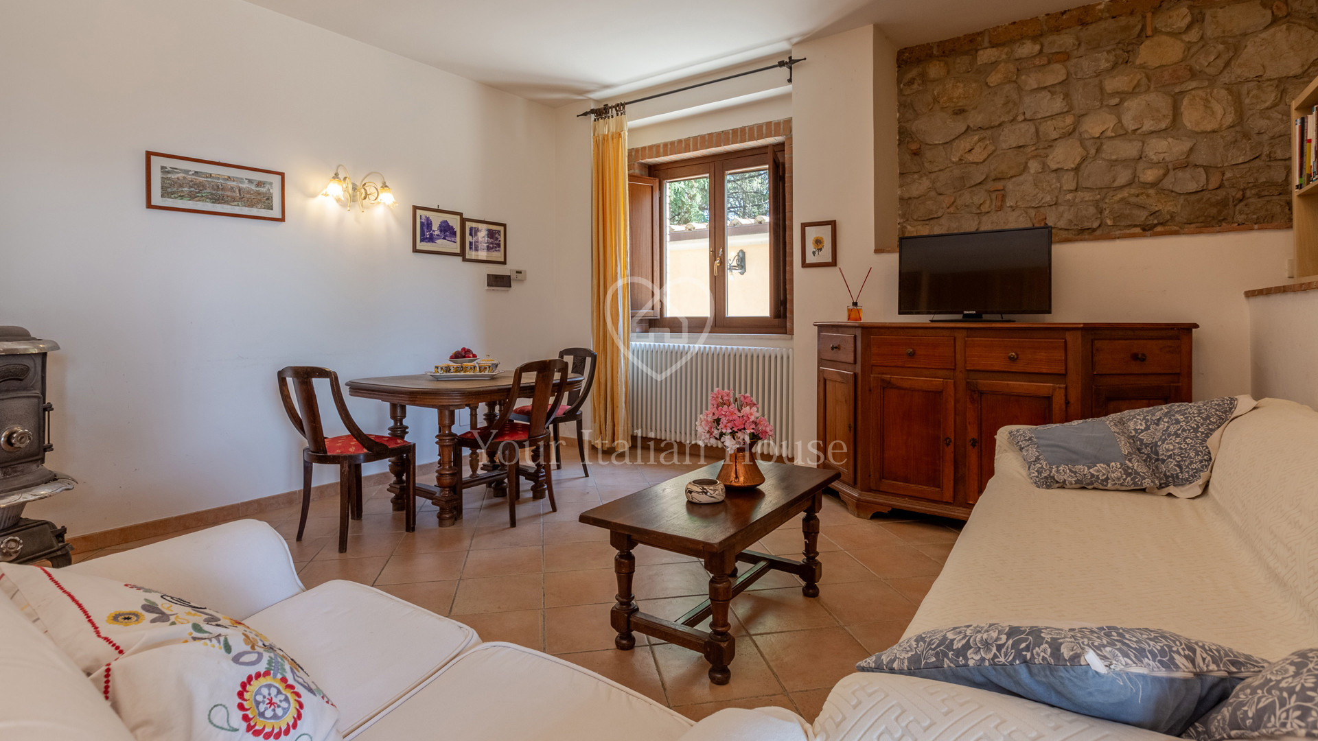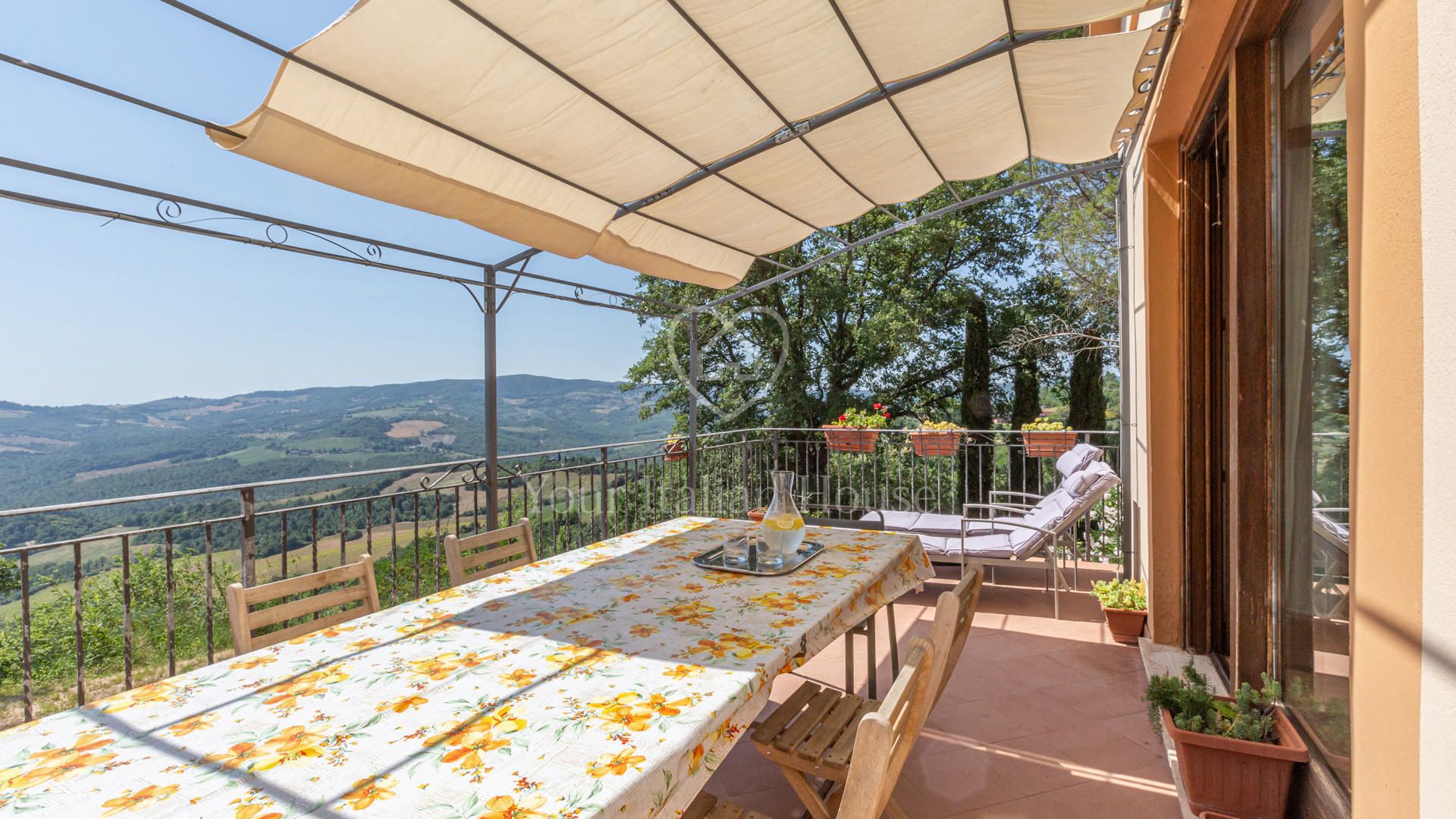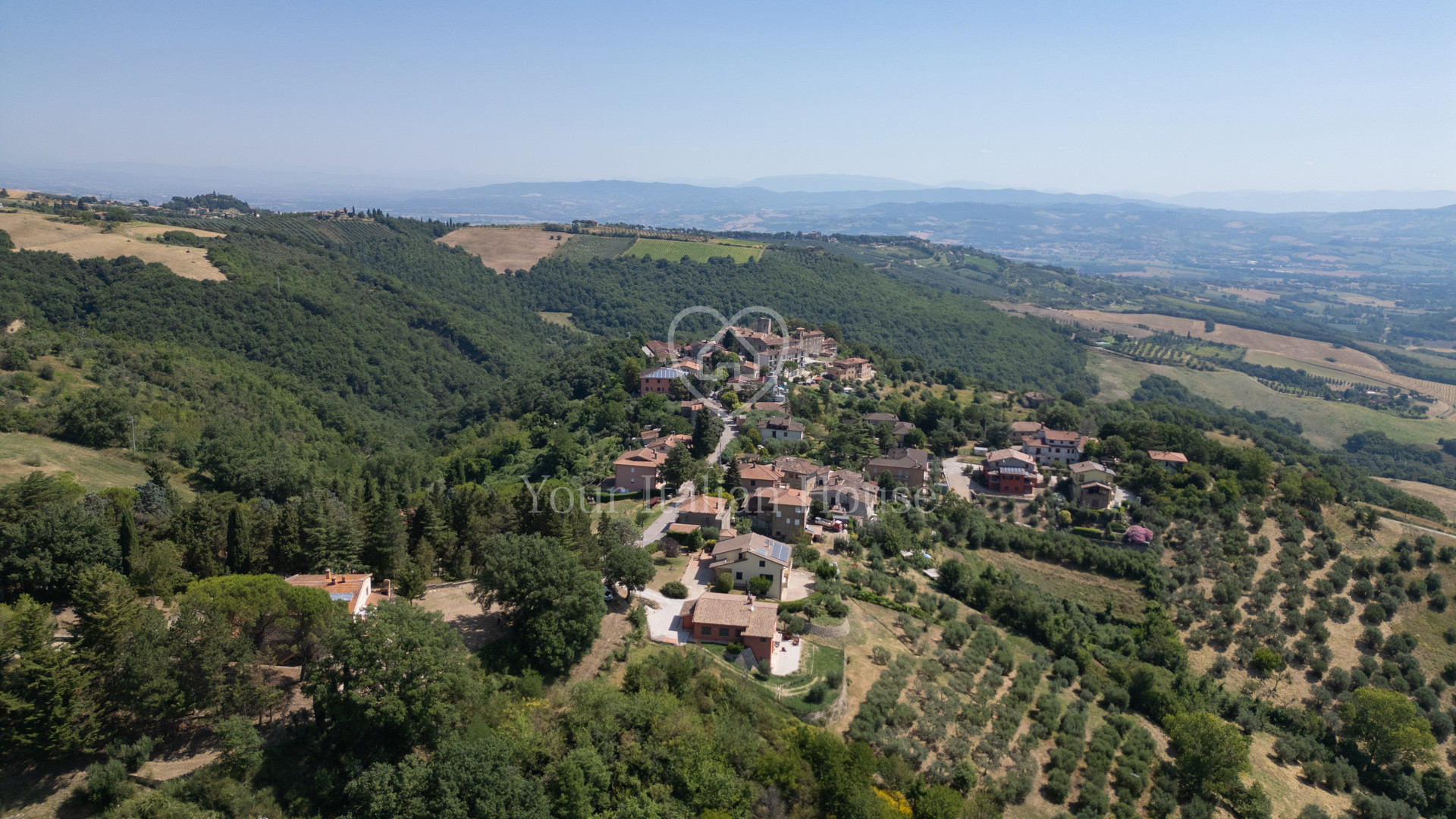 Located in the hills of San Venanzo, in the province of Terni, this property enjoys a peaceful and panoramic position typical of central Umbria. The surrounding area is characterized by wide green spaces and a preserved natural environment, ideal for those seeking privacy and direct contact with nature. The road leading to the property is paved, ensuring good access in every season. It is about 20 minutes from Todi, renowned for its historic center, 30 minutes from Perugia and its airport, and 40 minutes from Orvieto, offering cultural and recreational opportunities. The location guarantees an open view of the Umbrian hills. The village of Ripalvella, within walking distance, has a market and an excellent restaurant; San Venanzo and Marsciano, with services, are a 10-minute drive away.