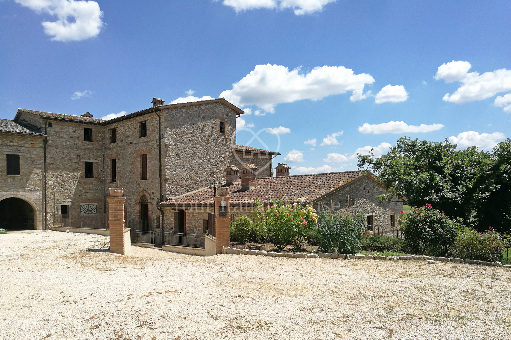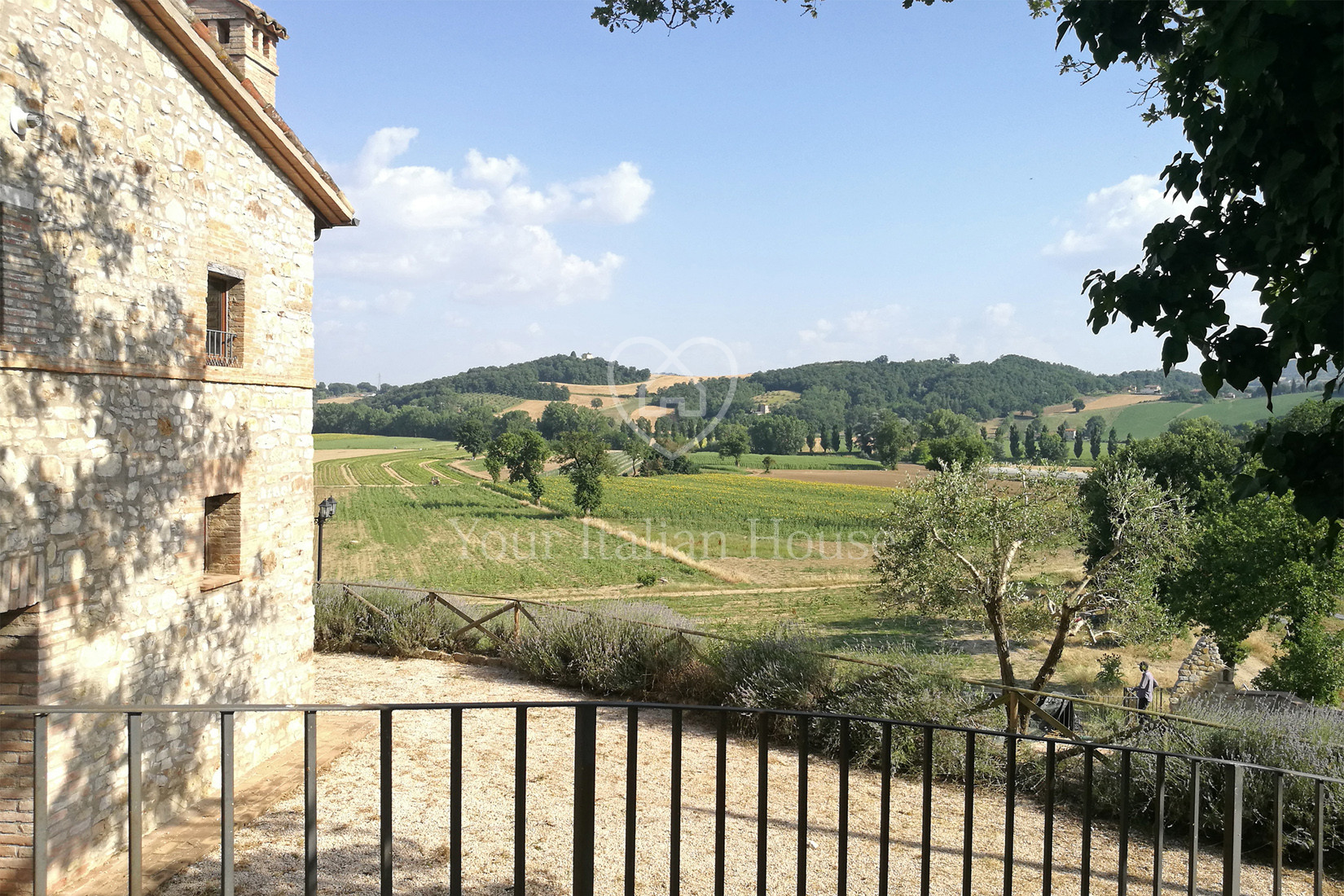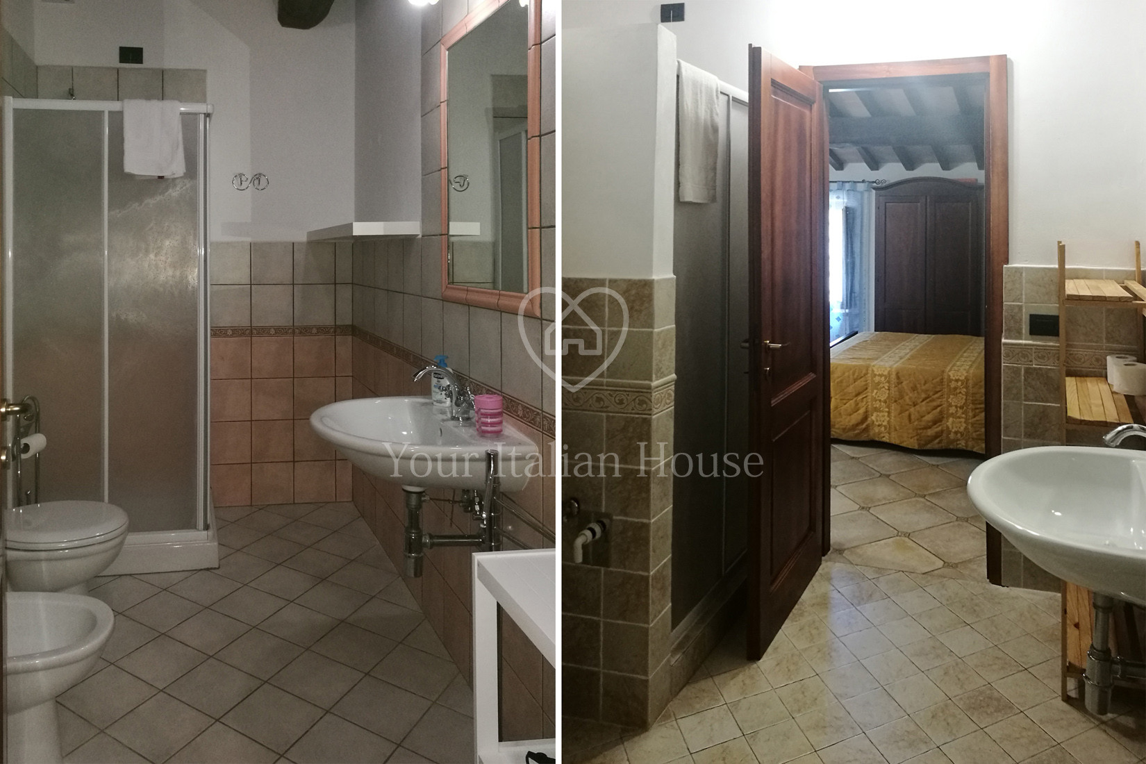 De boerderij is gerestaureerd met behoud van de karakteristieke kenmerken van de Umbrische landhuizen: cotto plaveisel en plafonds met zichtbare houten balken en de klassieke stenen tegels. We vinden ook enkele moderne accenten die de schoonheid van het landhuis versterken, zoals de glazen entree op de begane grond of Gres porseleinen tegels met houten afwerking voor sommige van de trottoirs.