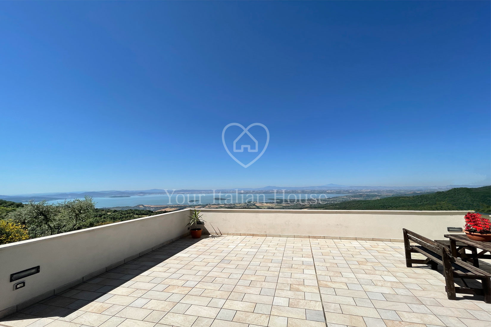 Met uitzicht op het romantische meer van Trasimeno, in Umbrië, vinden we te koop deze betoverende villa van 281 m², verdeeld over 3 verdiepingen als volgt ingedeeld: