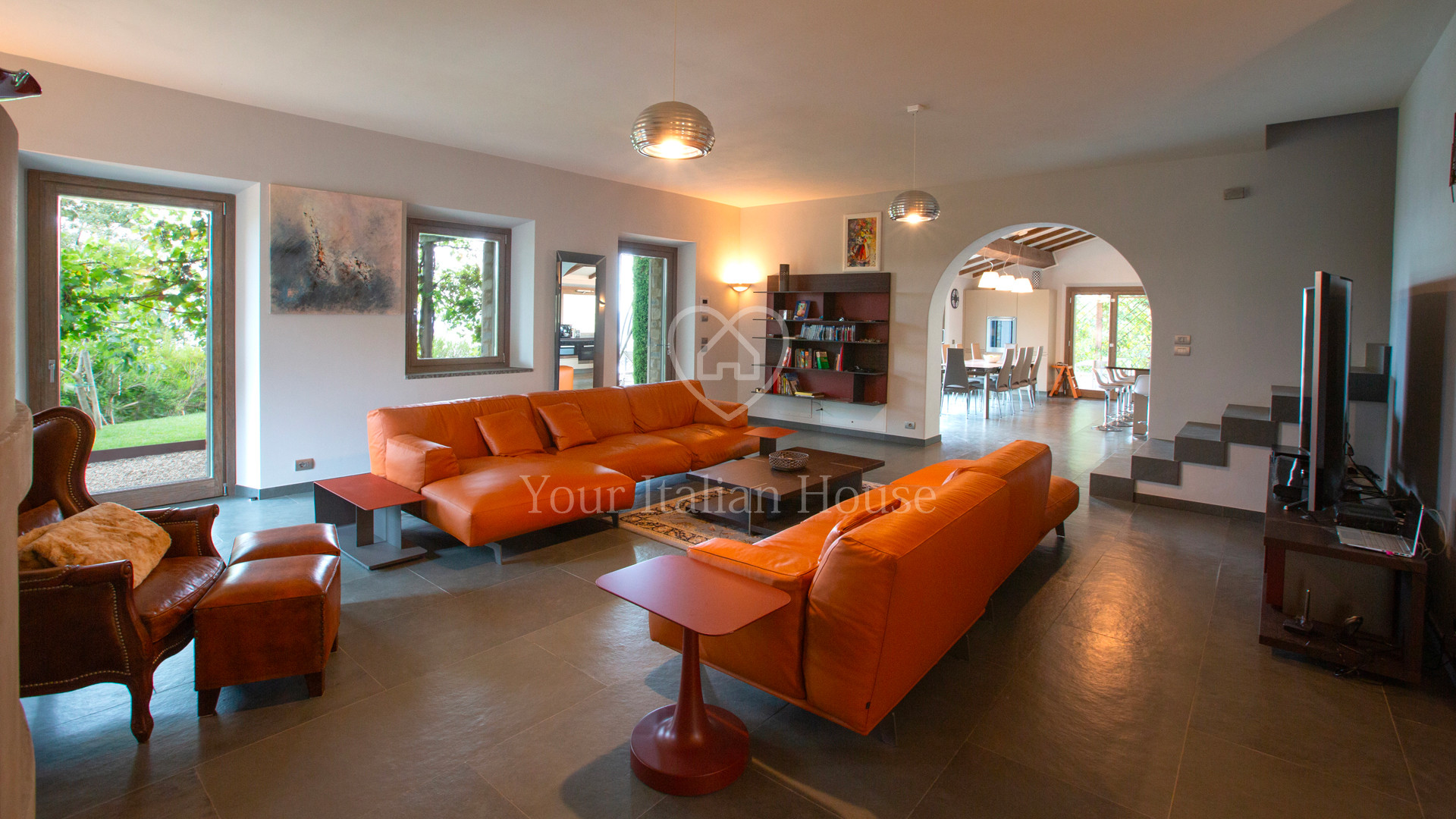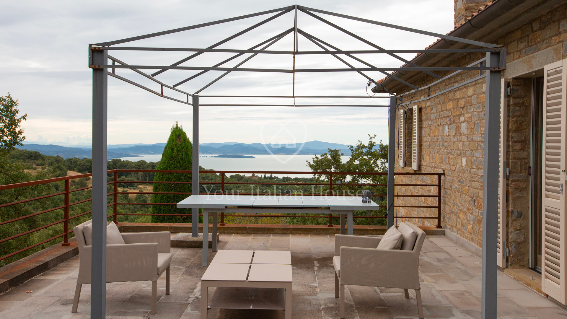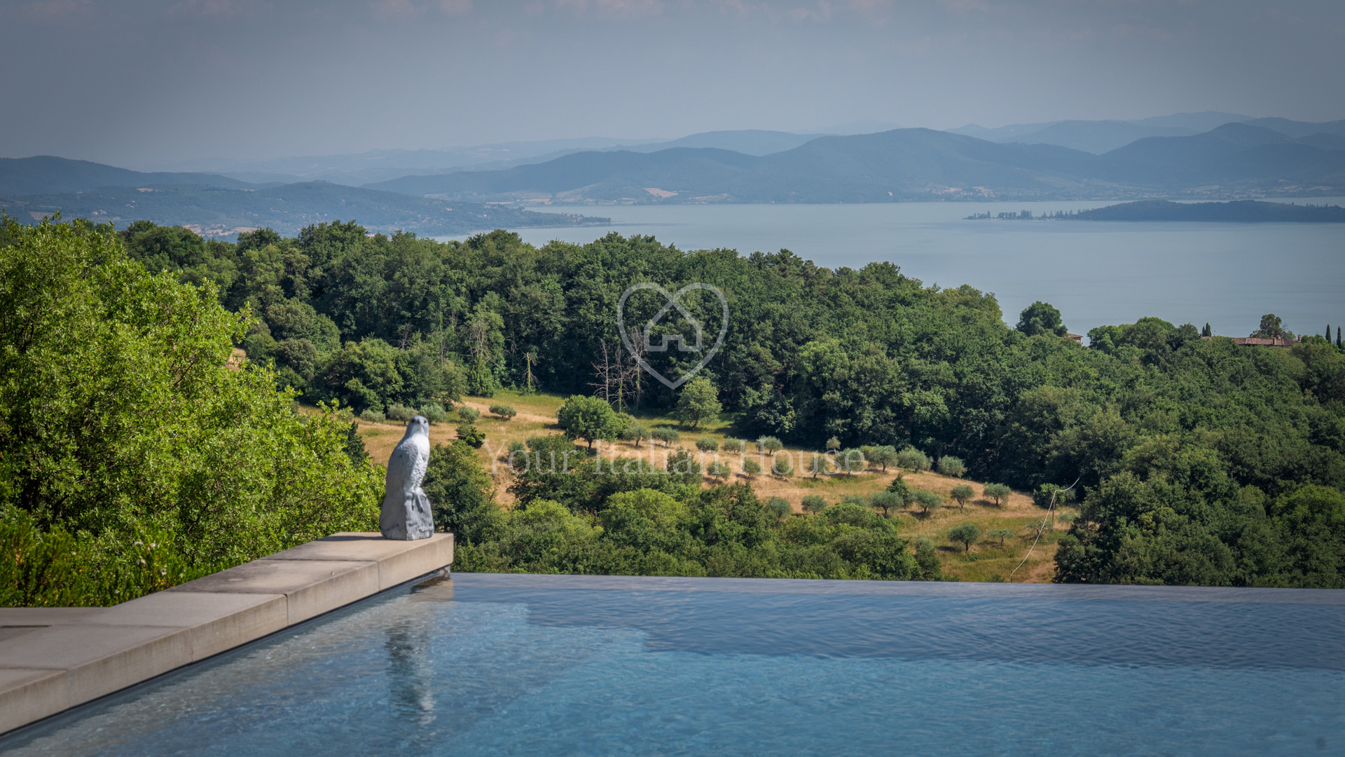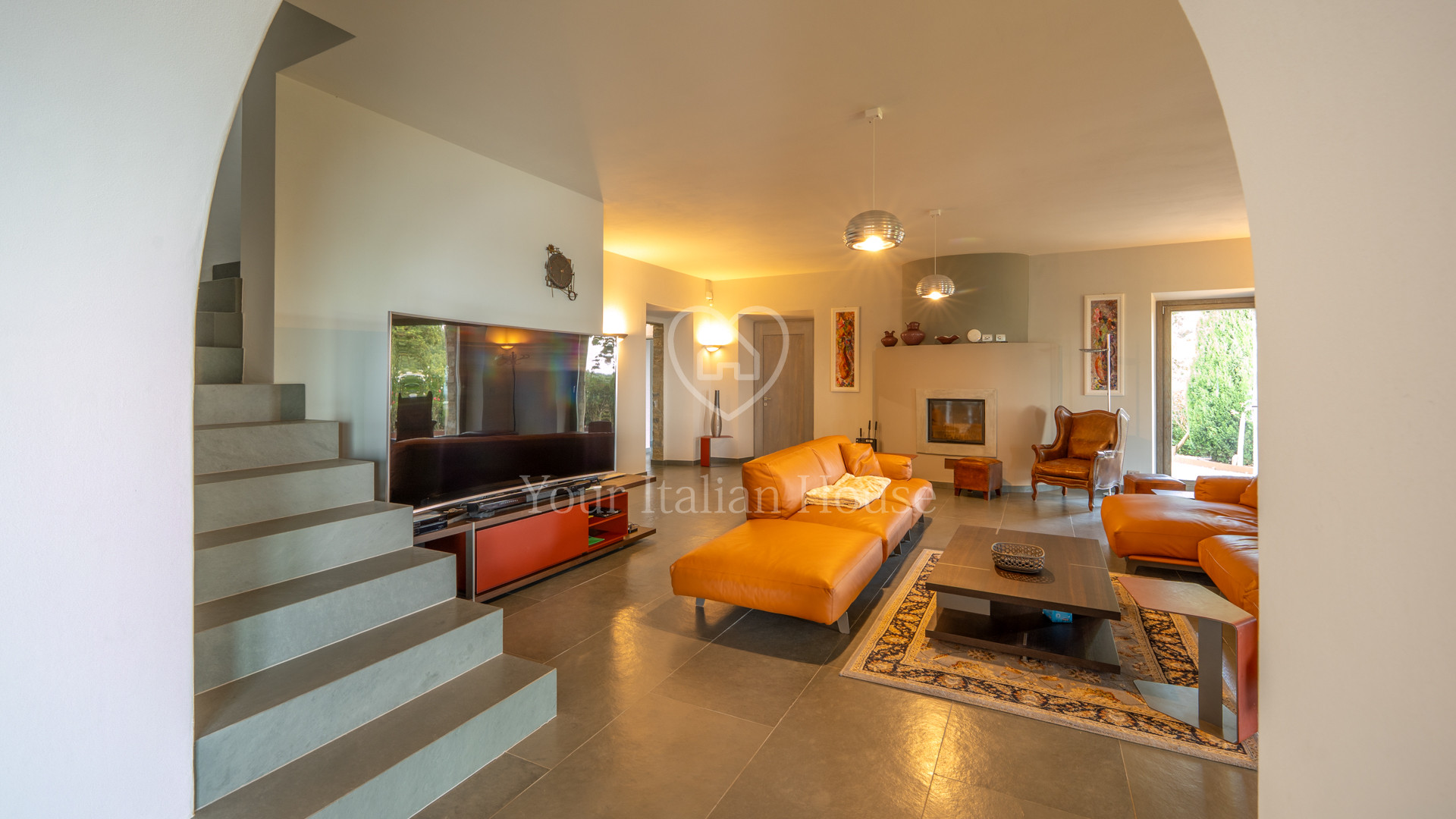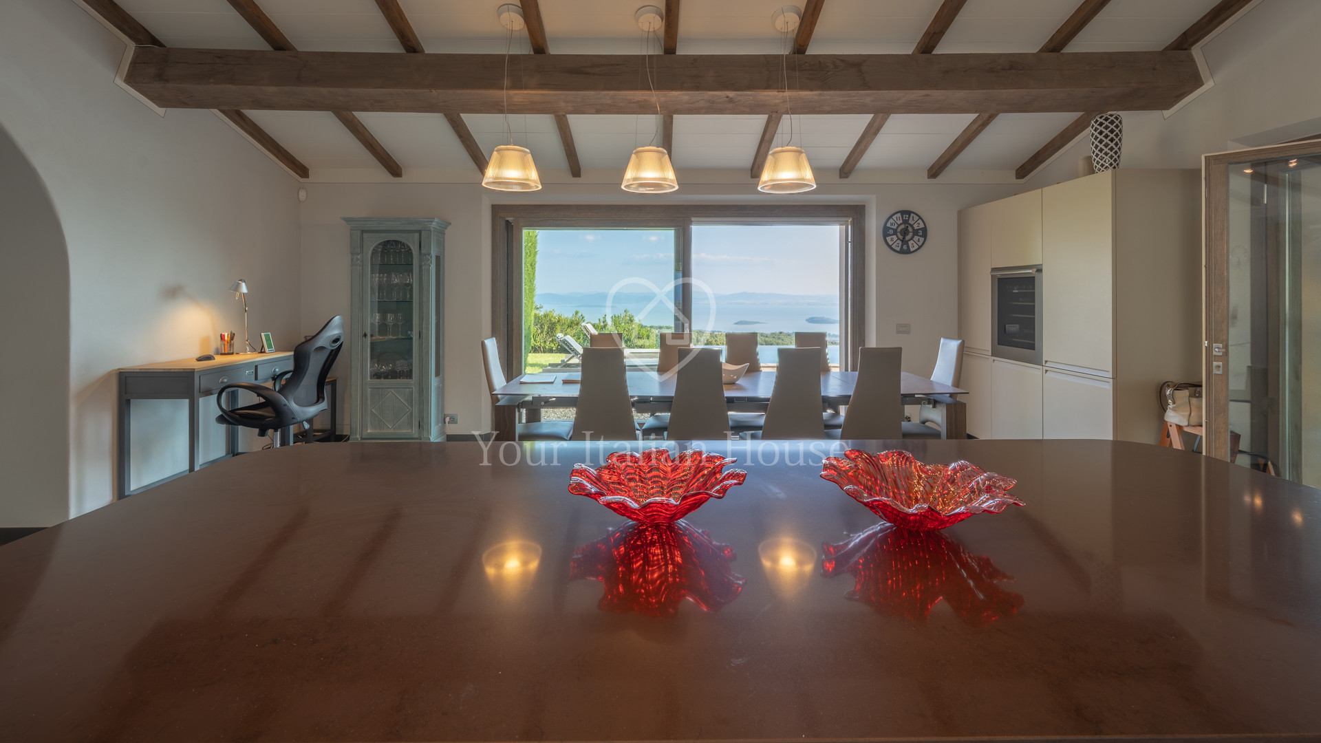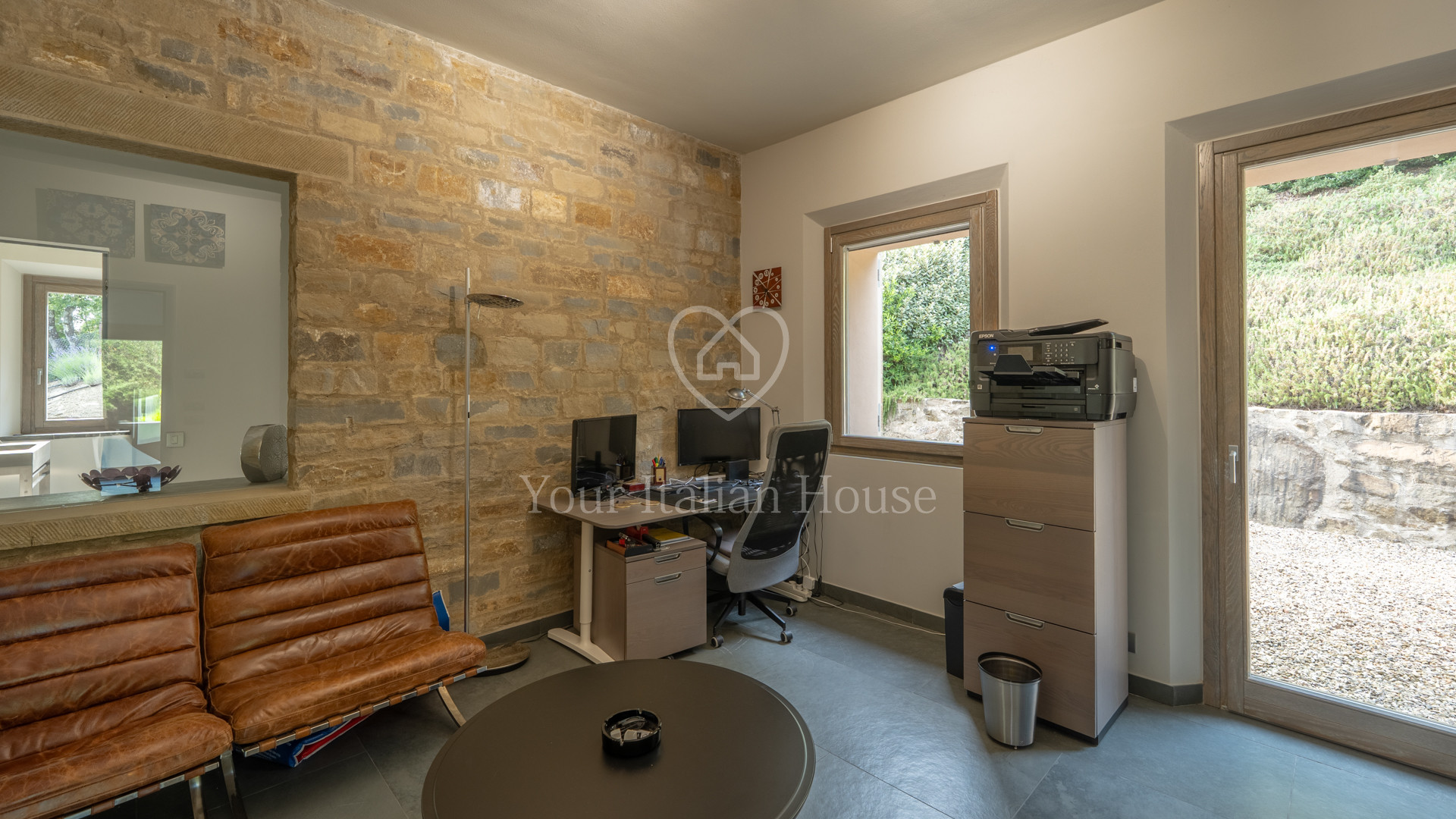 Dit prachtige pand, uniek in zijn soort en volledig gerenoveerd, bevindt zich in een schitterend omheind park van ongeveer 3.700 m² met fruitbomen en olijfbomen. Het hoogtepunt van de buitenruimte is zonder twijfel het verwarmde zwembad van 12 x 5 m, dat maximaal comfort biedt in elk seizoen. Het zwembad heeft een gelijkmatig, randloos oppervlak, wat een visueel spectaculair effect creëert en optimaal uitzicht biedt over het panoramische landschap.Op de begane grond verwelkomt de villa u met een ruime open keuken, waarin functioneel design en innovatie samenkomen. De keuken, uitgerust met hoogwaardige apparatuur en luxe afwerkingen, vormt het hart van het huis, ideaal voor gezellige momenten en culinaire hoogstandjes. Naast de keuken bevindt zich de royale woonkamer, verlicht door grote ramen. Ook op de begane grond bevindt zich een studeerkamer, ideaal voor werk of ontspanning met een goed boek. Twee slaapkamers en een badkamer maken dit niveau compleet en zorgen voor comfort en gebruiksgemak.Boven bieden twee tweepersoonsslaapkamers een privé en verfijnde sfeer, elk met een stijlvol ingerichte en-suite badkamer. Grote ramen bieden een prachtig uitzicht op het Trasimenomeer, en het ruime terras is een ideale plek om het landschap te bewonderen.De kelderverdieping herbergt een zeer ruime garage, ontworpen voor meerdere voertuigen, en biedt extra ruimte voor opslag of andere activiteiten. Deze multifunctionele ruimte is direct vanuit de woning toegankelijk.Kortom, deze villa is meer dan een huis: het is een ware woonervaring, waar modern design en natuurlijke schoonheid perfect samensmelten. De combinatie van elegante interieurs, charmante buitenruimtes en een adembenemend uitzicht op het Trasimenomeer maakt dit pand een unieke kans voor wie op zoek is naar het beste van hedendaags wonen in een exclusieve ambiance.